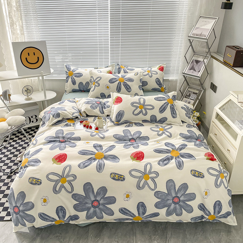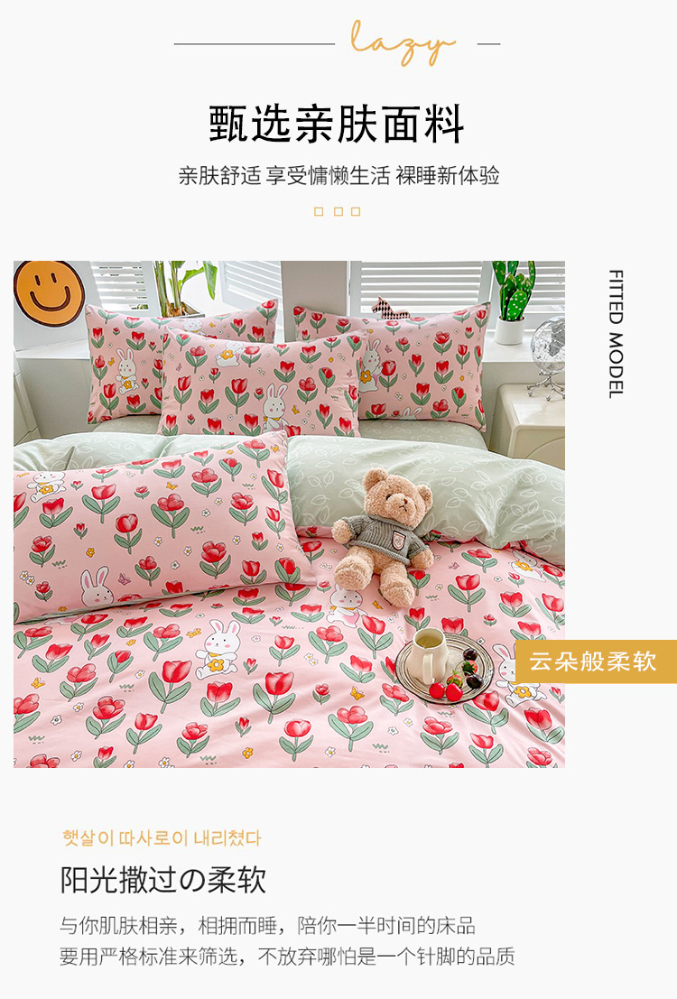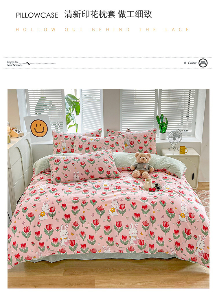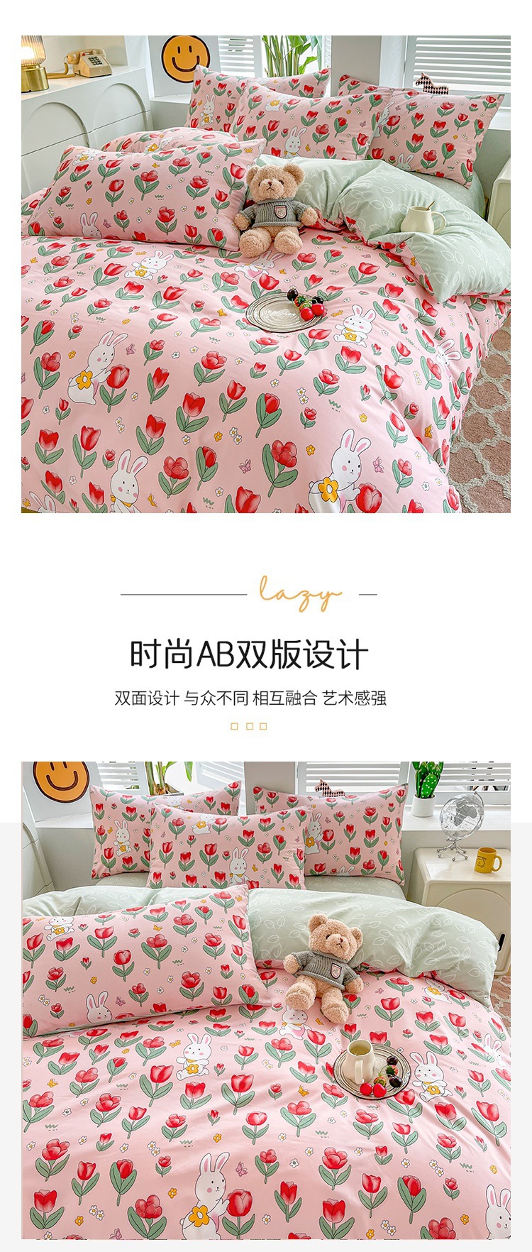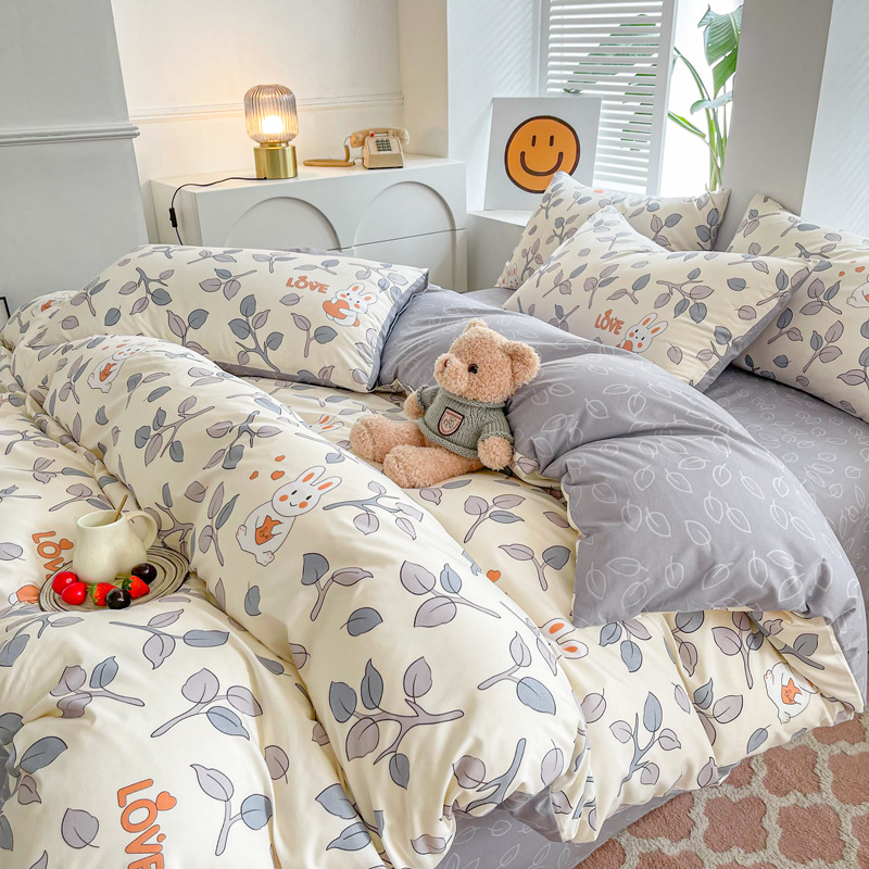 ins单件水洗棉印花单品被套简约磨毛学生宿舍单人被罩三件套批发