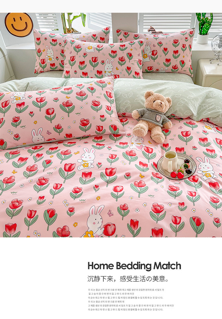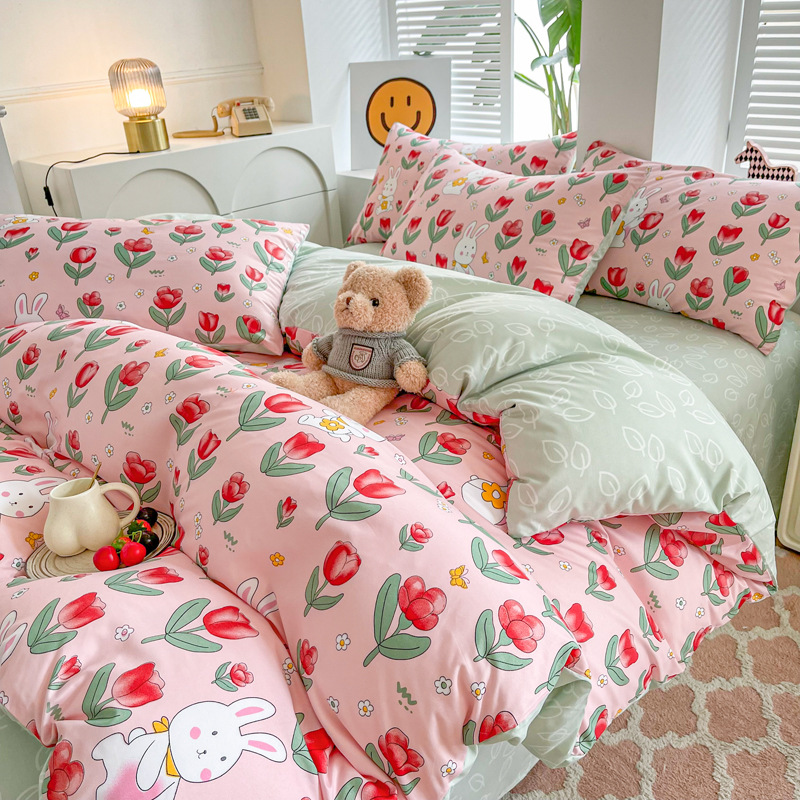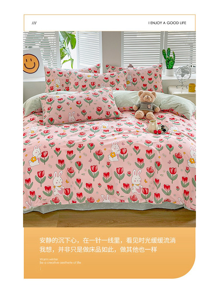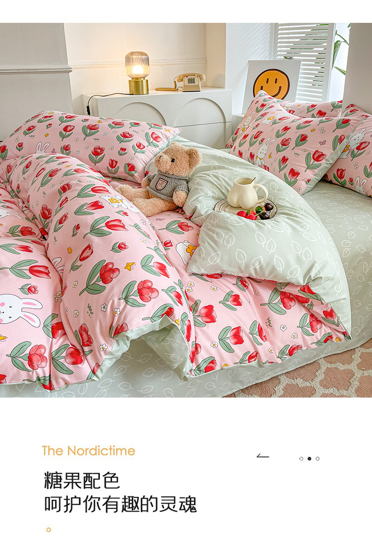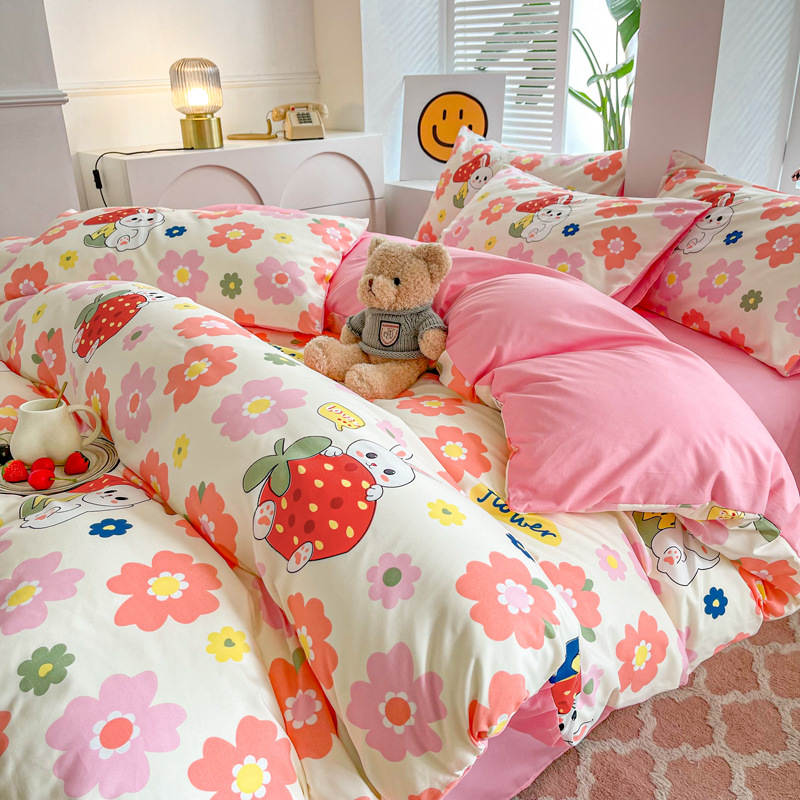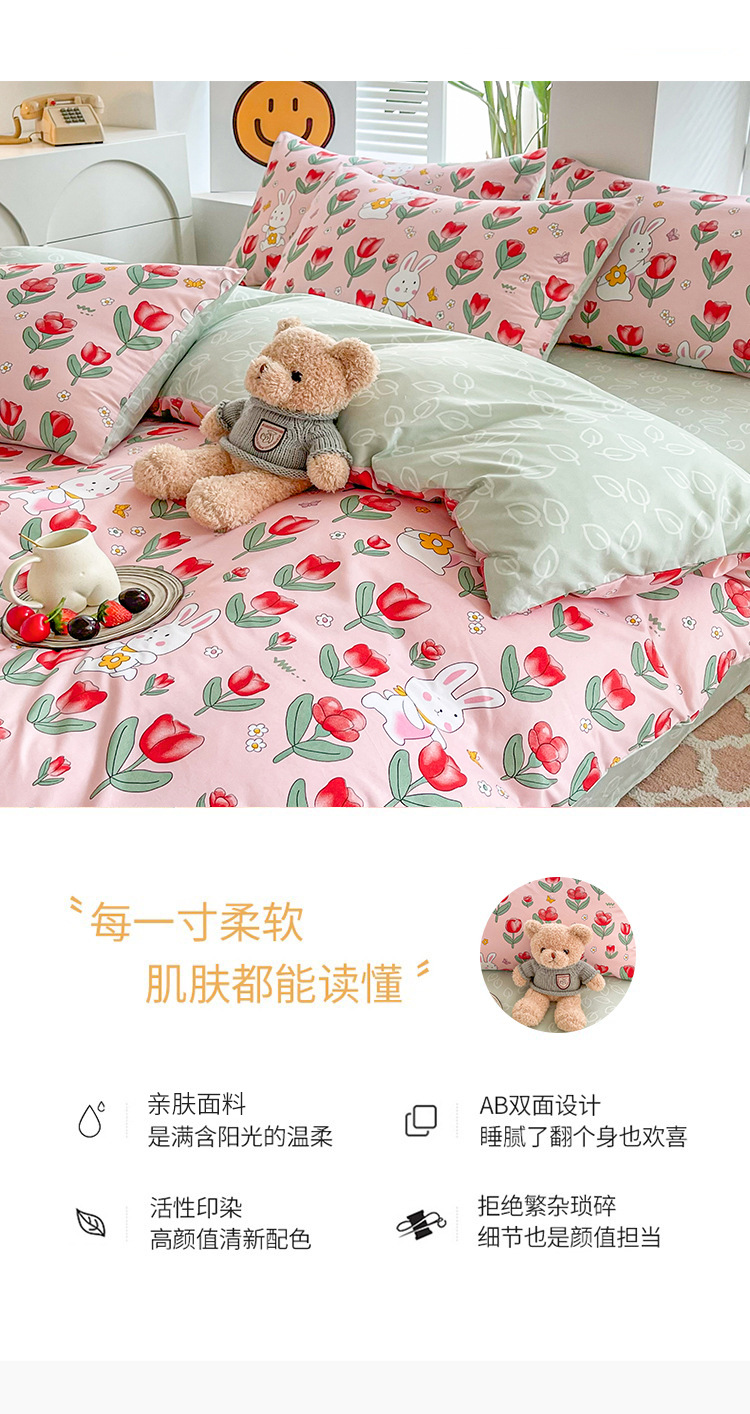 ins单件水洗棉印花单品被套简约磨毛学生宿舍单人被罩三件套批发