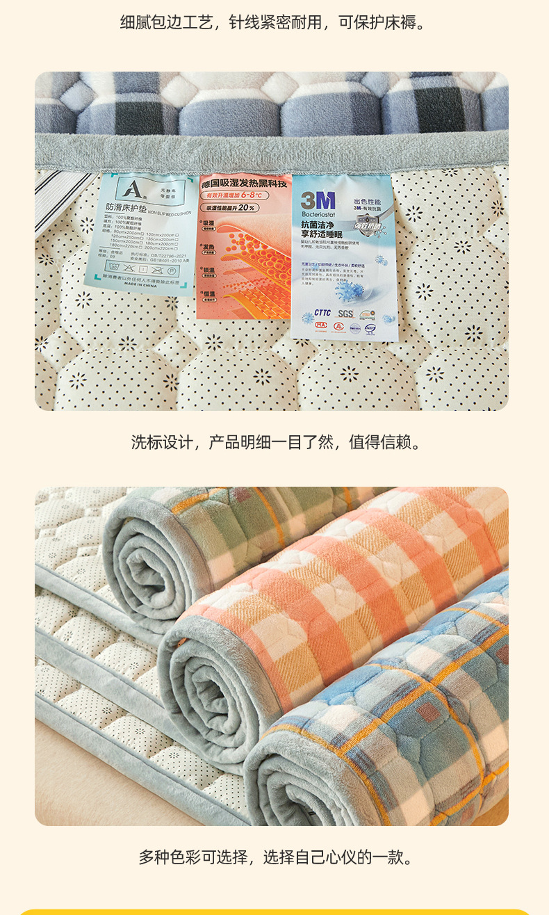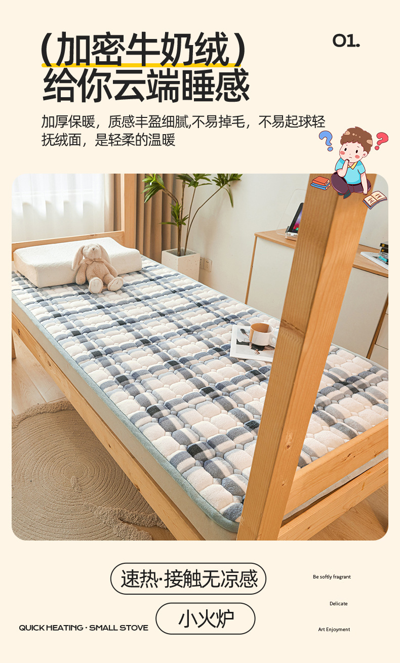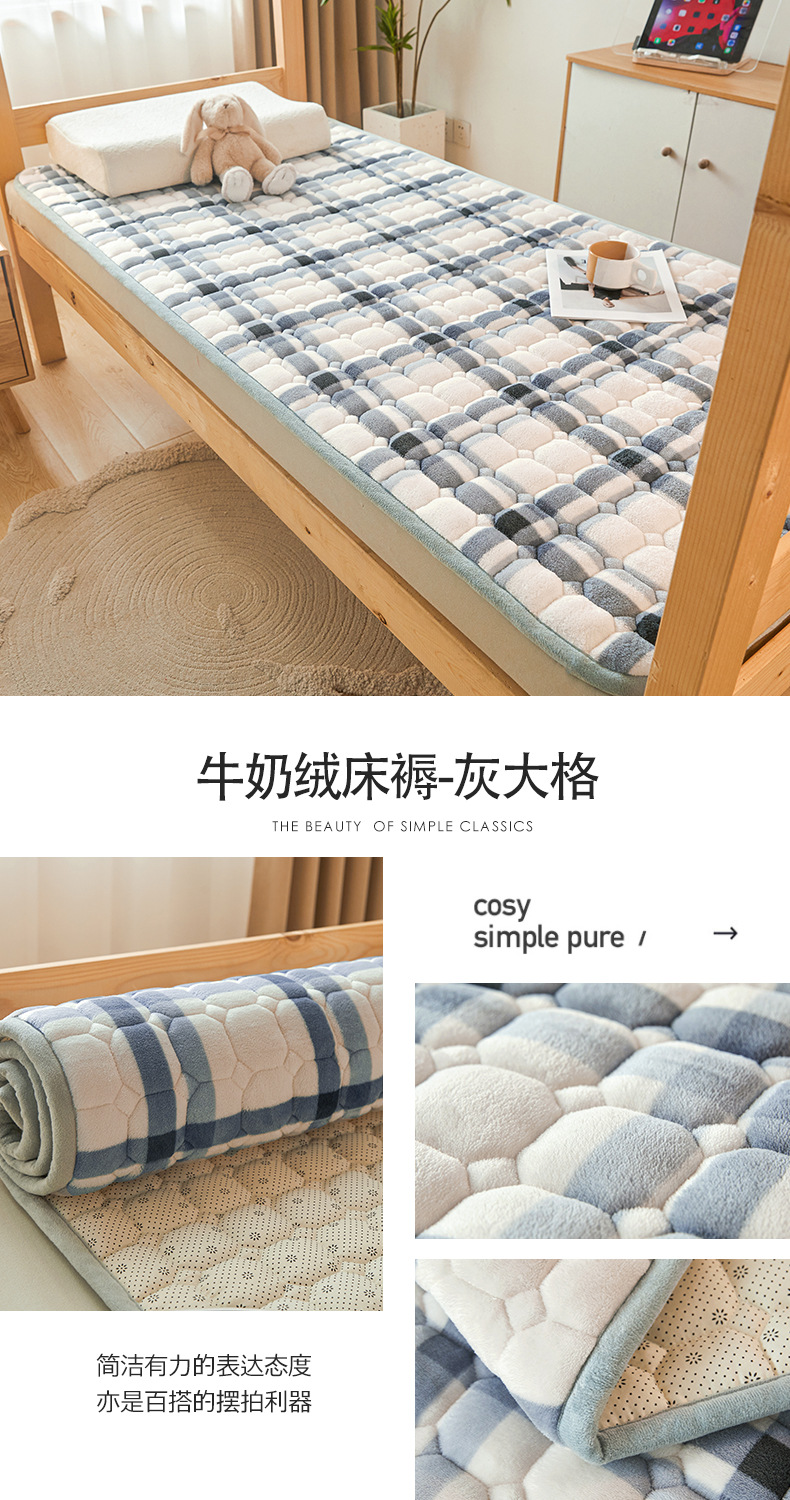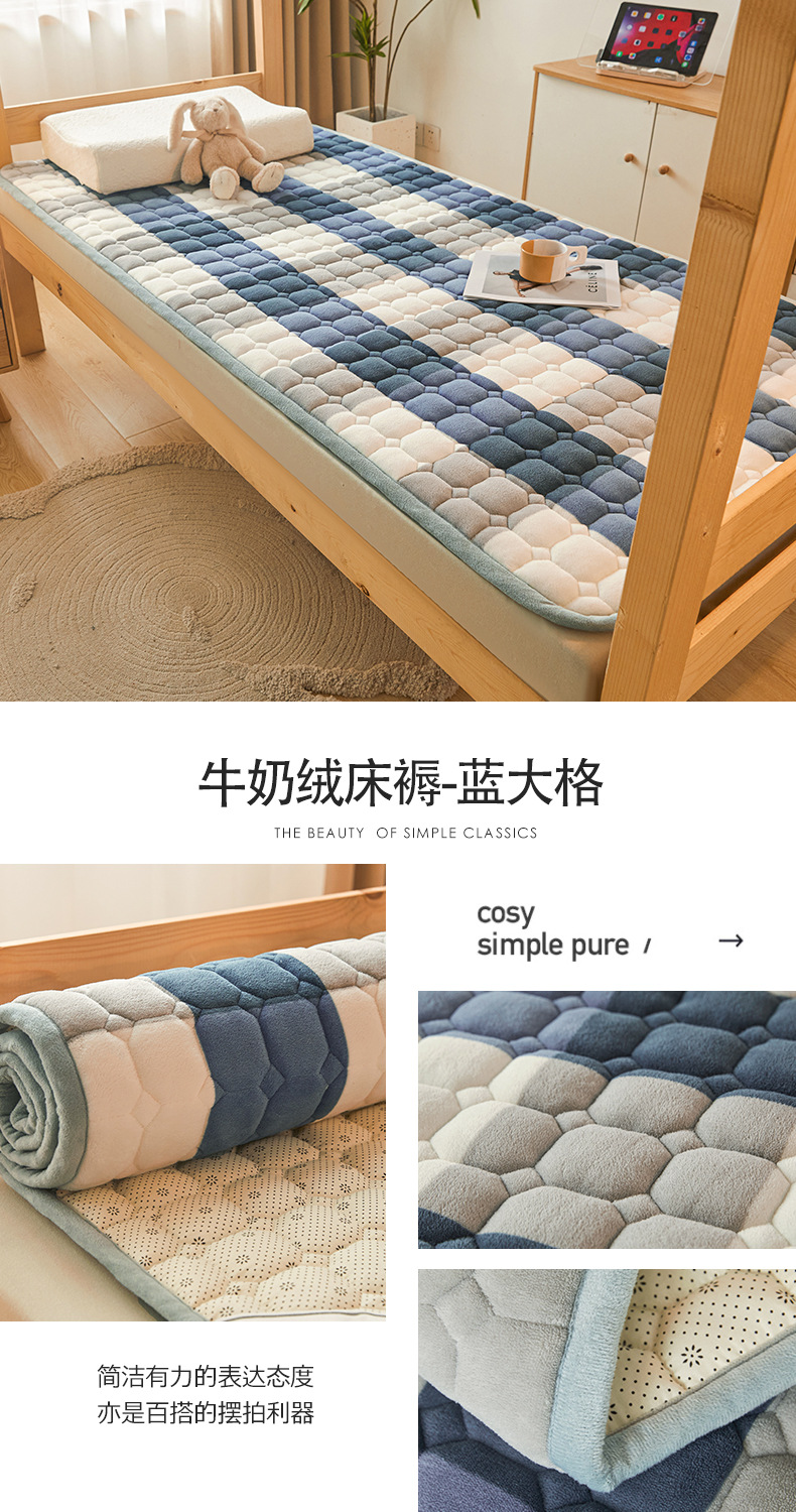 牛奶绒夹棉大学生宿舍床褥冬季加厚保暖无印风防滑软垫子床上用品