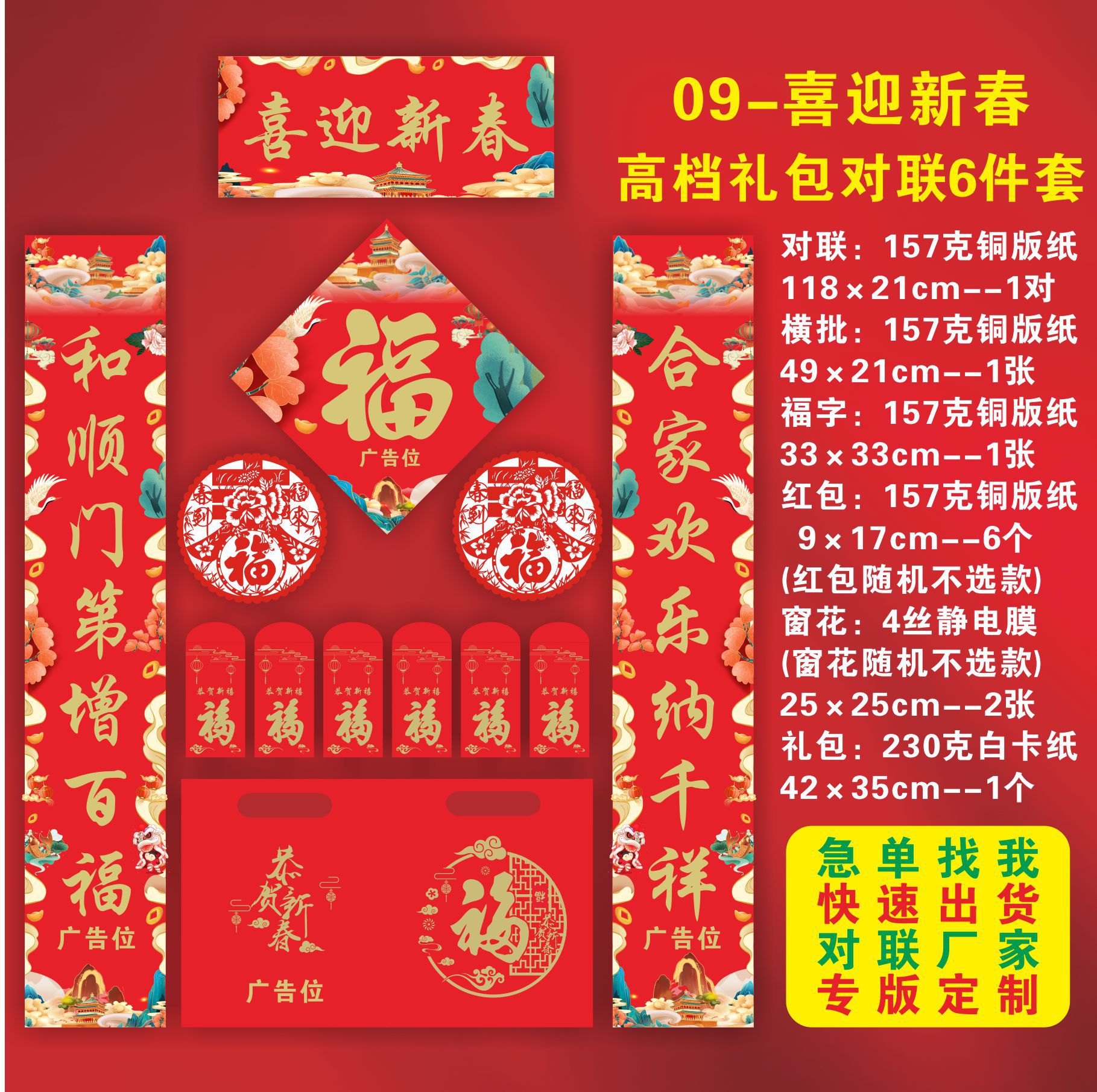 2024年春节对联定制批发广告礼盒装定做LOGO春联大礼包一件代发