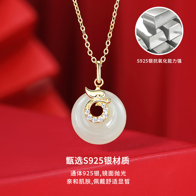 时尚龙年和田玉项链s925纯银金龙贺岁生肖龙吊坠新中式新年锁骨链