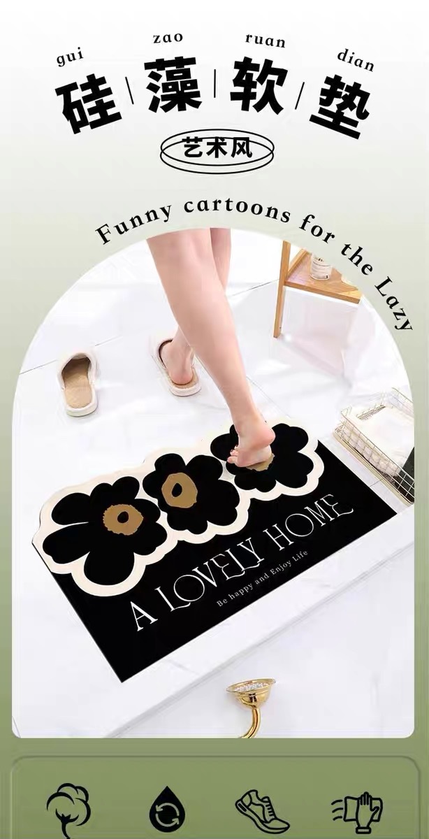 红日硅藻泥卫生间浴室吸水地垫耐脏门垫洗澡防滑垫马桶速干脚垫