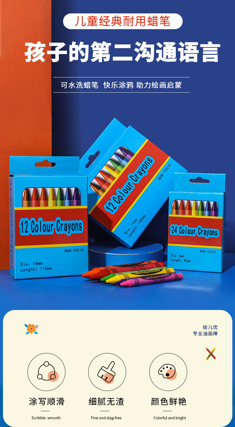 绘儿优儿童蜡笔8色创意卡通12色蜡笔绘画套装油画棒工厂跨境