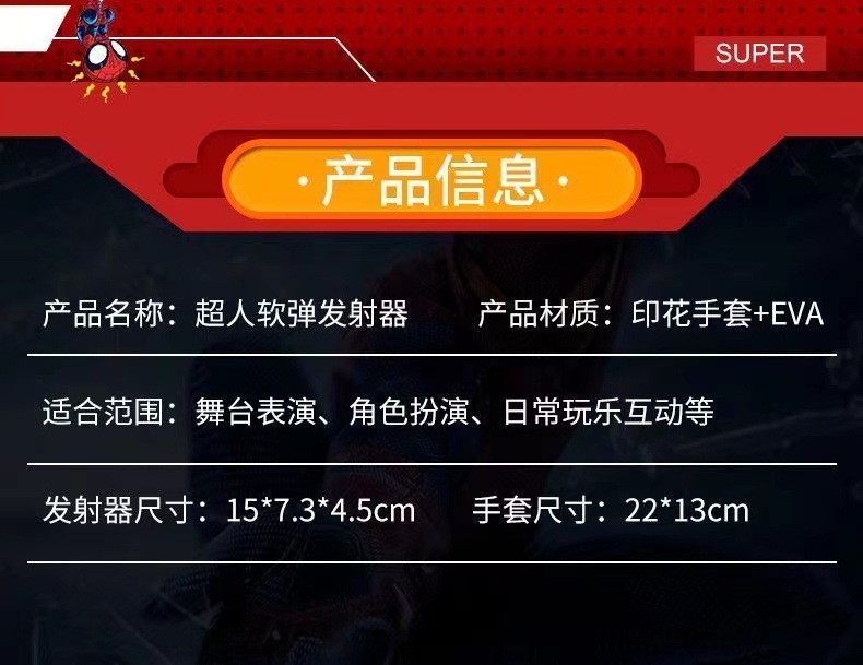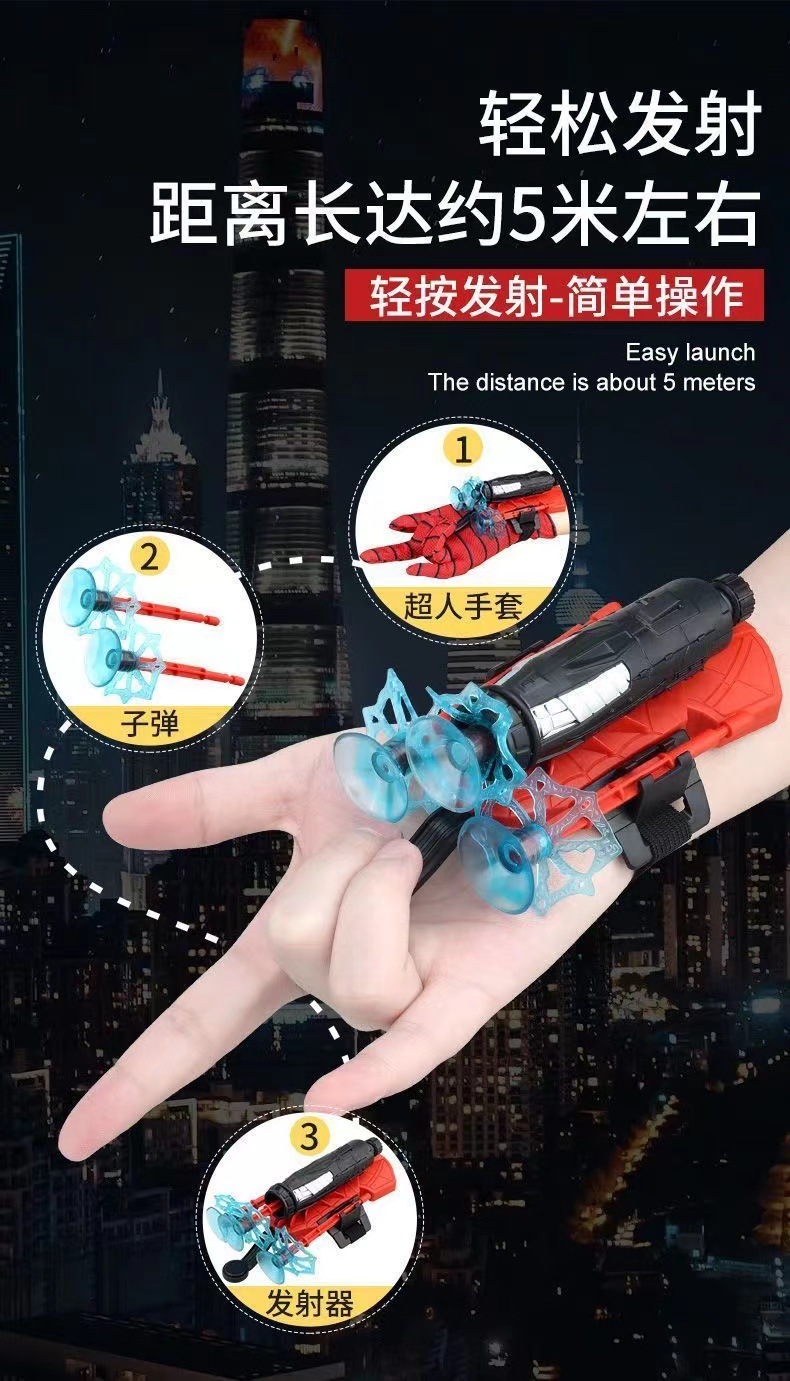 蜘蛛发射器蜘蛛丝蜘蛛英雄侠吐丝手套黑儿童玩具男孩软弹可发射