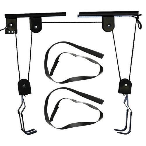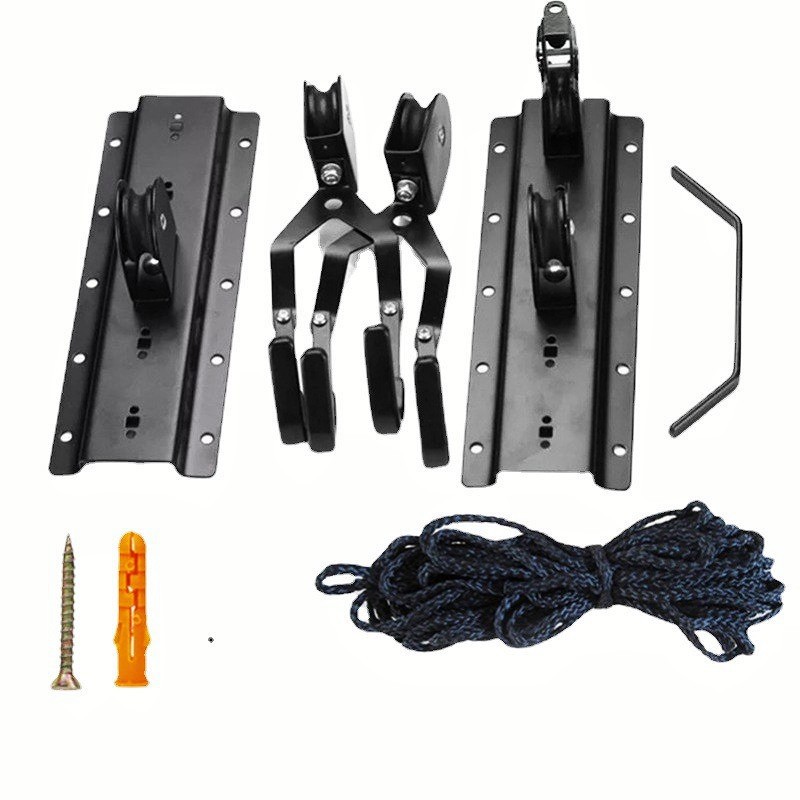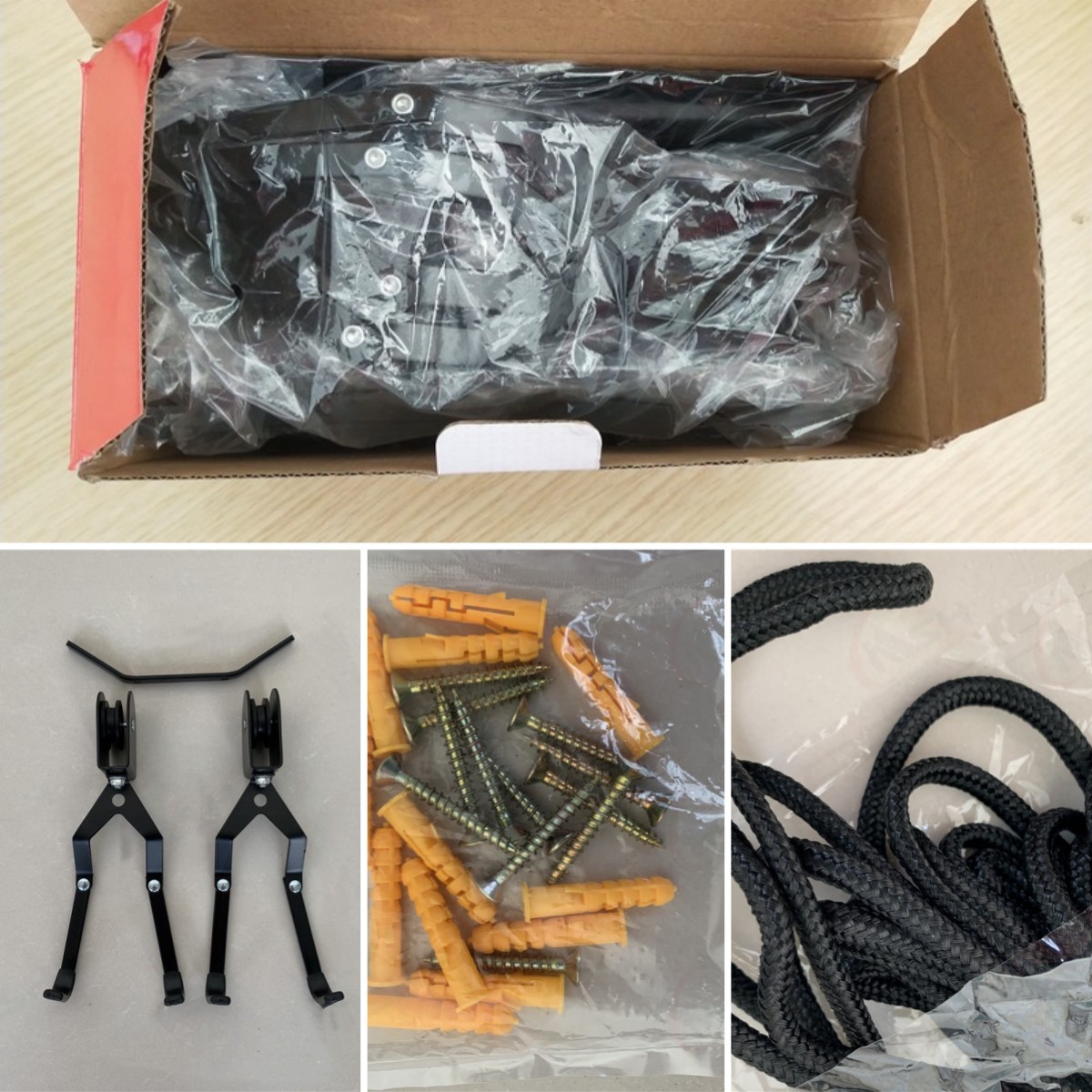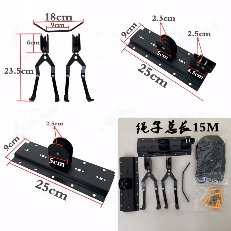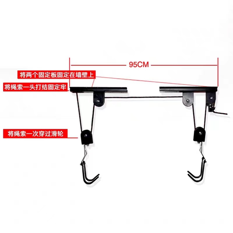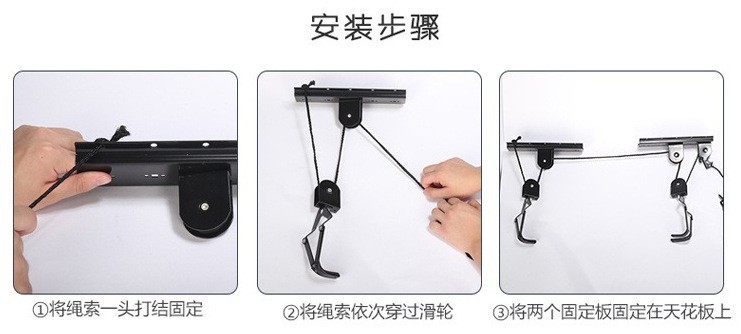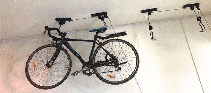 滑轮设计,只要安装在车库的一角,靠近墙面,把自行车吊在上面,那就可以节省出很大一块空间了。当然不单可以吊自行车了,适当的杂物都可以吊起来