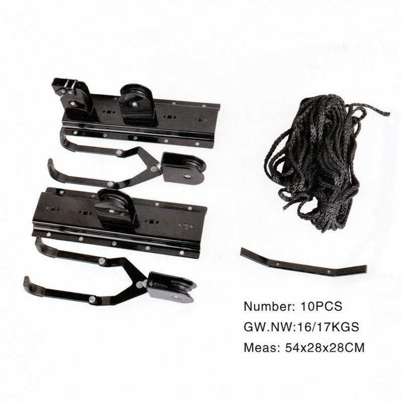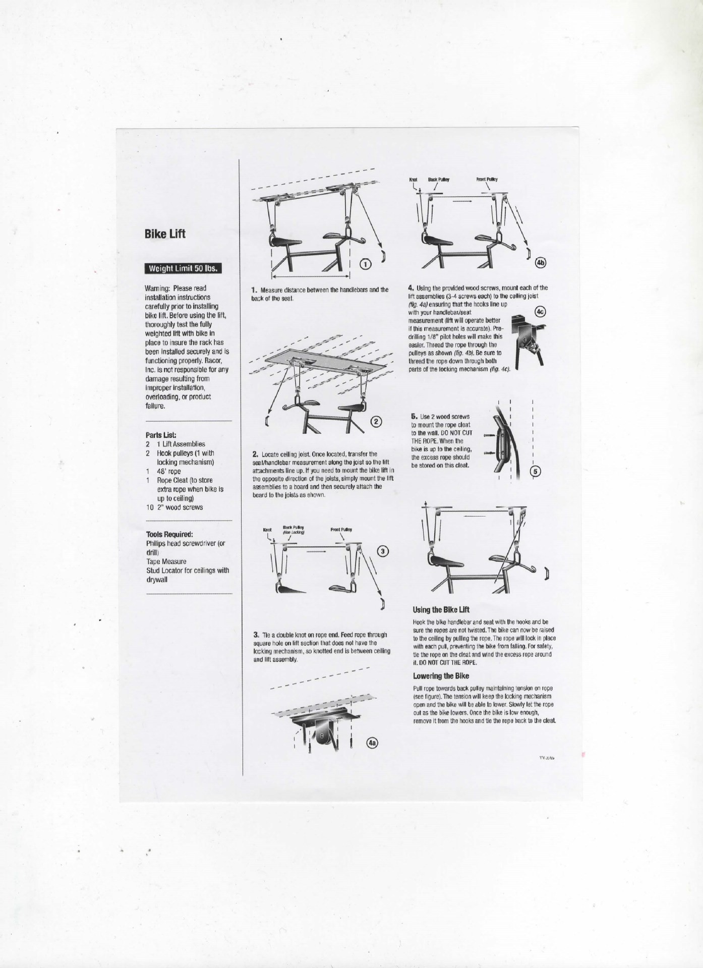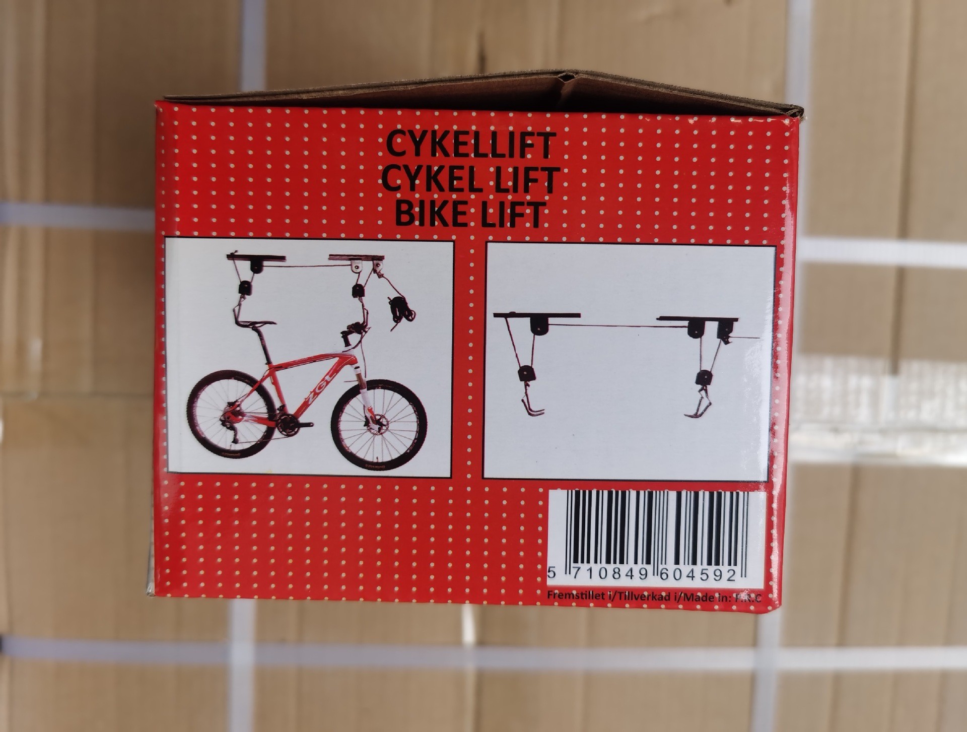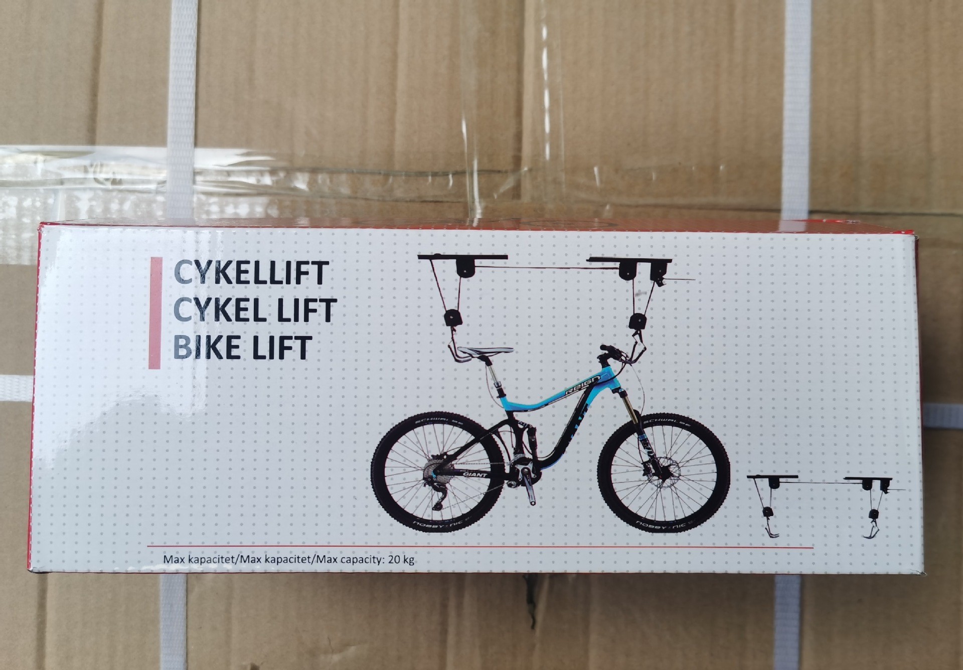 滑轮设计,只要安装在车库的一角,靠近墙面,把自行车吊在上面,那就可以节省出很大一块空间了。当然不单可以吊自行车了,适当的杂物都可以吊起来