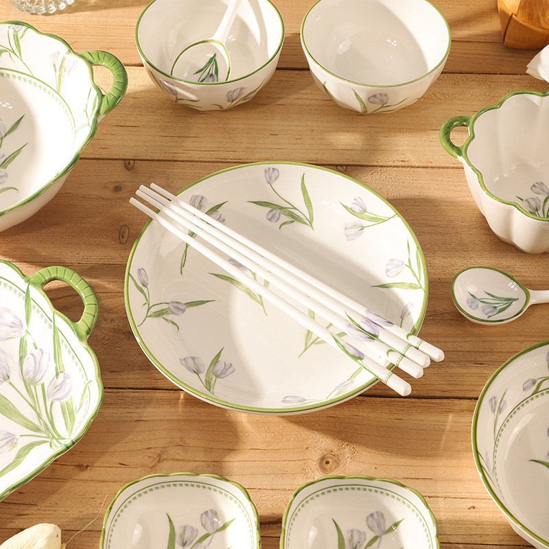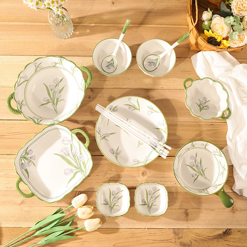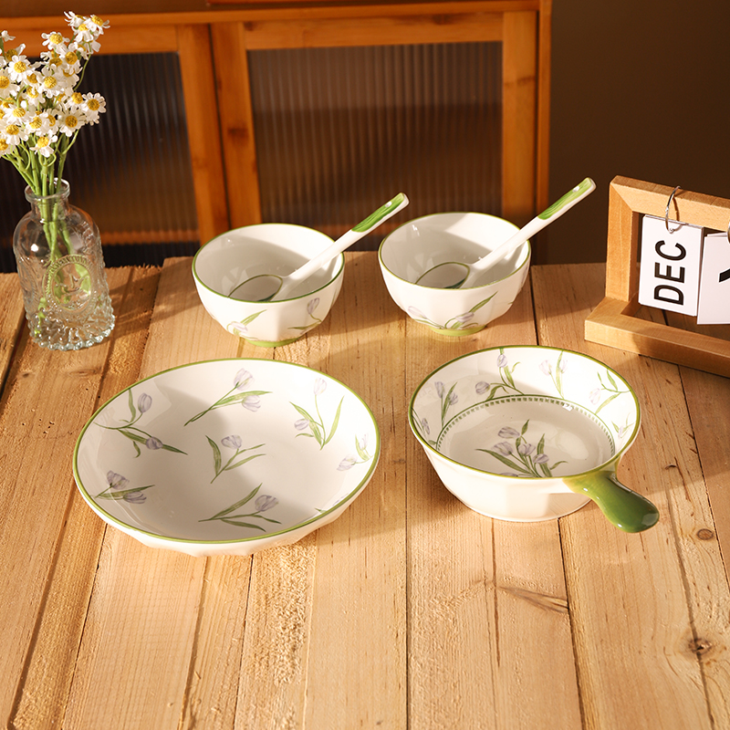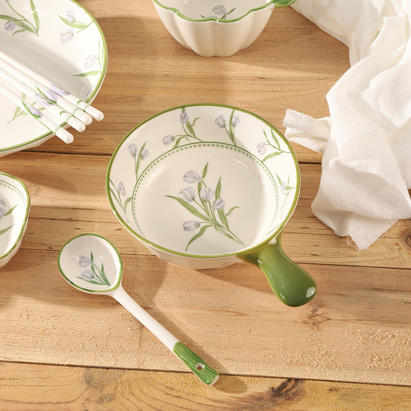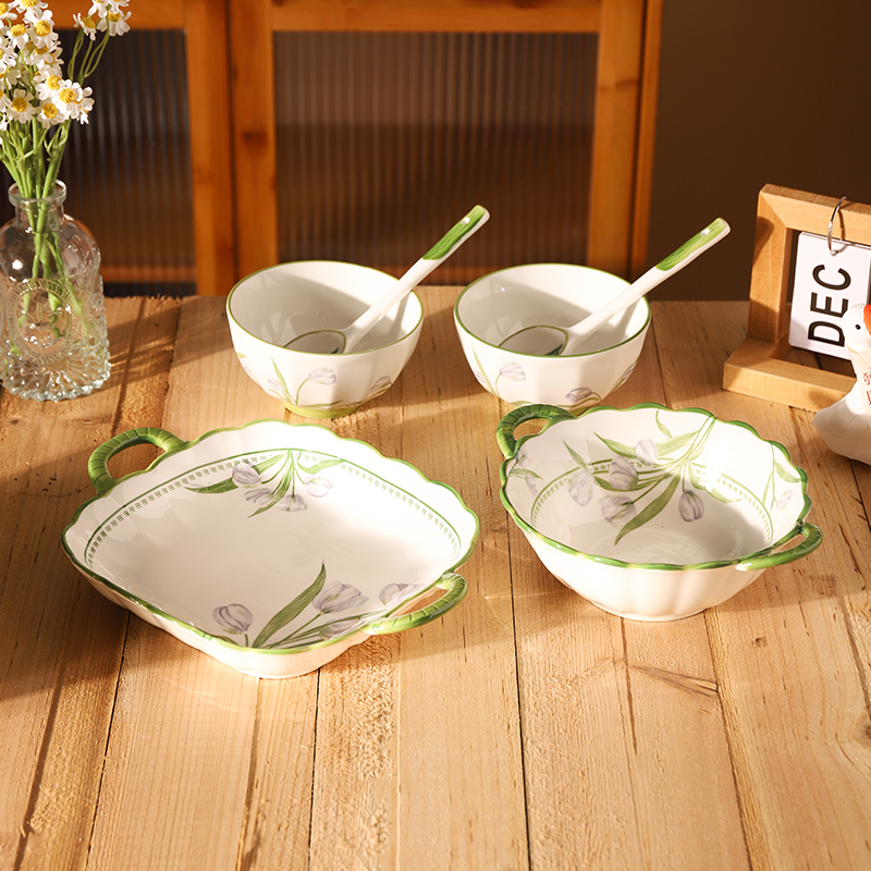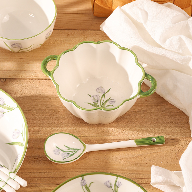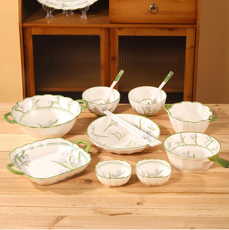 餐具日式碗碟套装家用餐具陶瓷双耳碗饭碗汤面碗盘子手柄碗水果碗