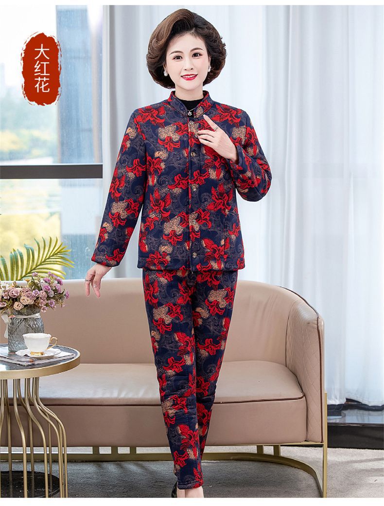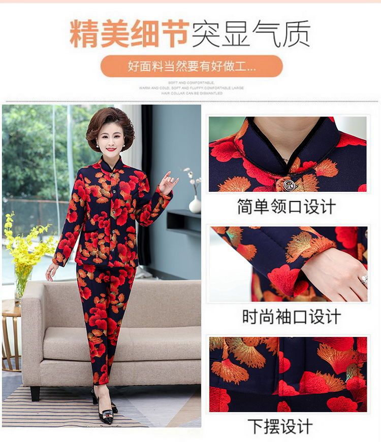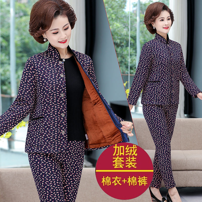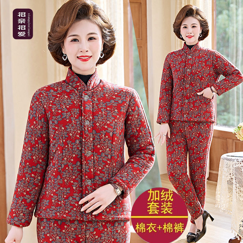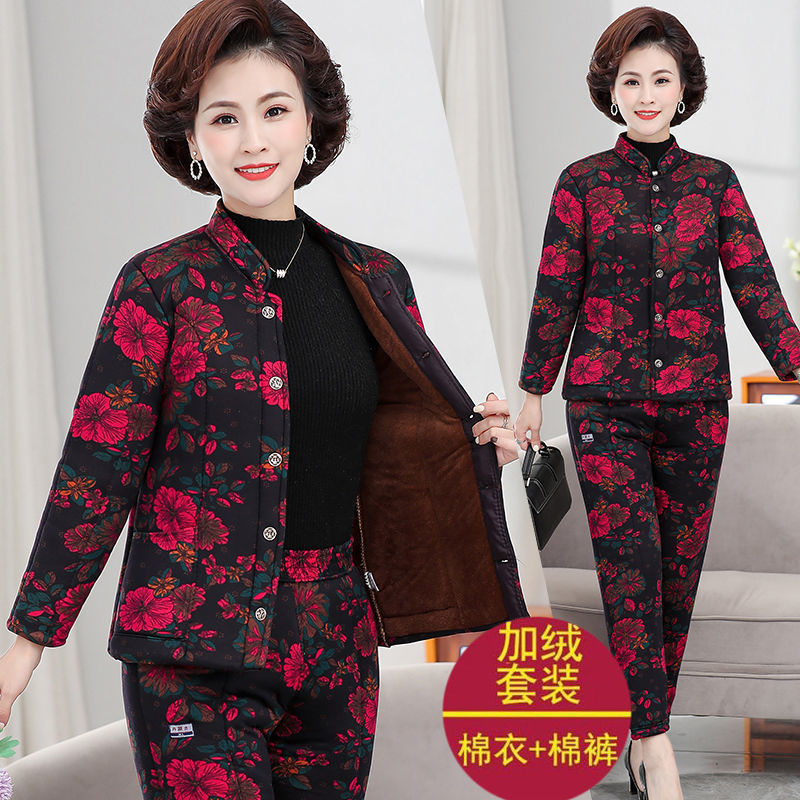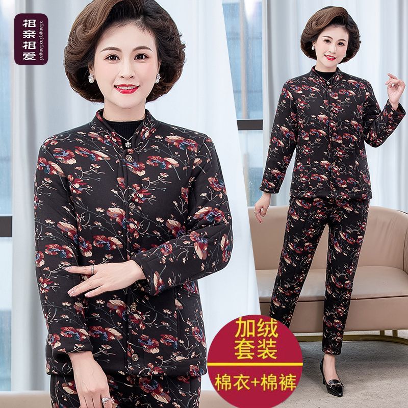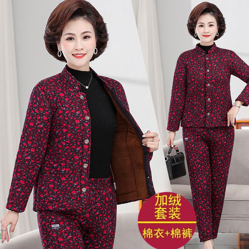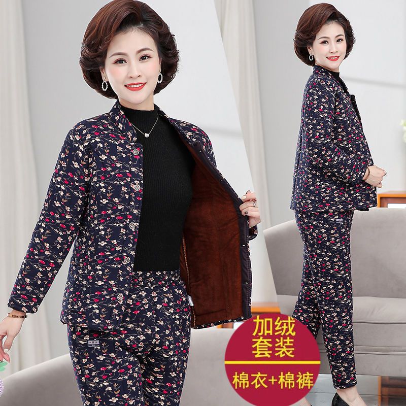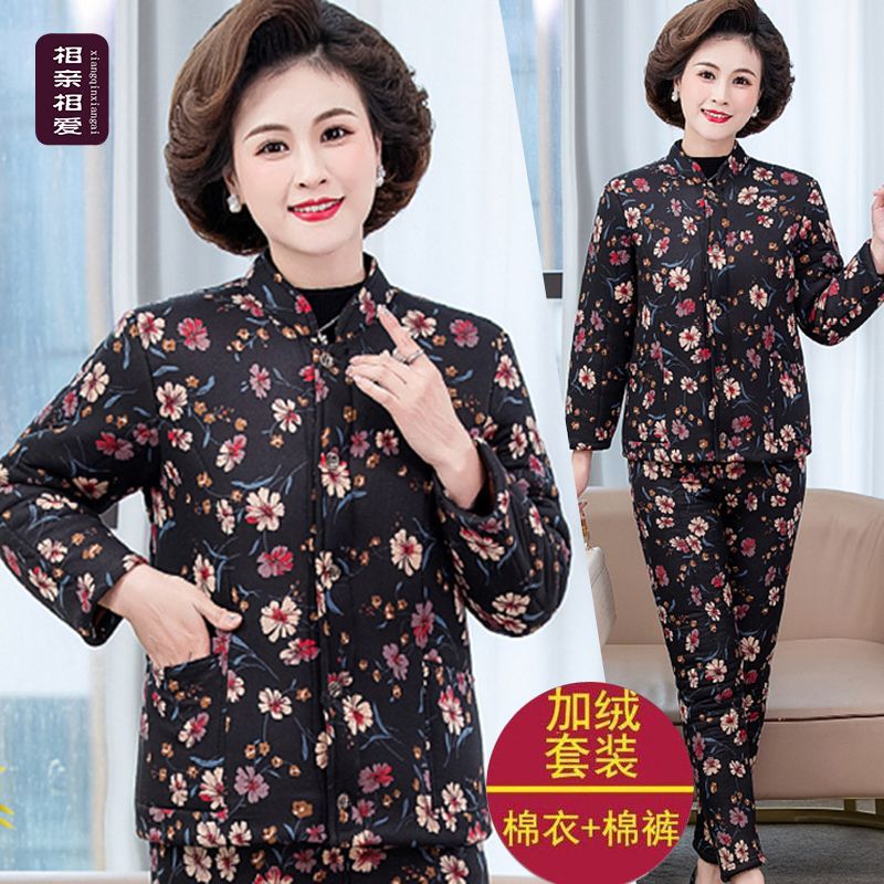 冬季驼绒棉袄棉裤两件套中老年驼绒女装老人加绒棉衣奶奶保暖套装