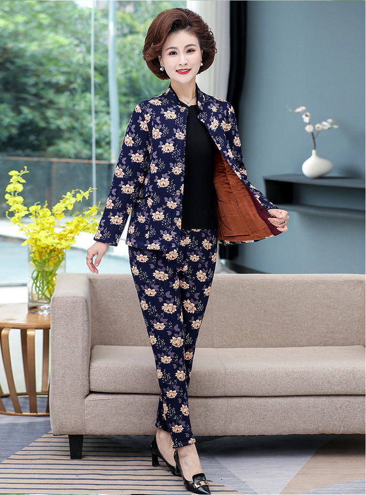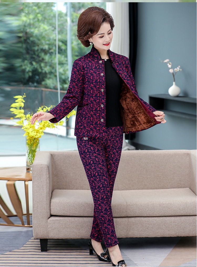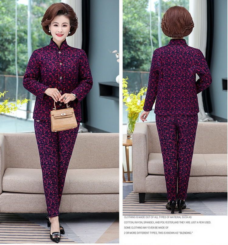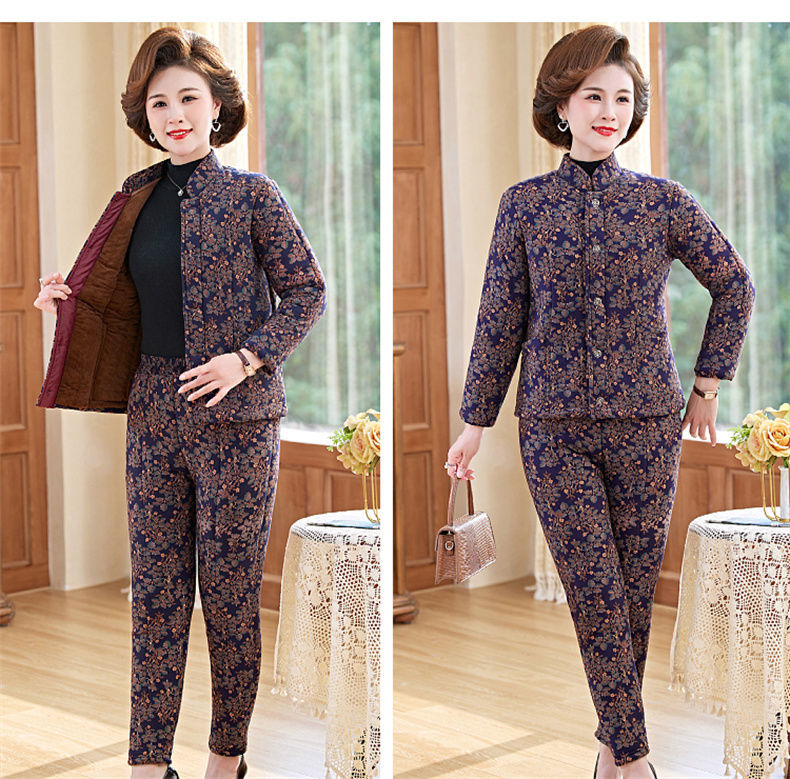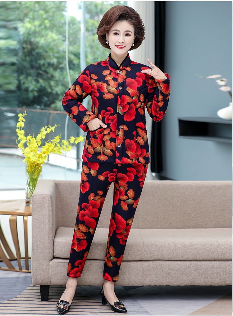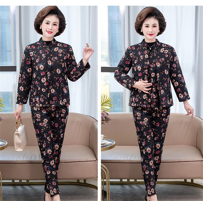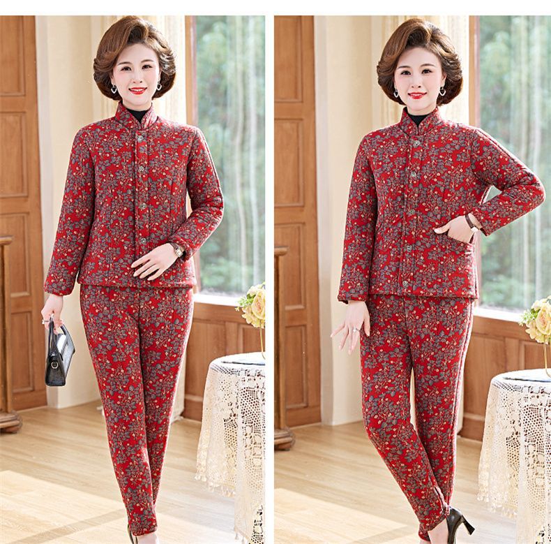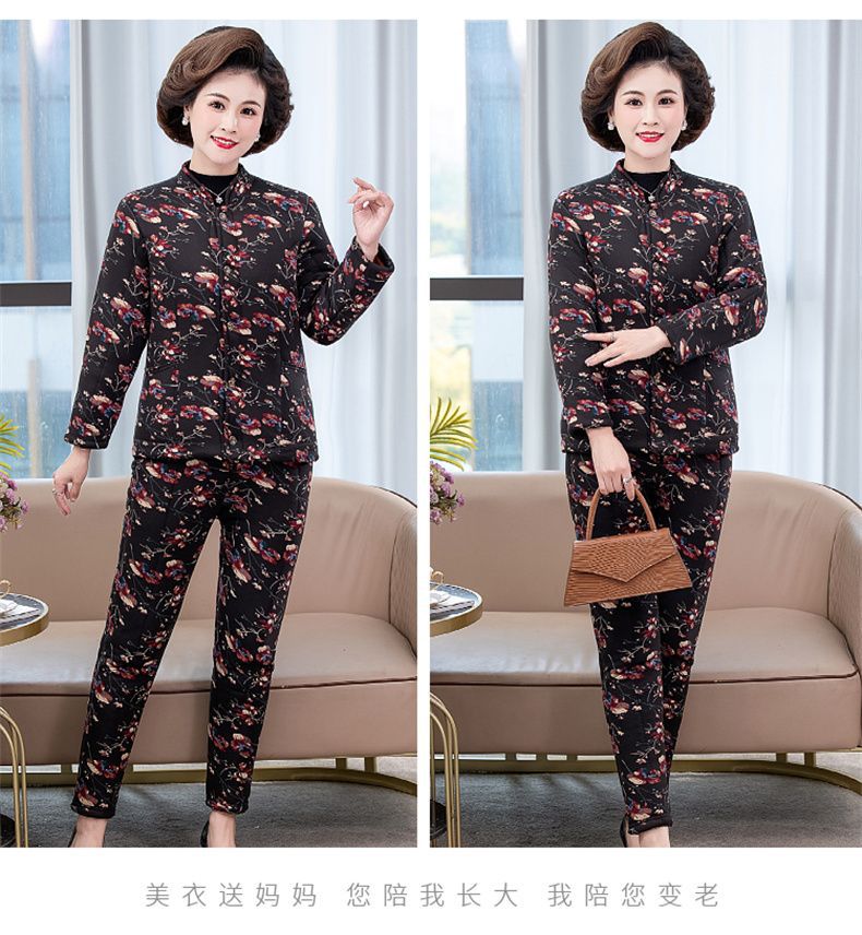 冬季驼绒棉袄棉裤两件套中老年驼绒女装老人加绒棉衣奶奶保暖套装