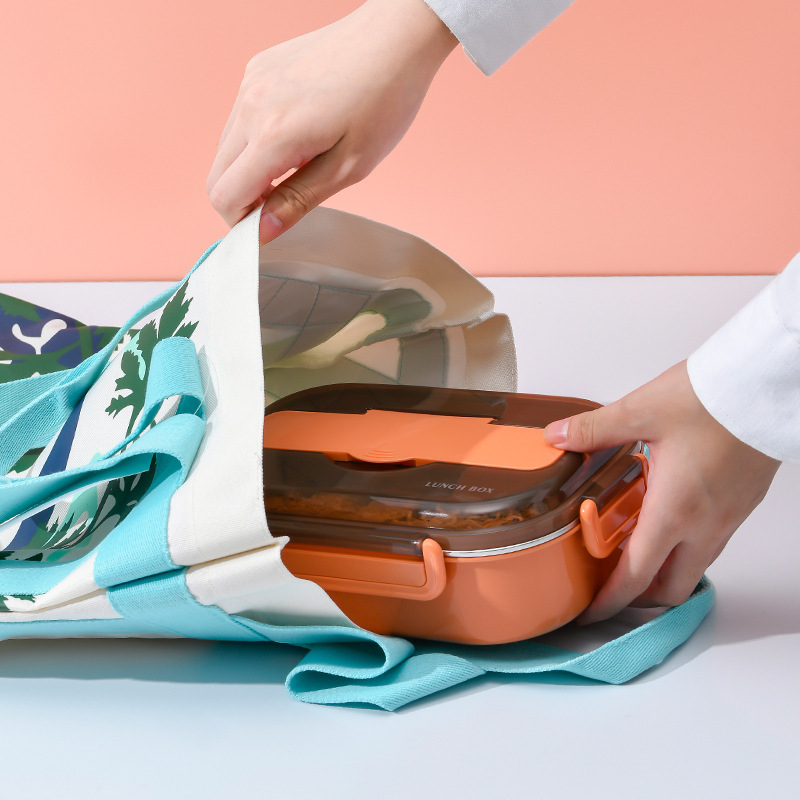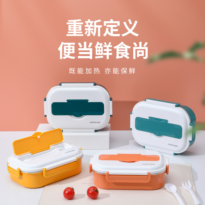 热销不锈钢注水保温饭盒双层可加热便当盒轻便成人学生分格餐盒