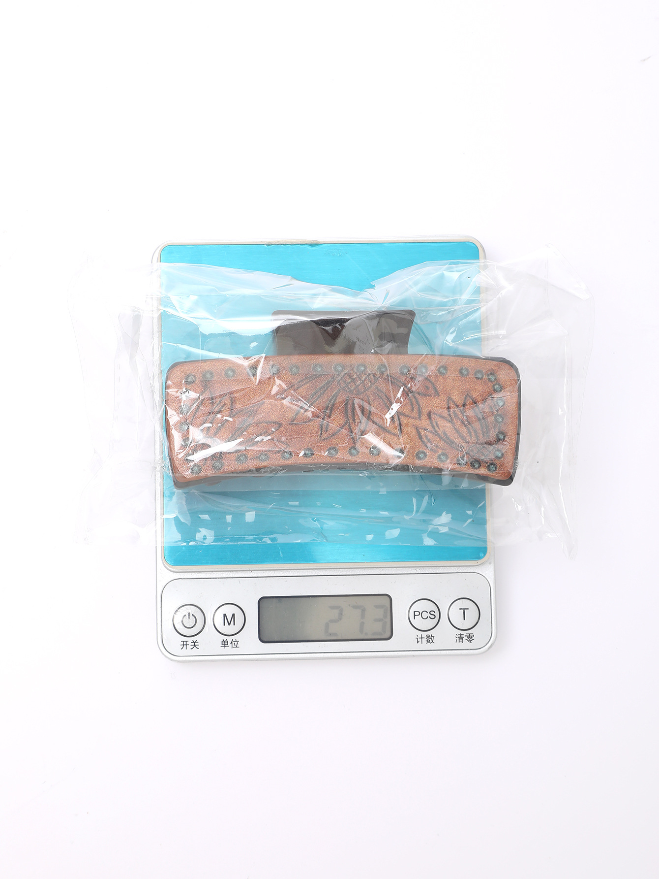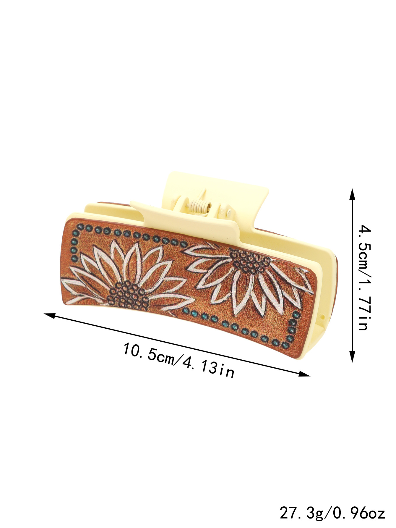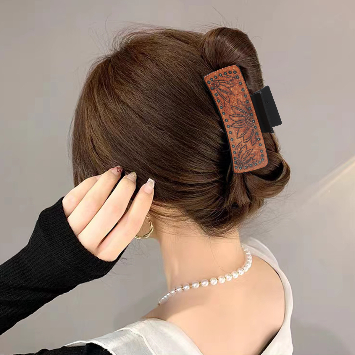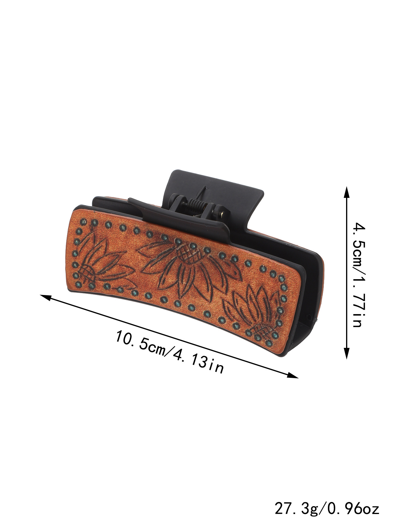 跨境西部风皮革发夹向日葵图案抓夹女士鲨鱼夹速卖通亚马逊