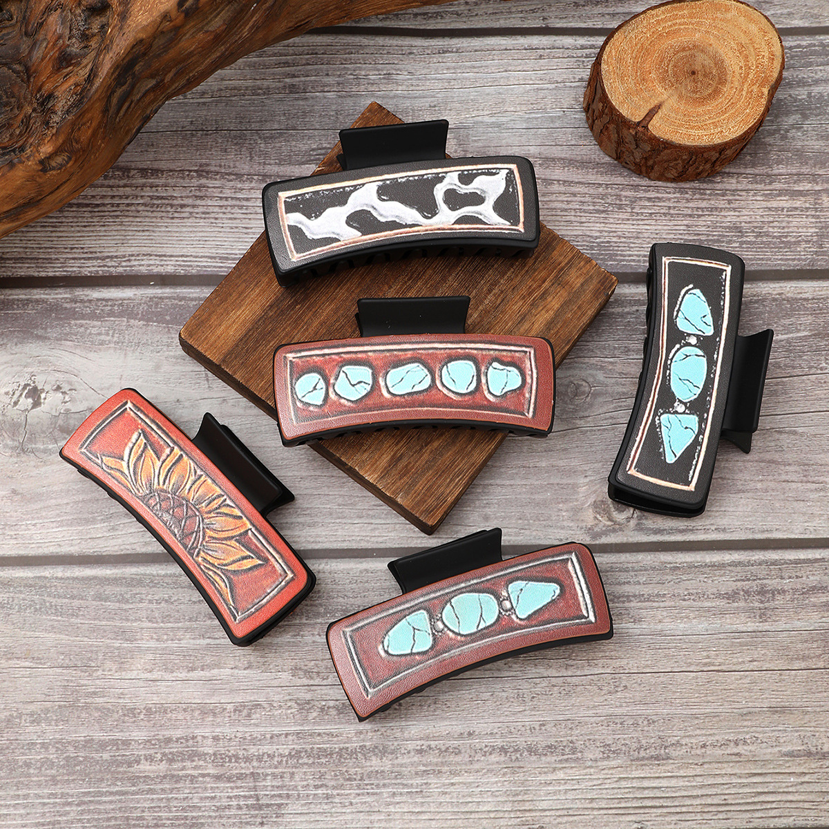 跨境西部风皮革发夹向日葵鲨鱼夹女士抓夹速卖通亚马逊希音