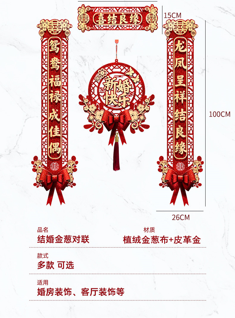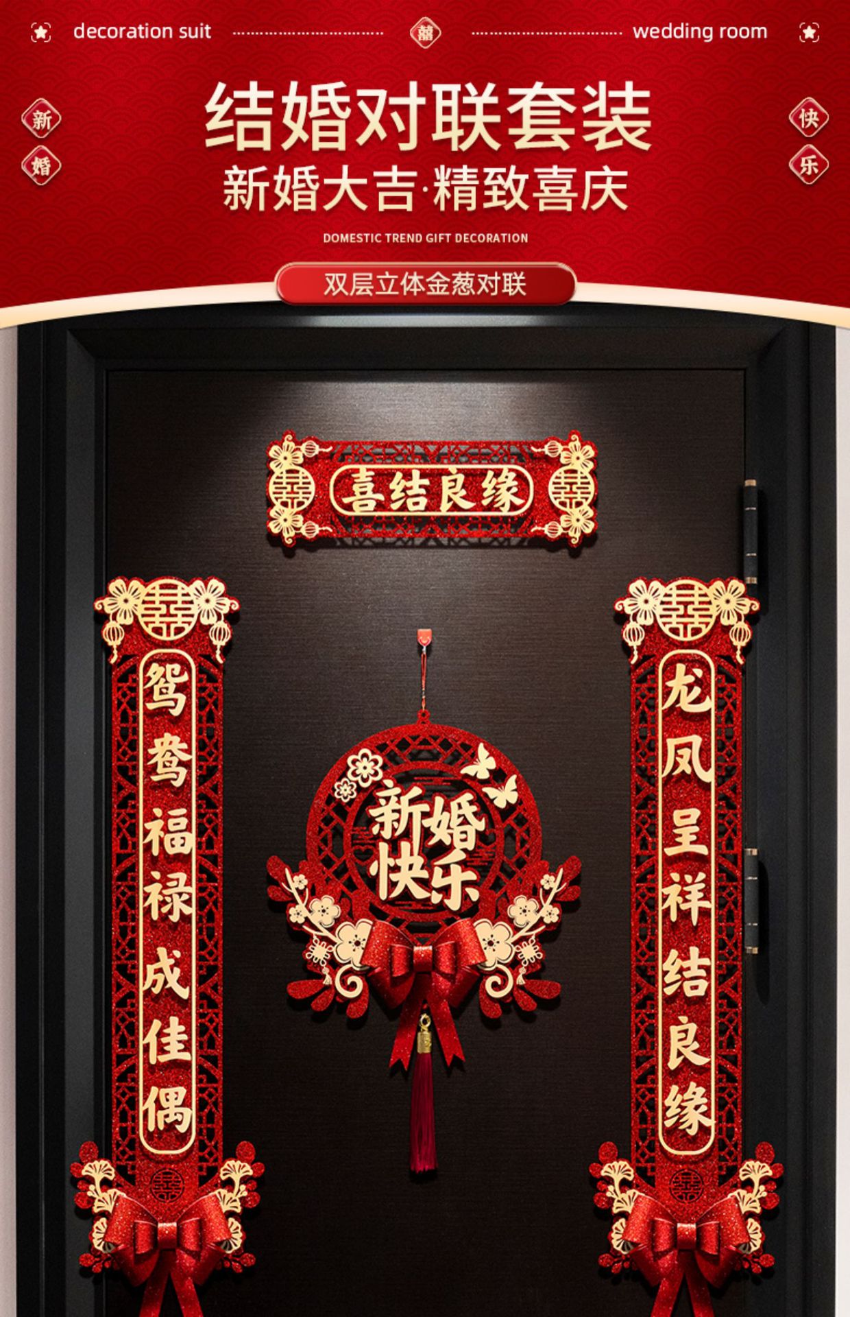 结婚对联男方大门喜字婚房喜联全套新婚女方出嫁房门布置用品大全
