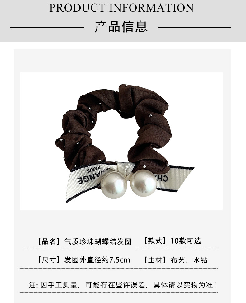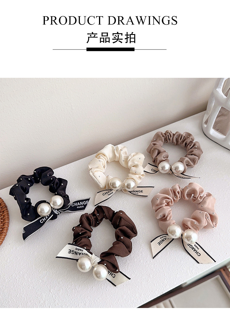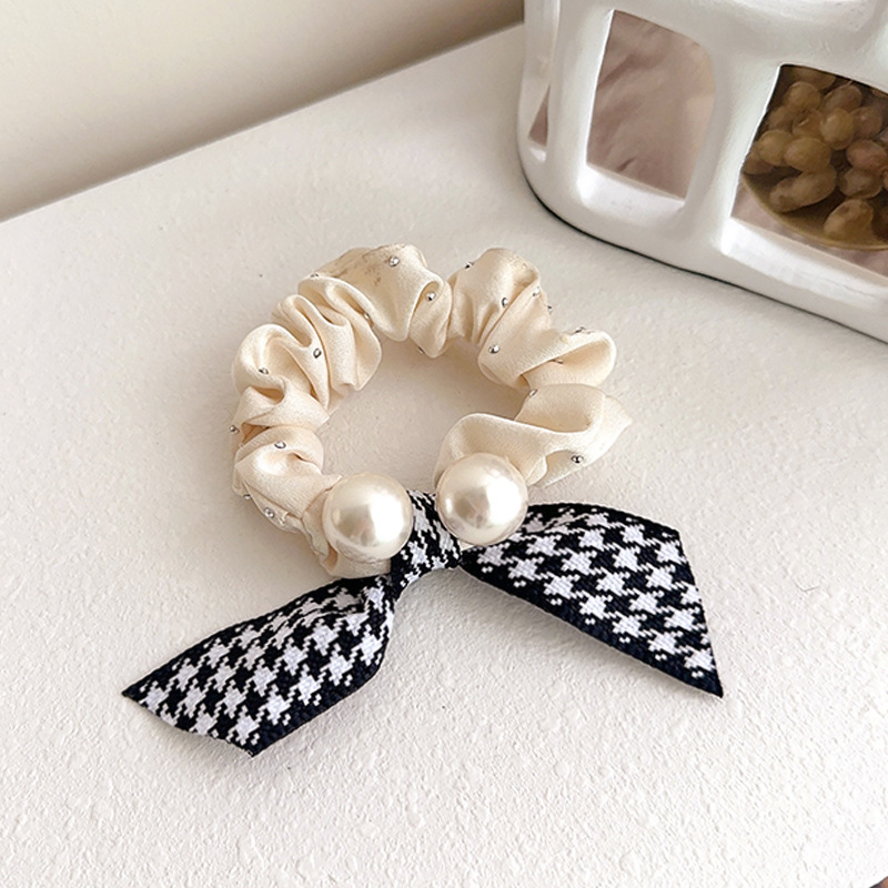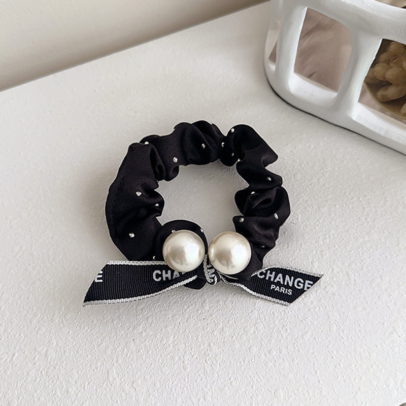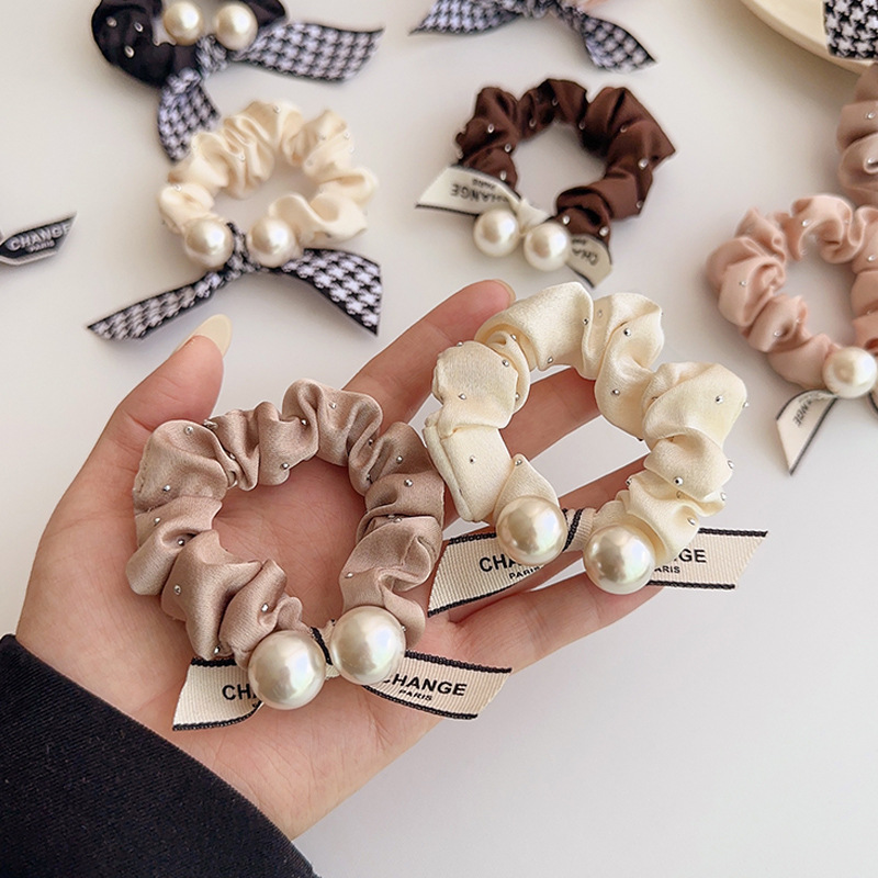 蝴蝶结珍珠发圈韩版高级感水钻大肠圈简约气质马尾头绳丸子头皮筋
