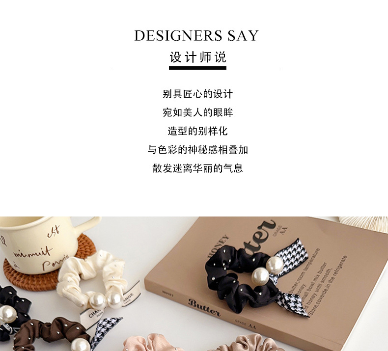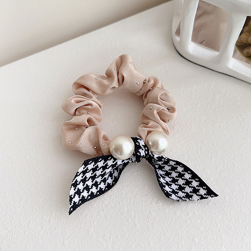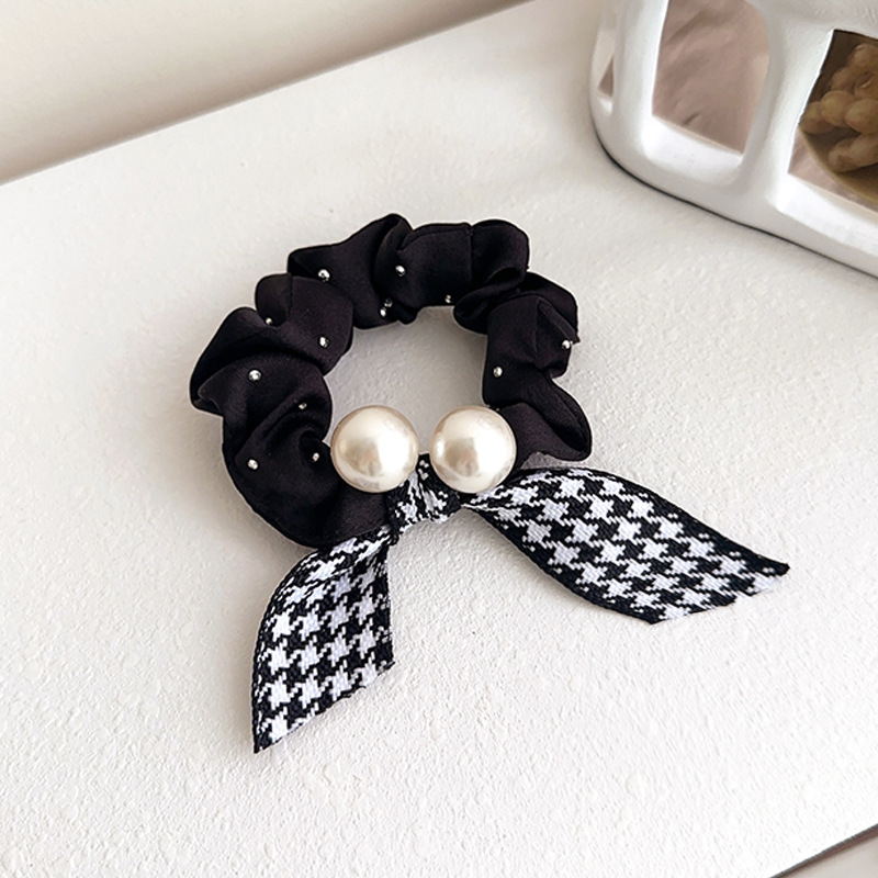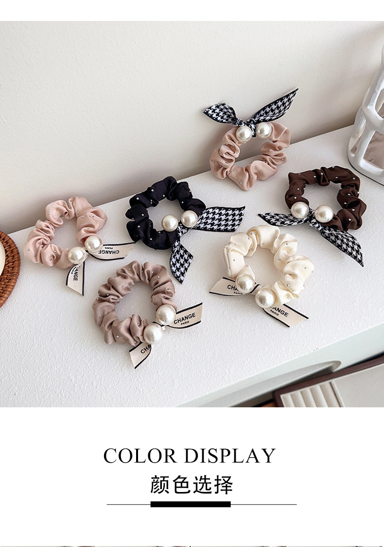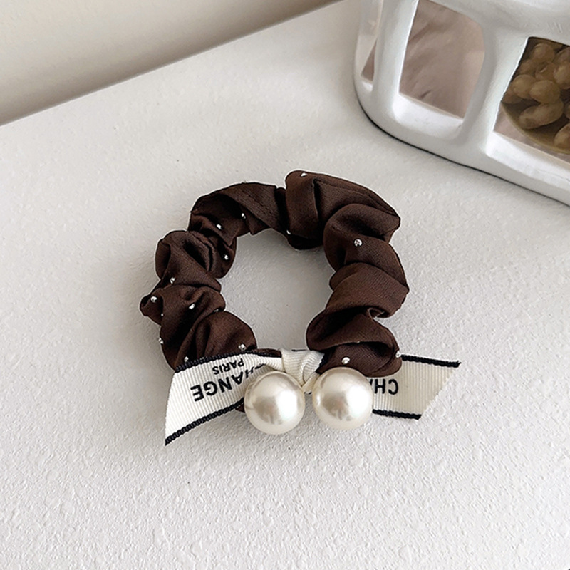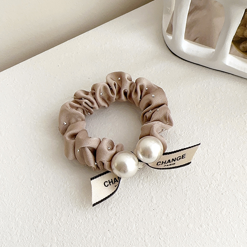 蝴蝶结珍珠发圈韩版高级感水钻大肠圈简约气质马尾头绳丸子头皮筋