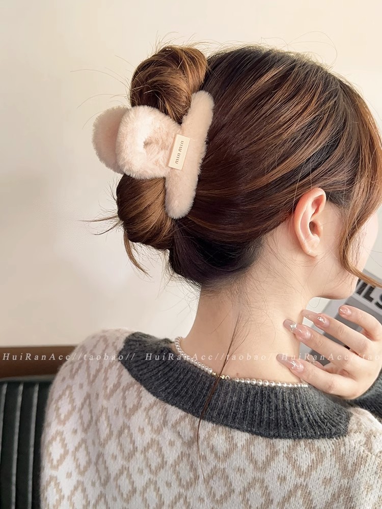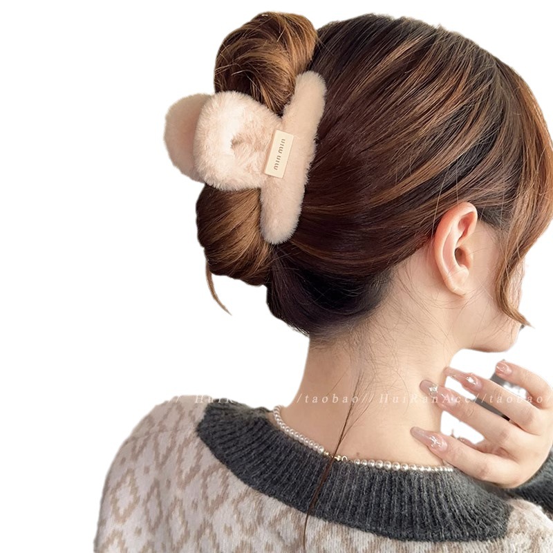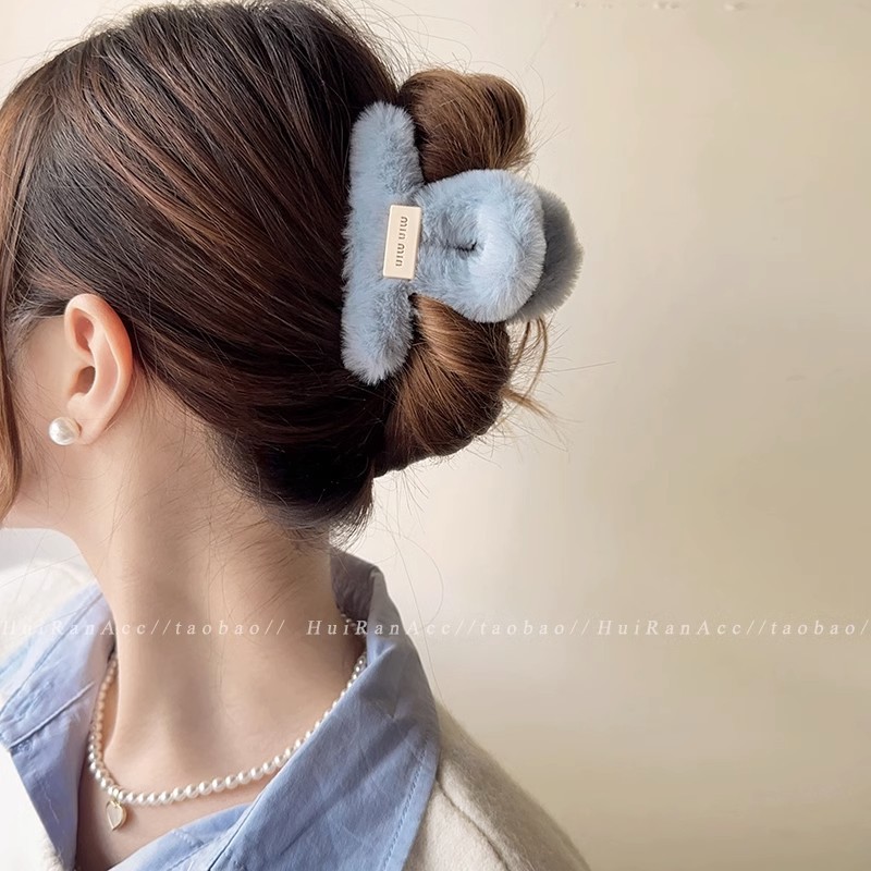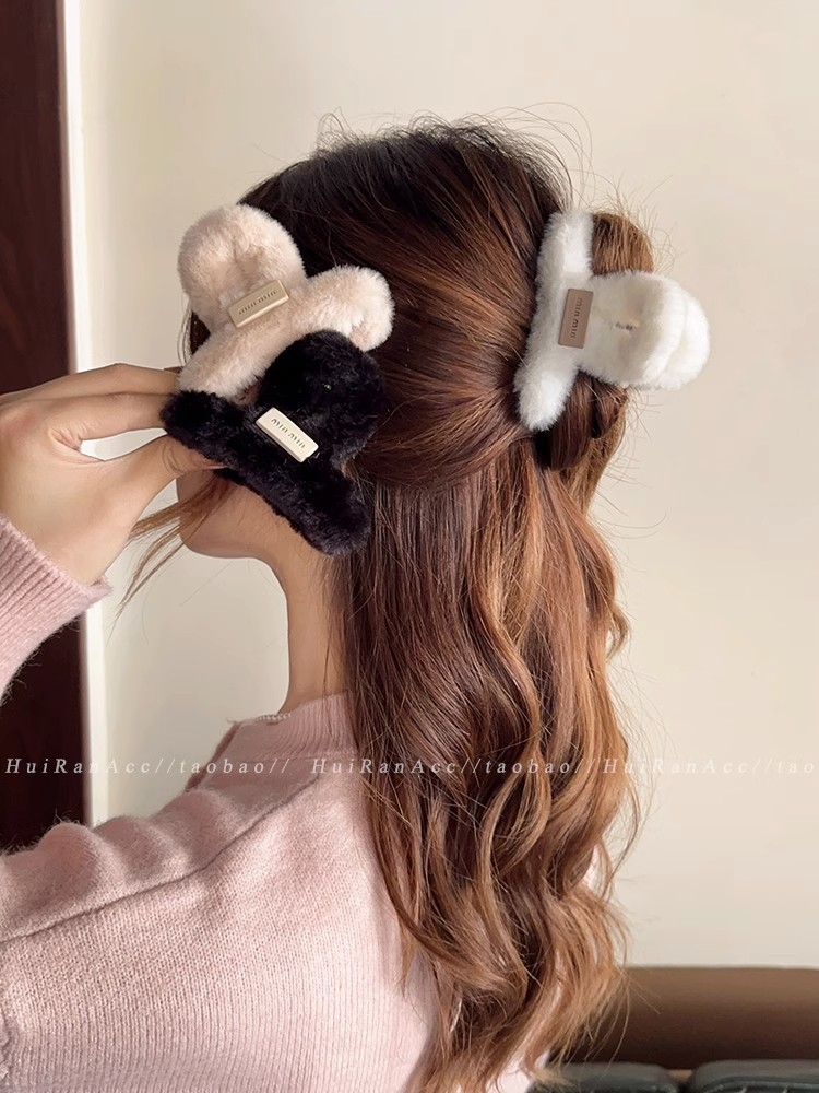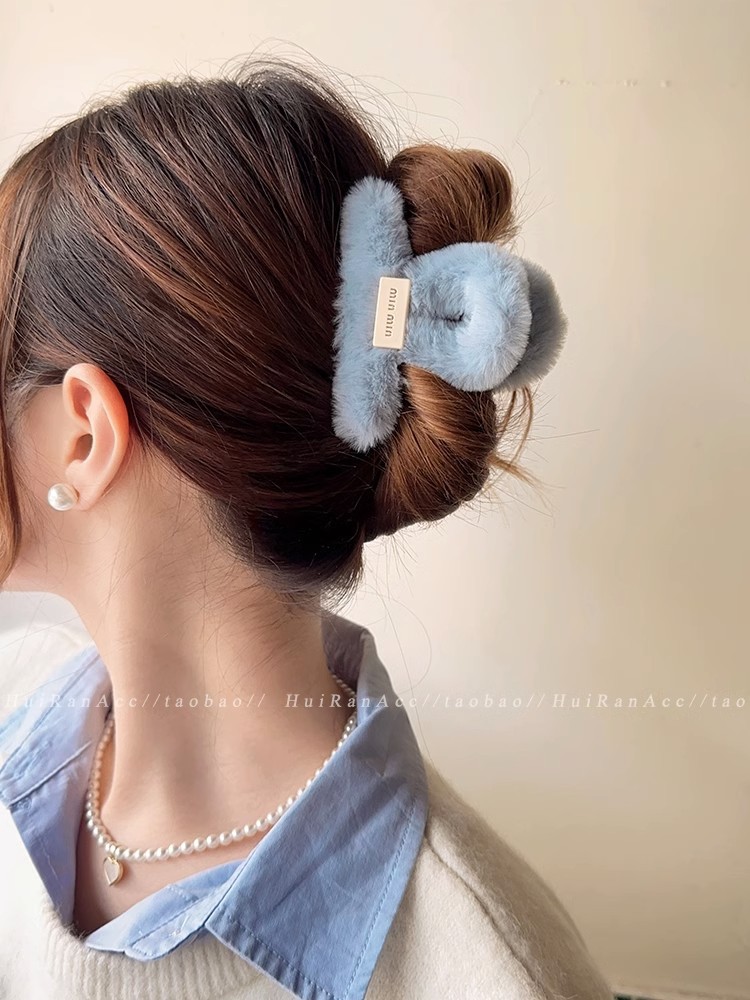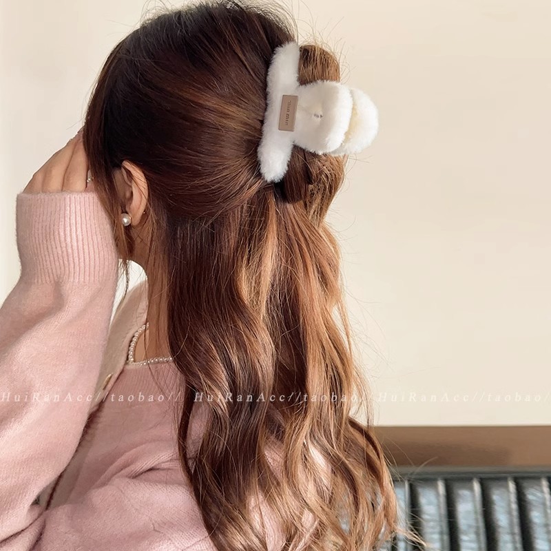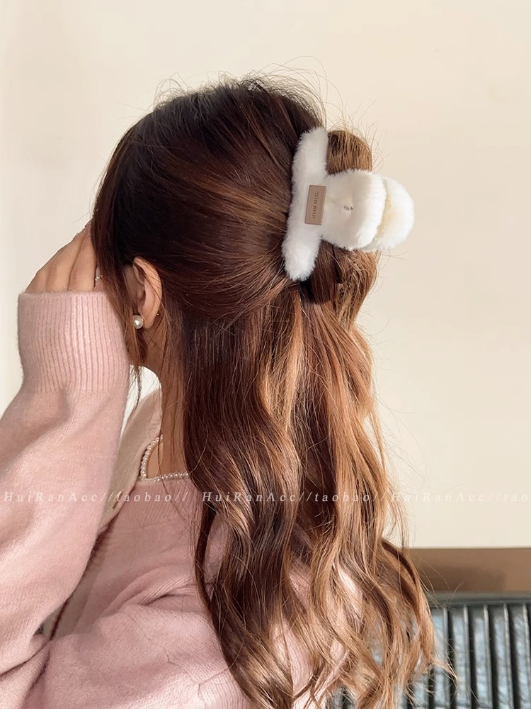 毛绒茸抓夹高级感中号发夹女生后脑勺沙鲨鱼夹发量多发卡夹子头饰