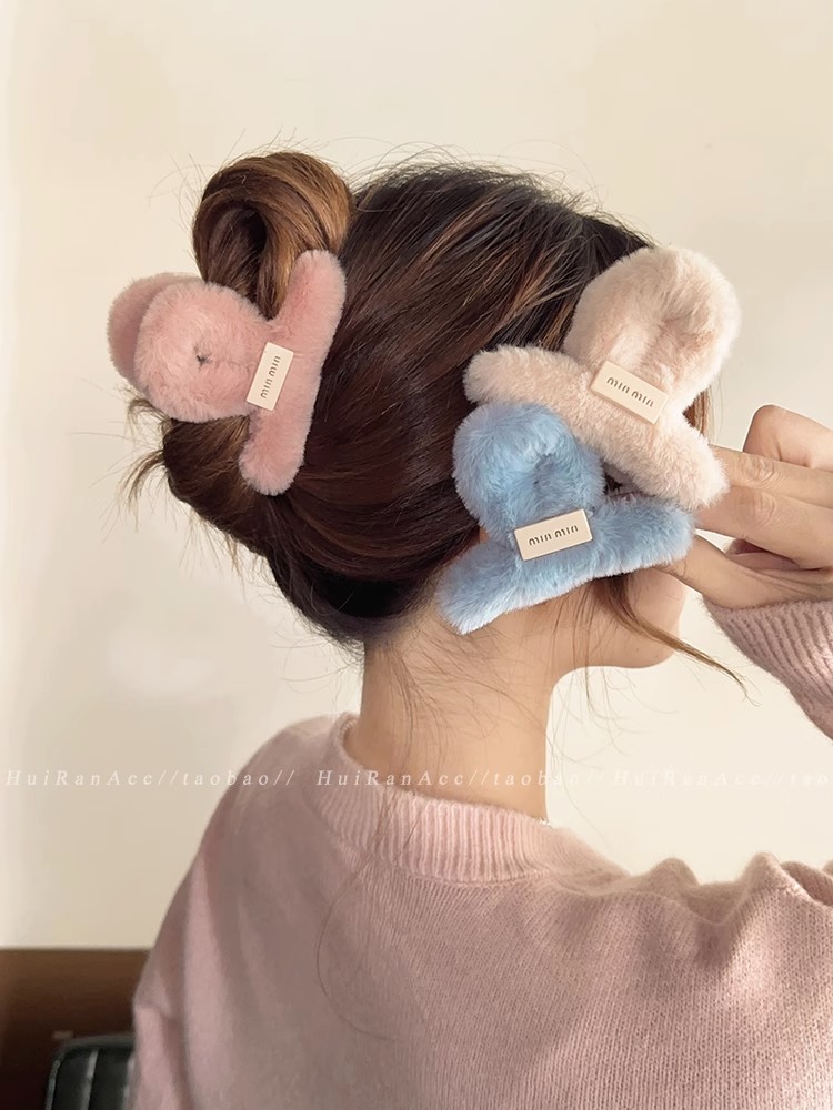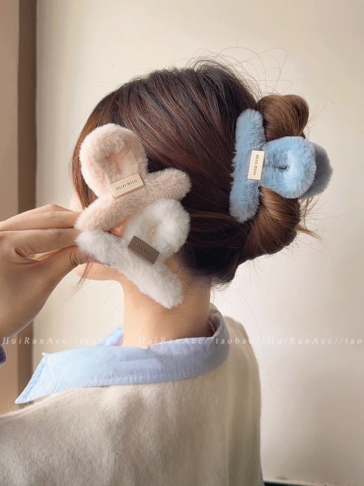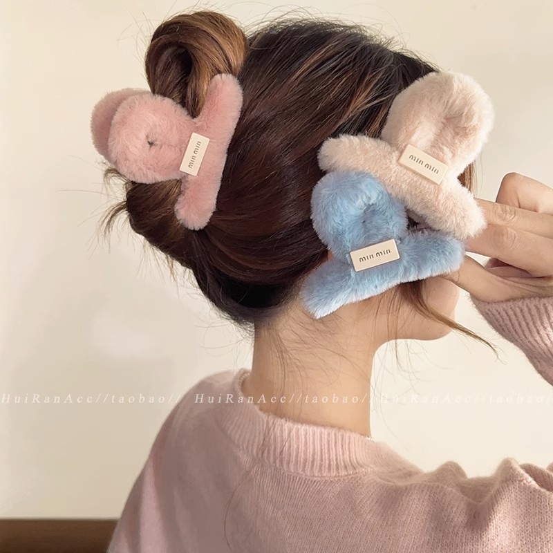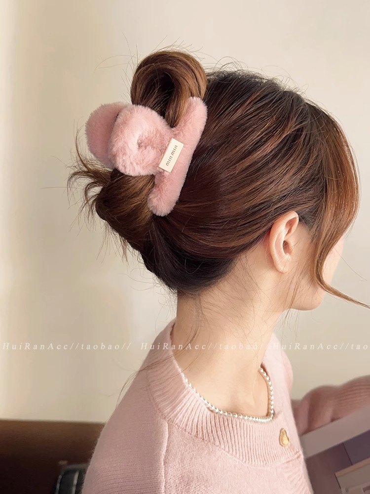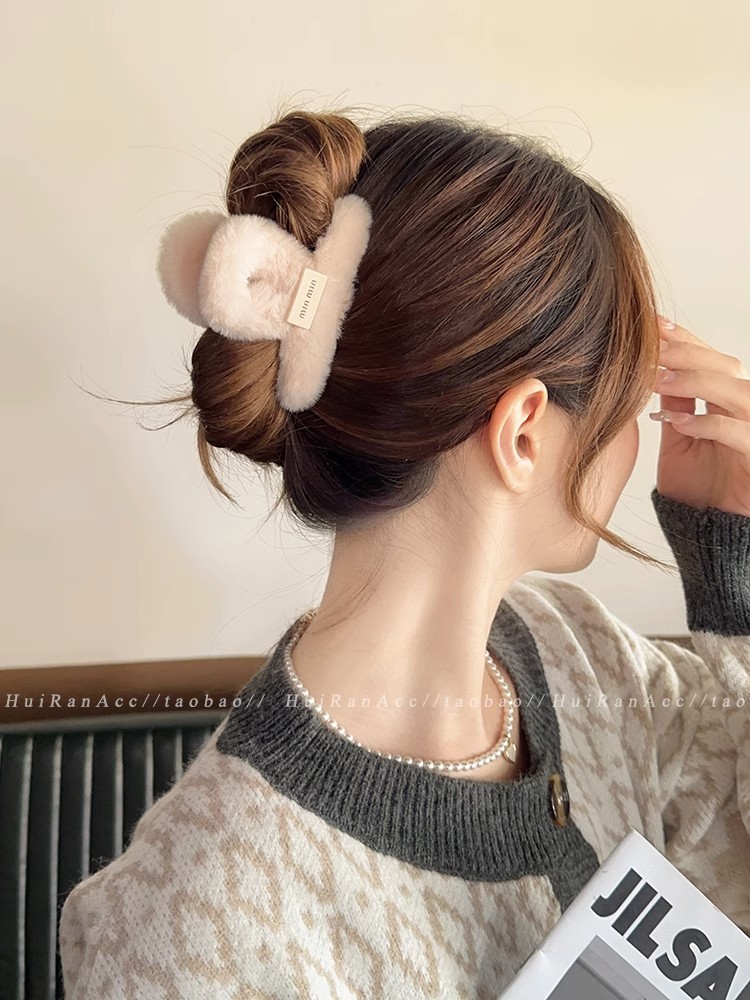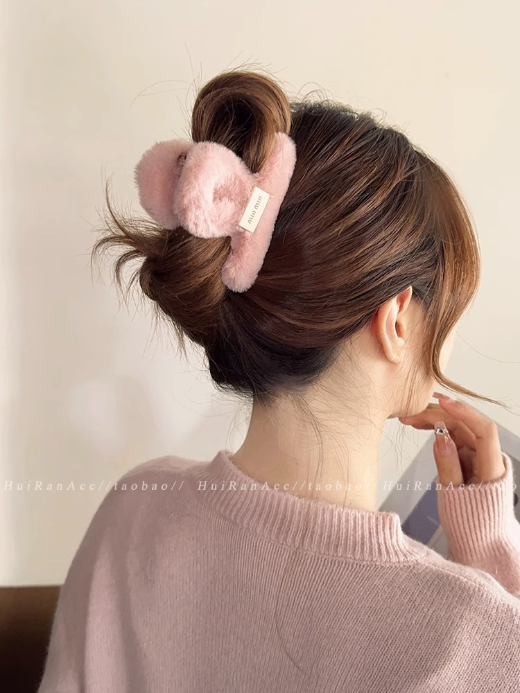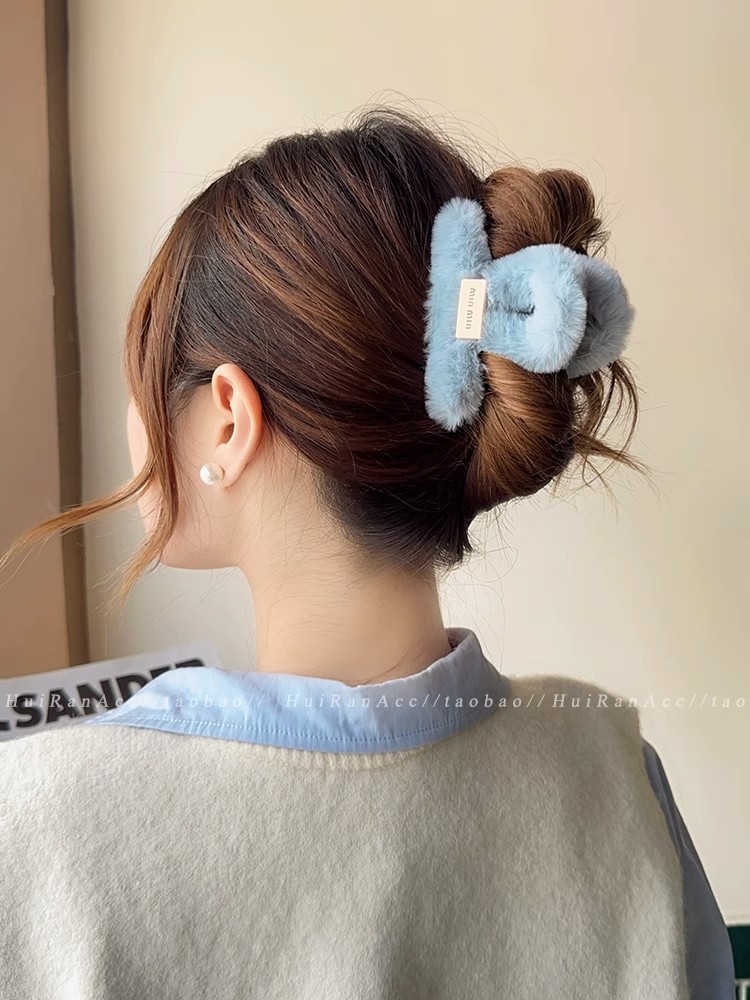 毛绒茸抓夹高级感中号发夹女生后脑勺沙鲨鱼夹发量多发卡夹子头饰
