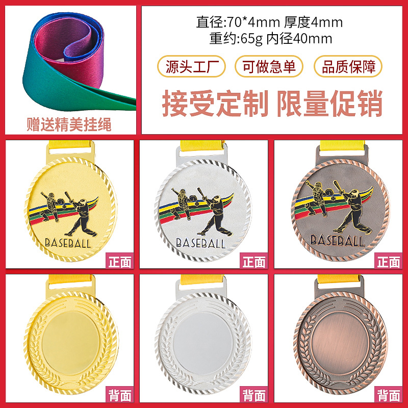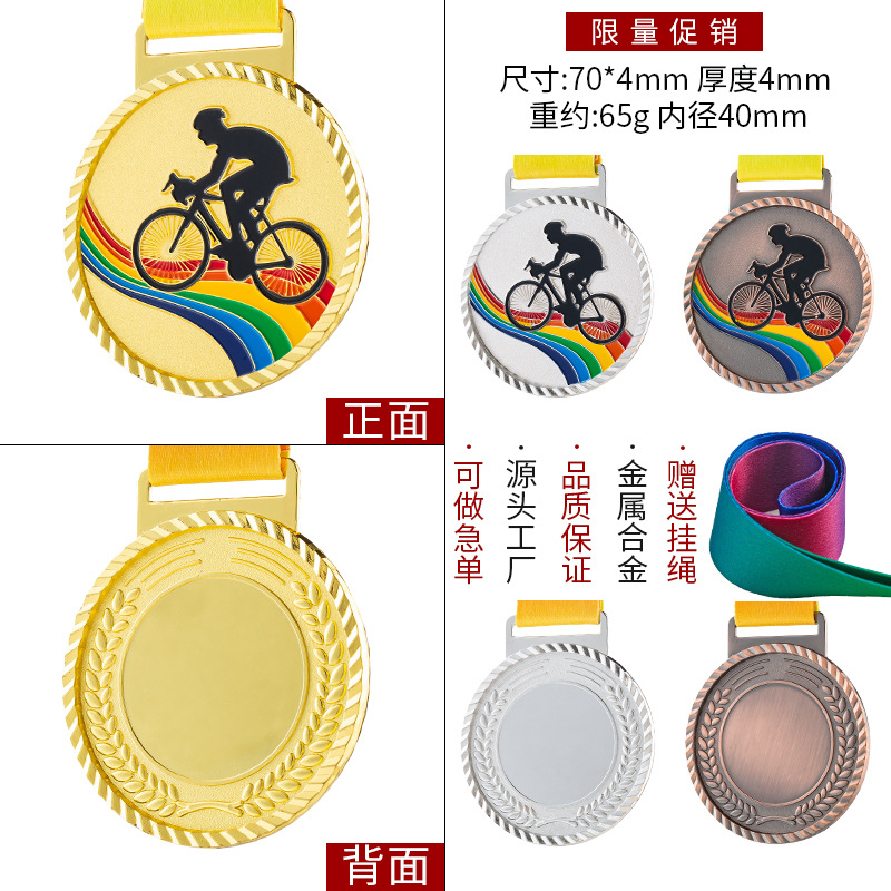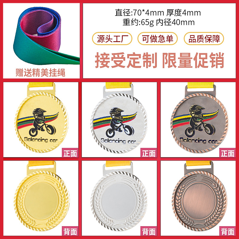 金属奖牌定制平衡车跑步挂牌滑轮跳绳登山游泳自行车棒球奖章定做