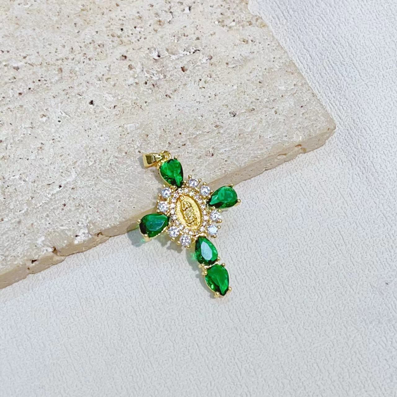 欧美跨境新品小众设计个性圣母十字架吊坠可DIY微镶铜锆石配件女