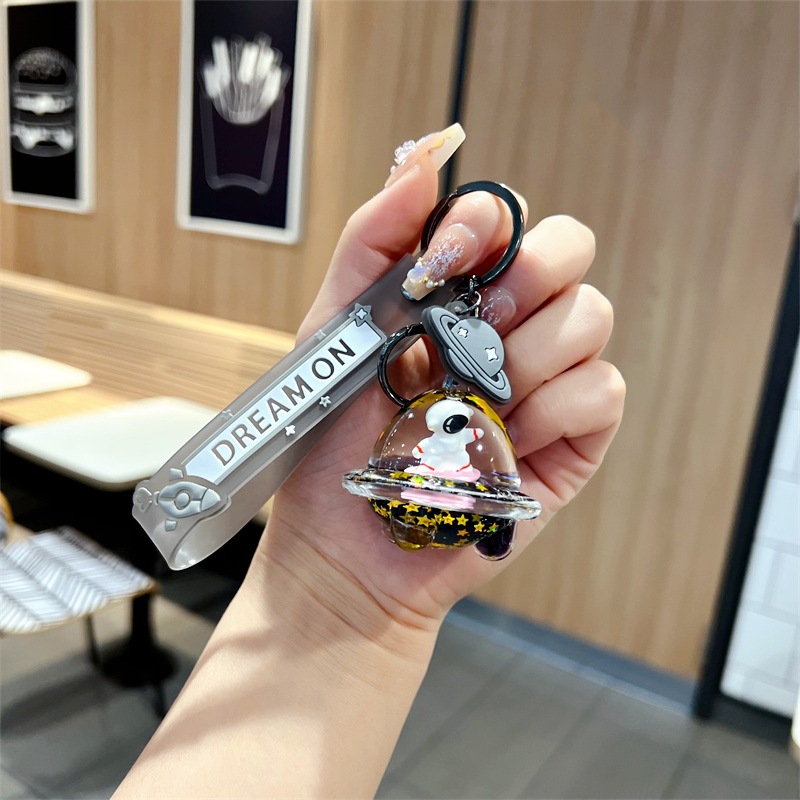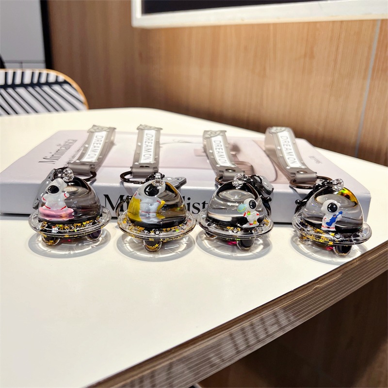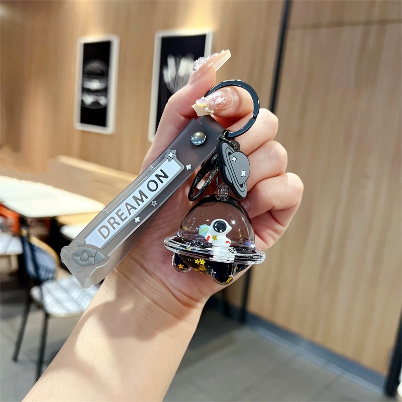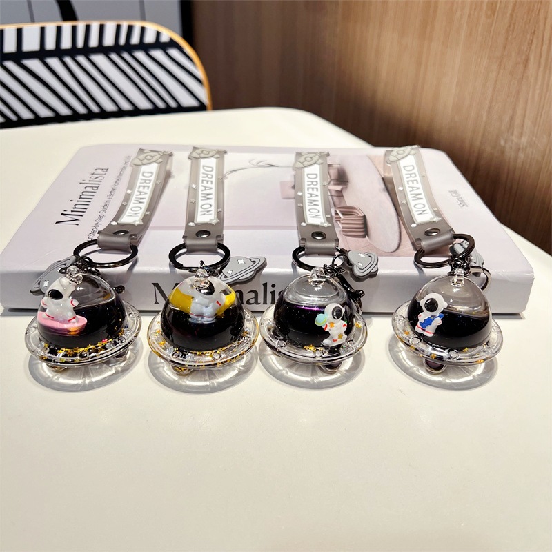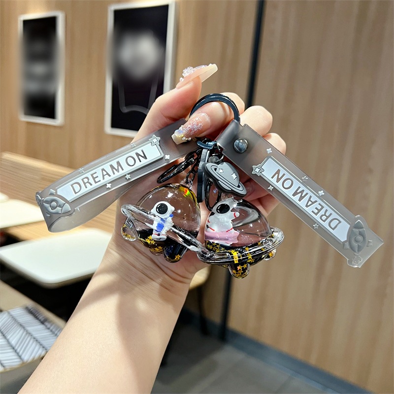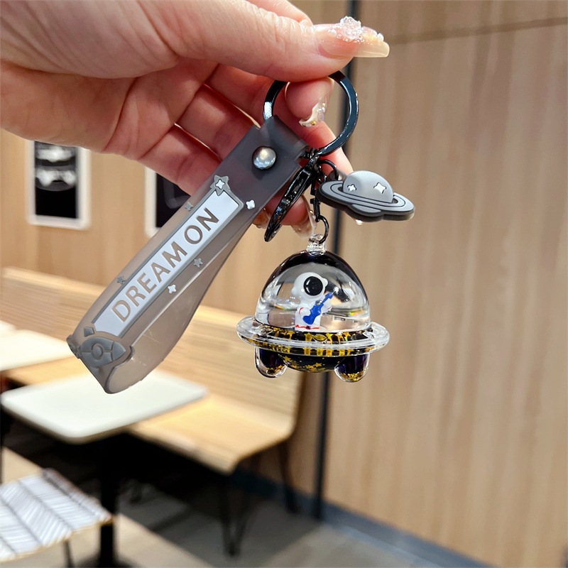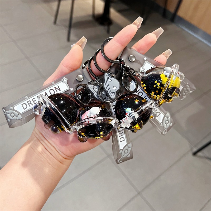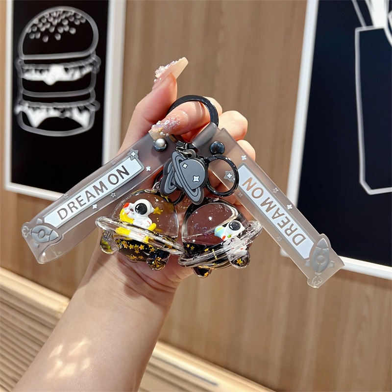 创意漂流瓶黑金太空飞船入油钥匙扣可爱漂浮液体宇航员流沙瓶挂件