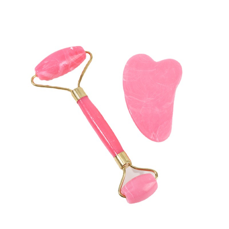 仿玉石美容棒树脂粉晶按摩滚轮脸部按摩器面部双头滚轮刮痧套装板