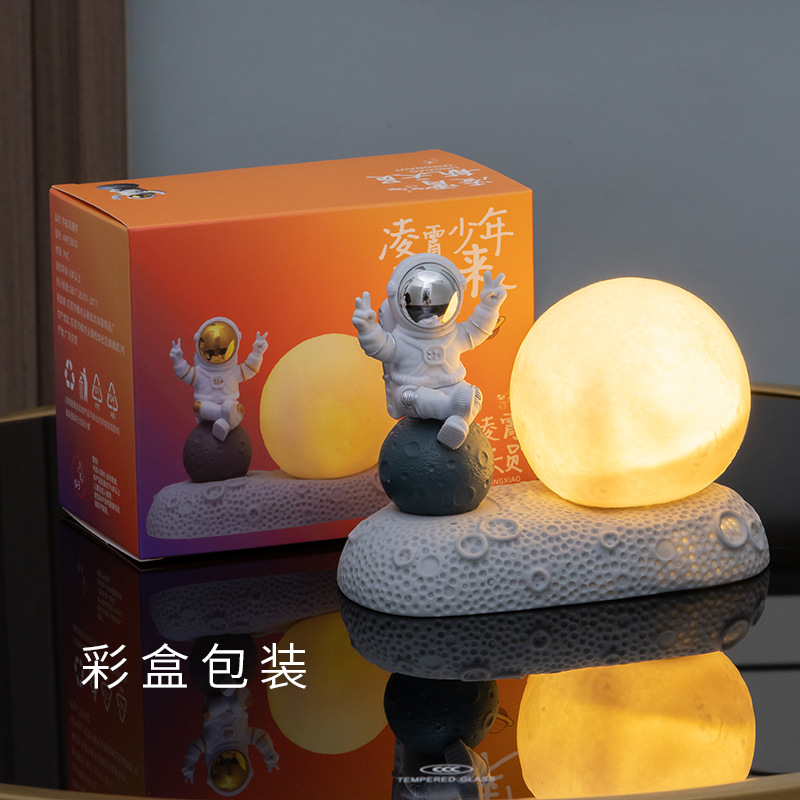 宇航员摆件月球装饰小夜灯太空探险情景生日礼物摆饰厂家批发