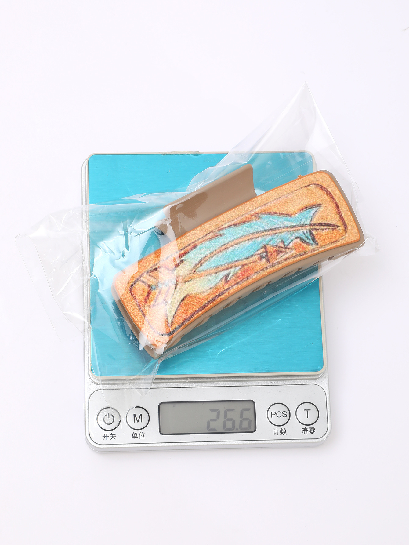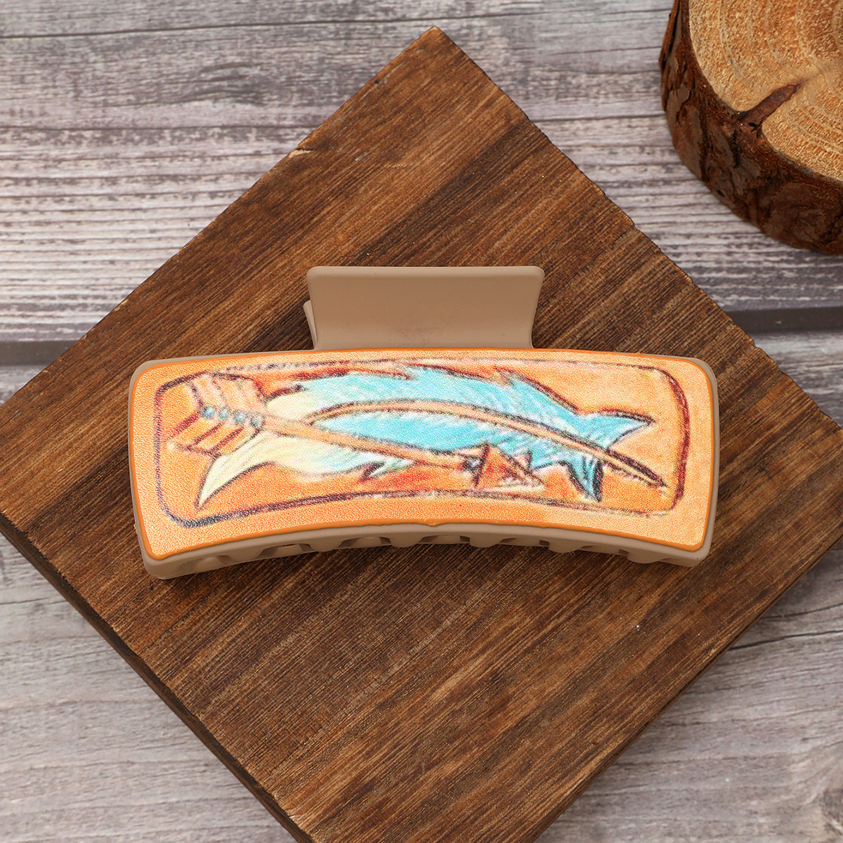 跨境西部风向日葵羽毛图案PU皮革发夹女士鲨鱼夹速卖通亚马逊