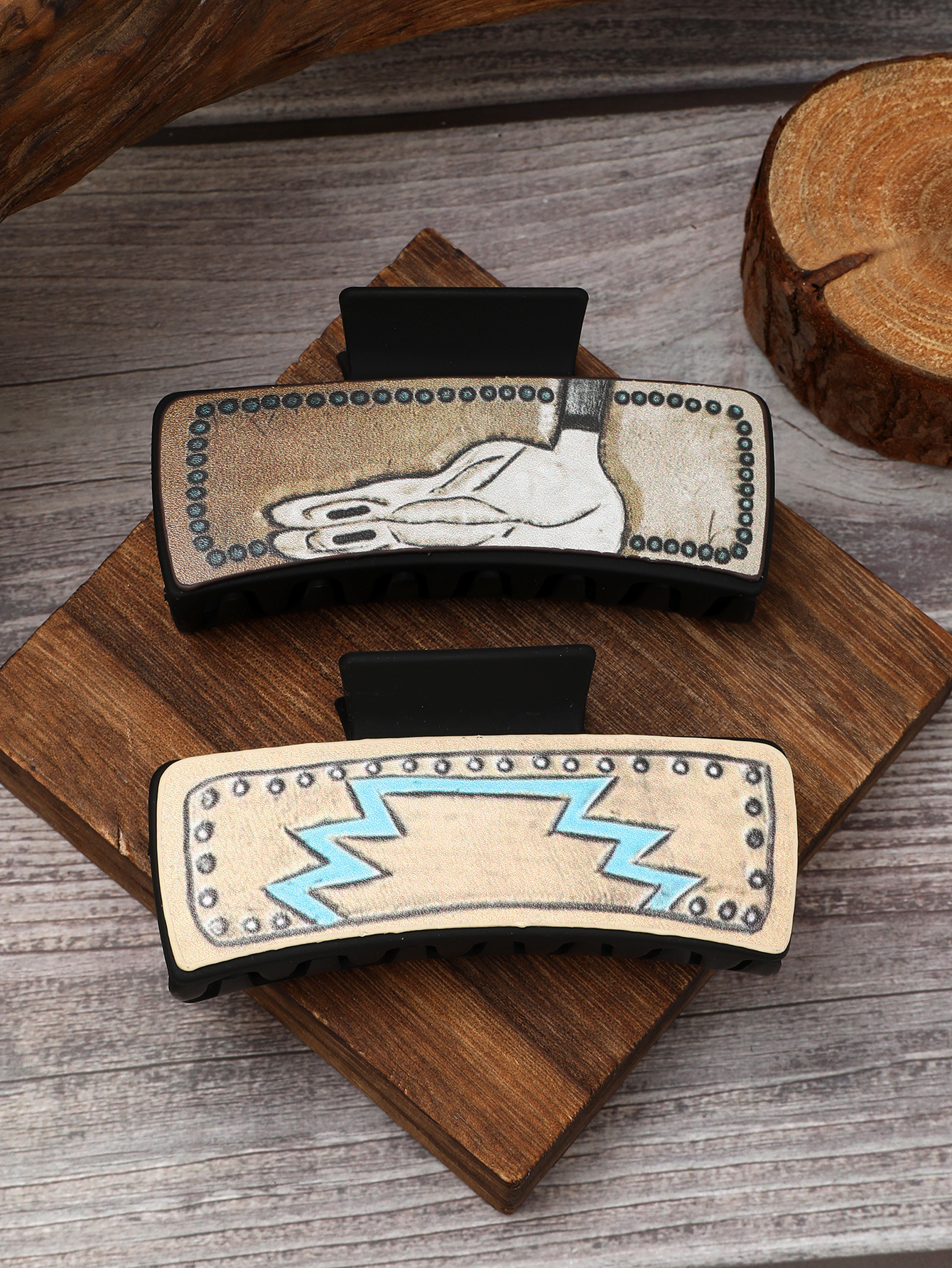 跨境西部牛仔风皮革发夹牛头鲨鱼夹女士抓夹亚马逊速卖通