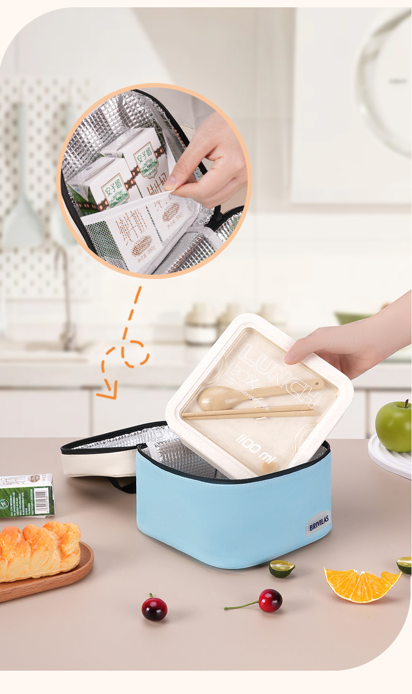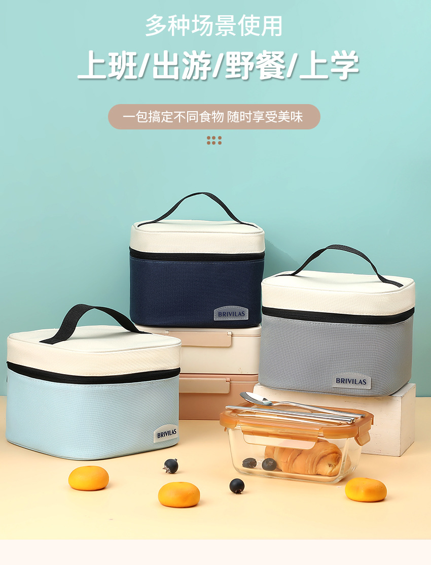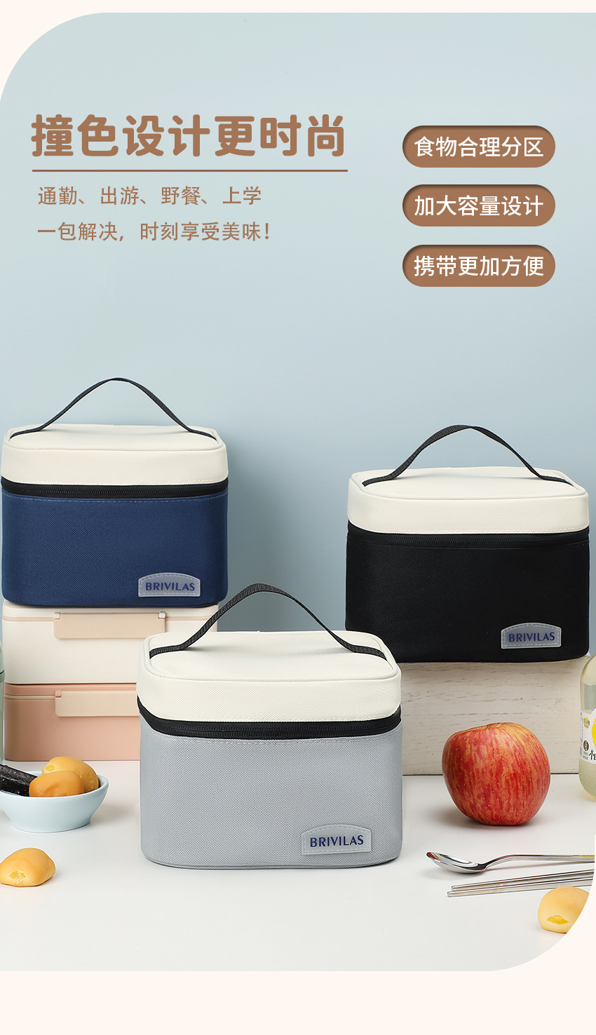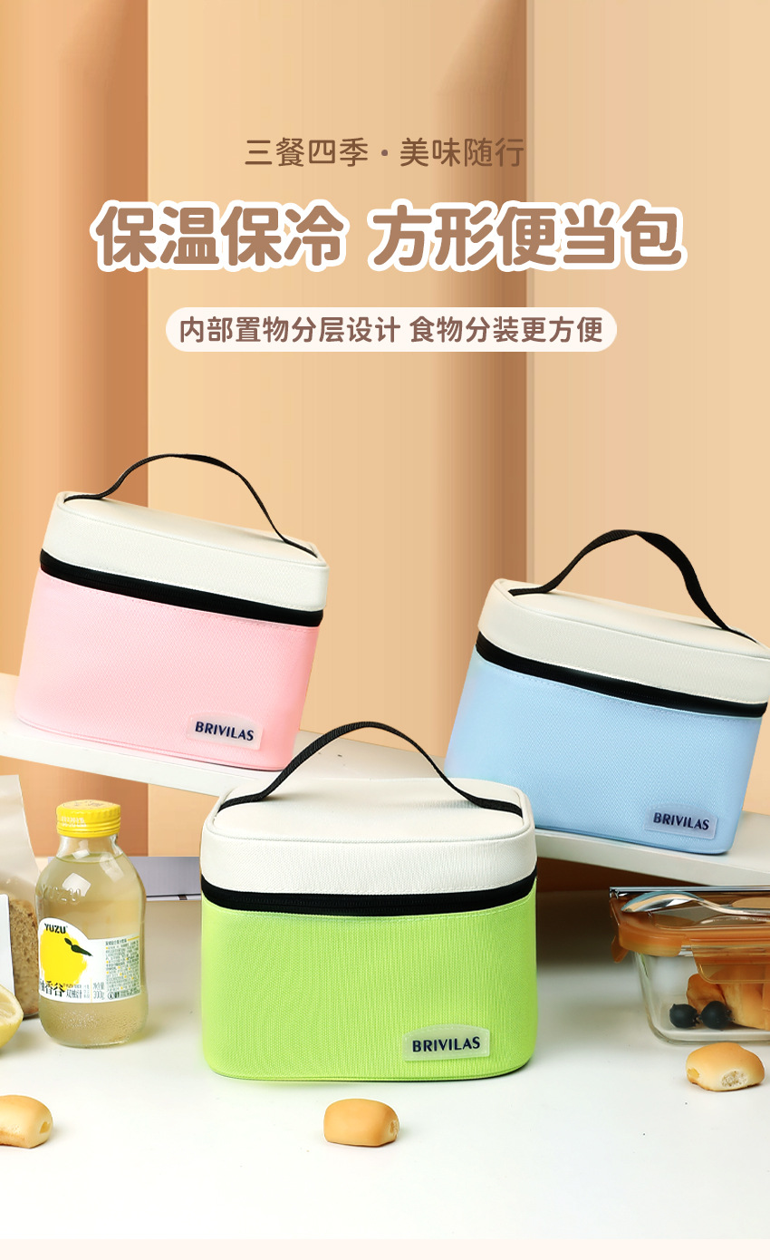新款多巴胺小方块餐包拼色时尚保鲜冰包户外野餐包上班带饭保温包