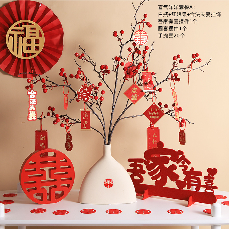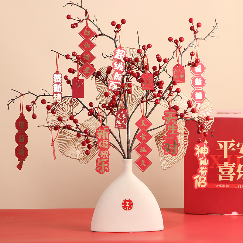 中式红色红果陶瓷花瓶婚礼喜庆结婚装饰花器新房乔迁素胚花瓶摆件