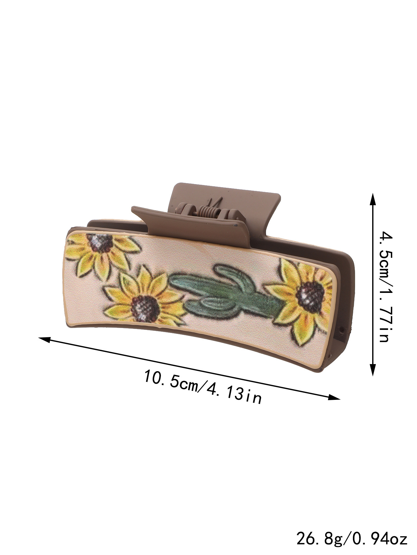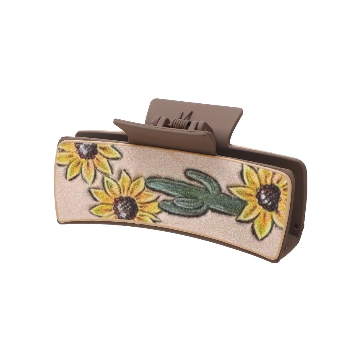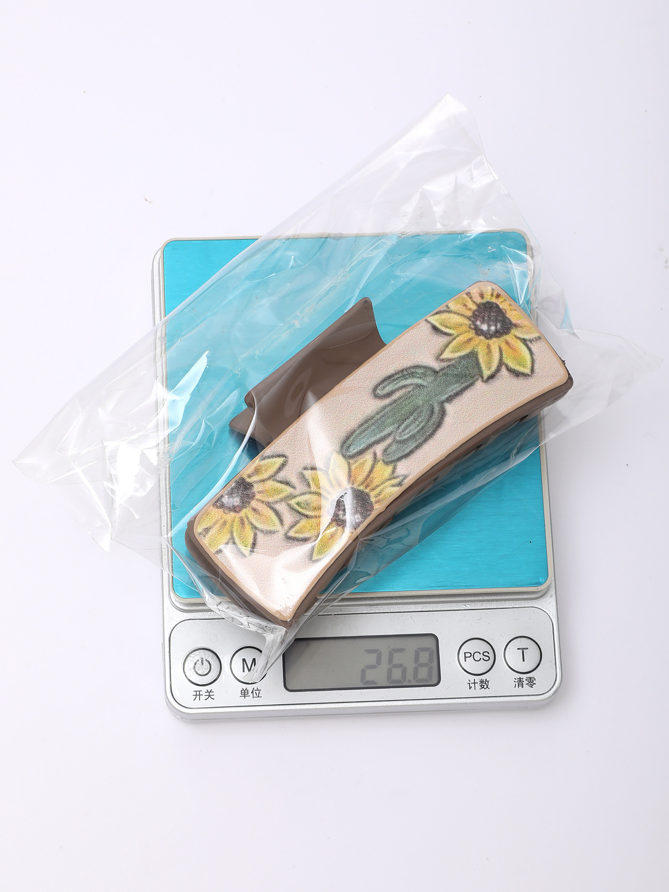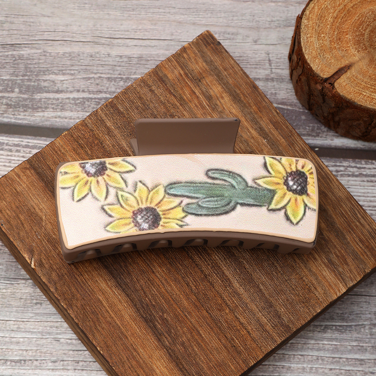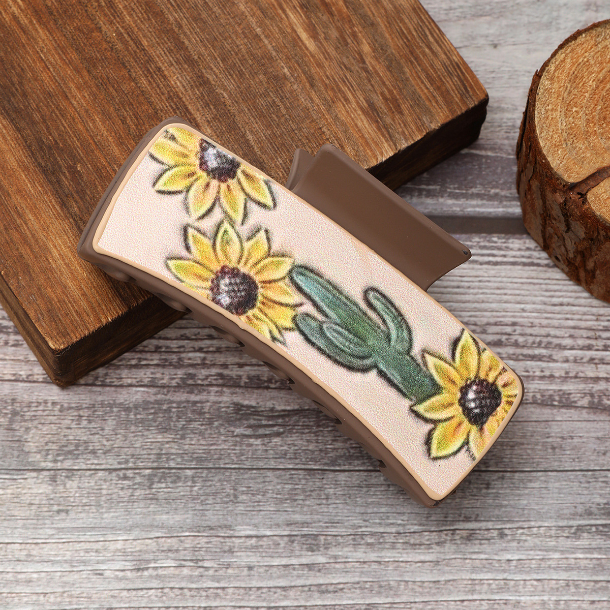跨境西部牛仔风仙人掌向日葵PU皮革鲨鱼夹发夹女士抓夹速卖通亚马