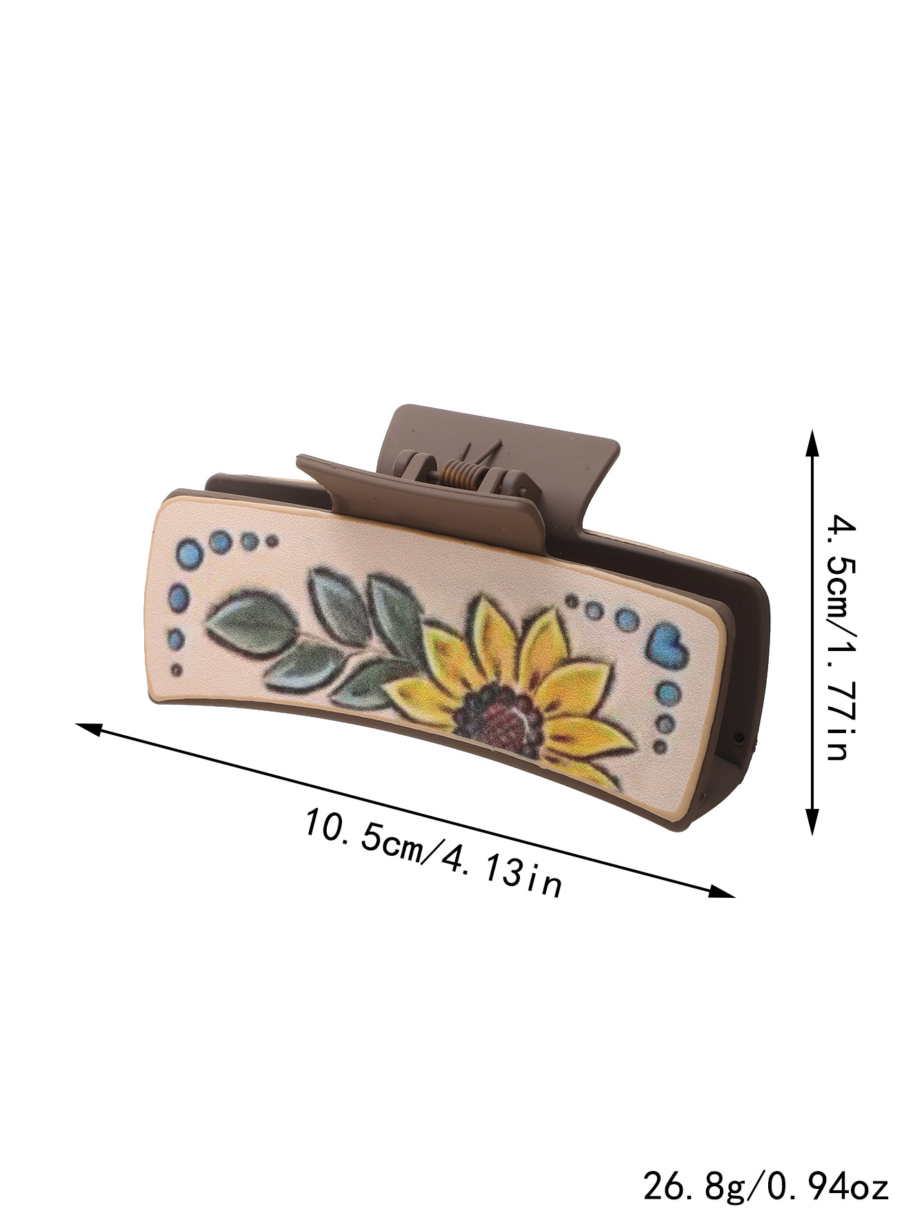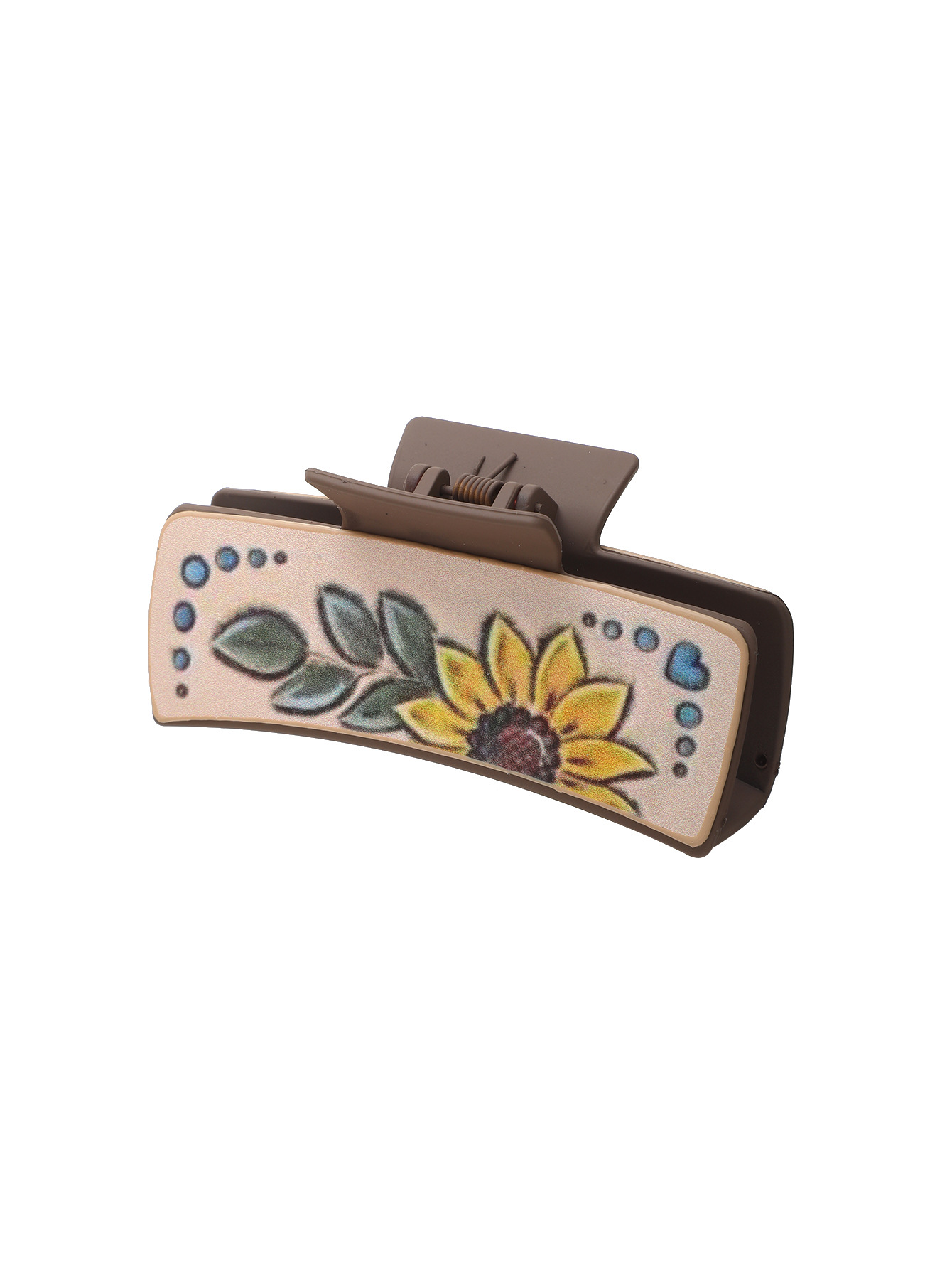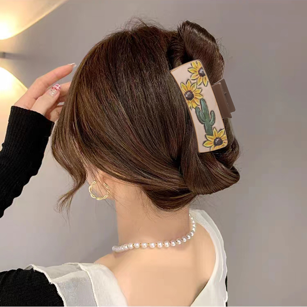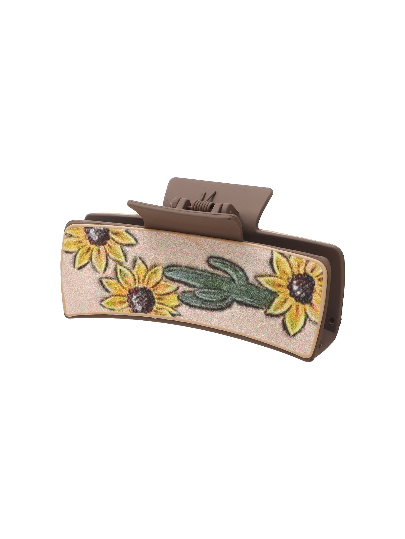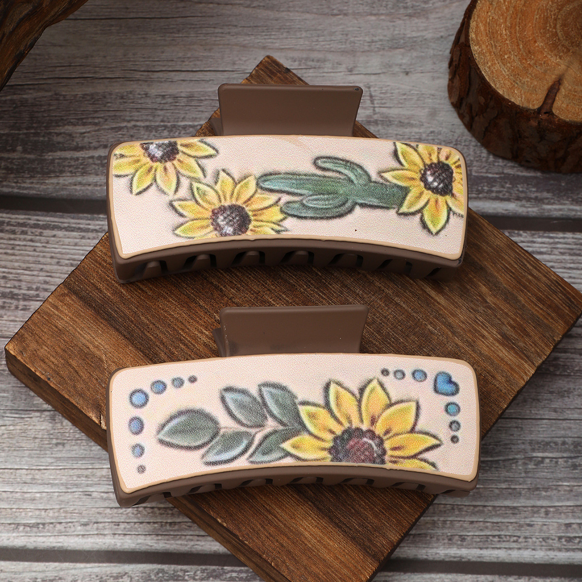 跨境西部牛仔风仙人掌向日葵PU皮革鲨鱼夹发夹女士抓夹速卖通亚马