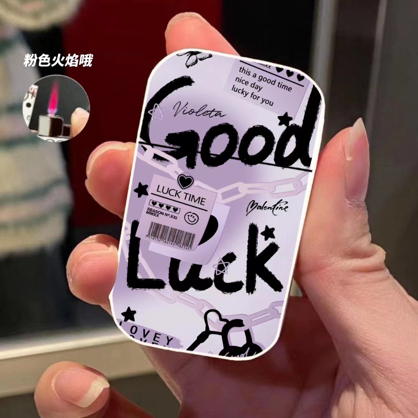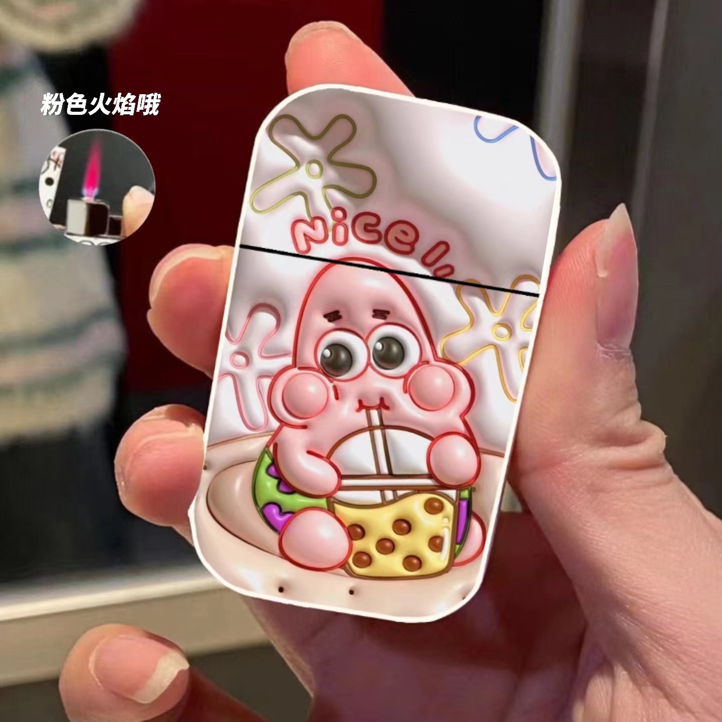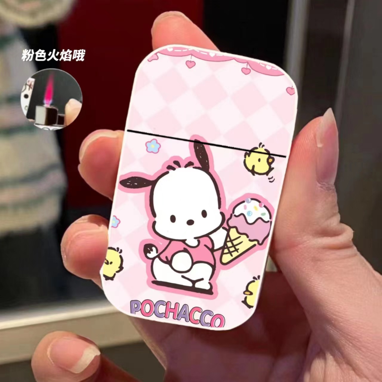 三丽鸥粉色火焰创意防风直冲打火机 金属动漫卡通充气打火机