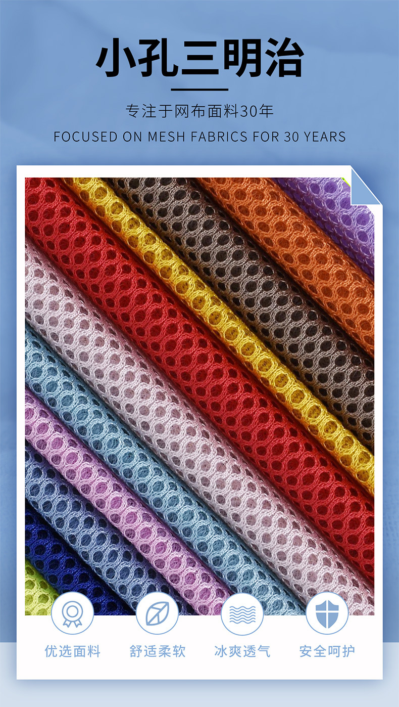 源头工厂透气三明治网眼网布服饰面料箱包内衬亲肤舒适网布
