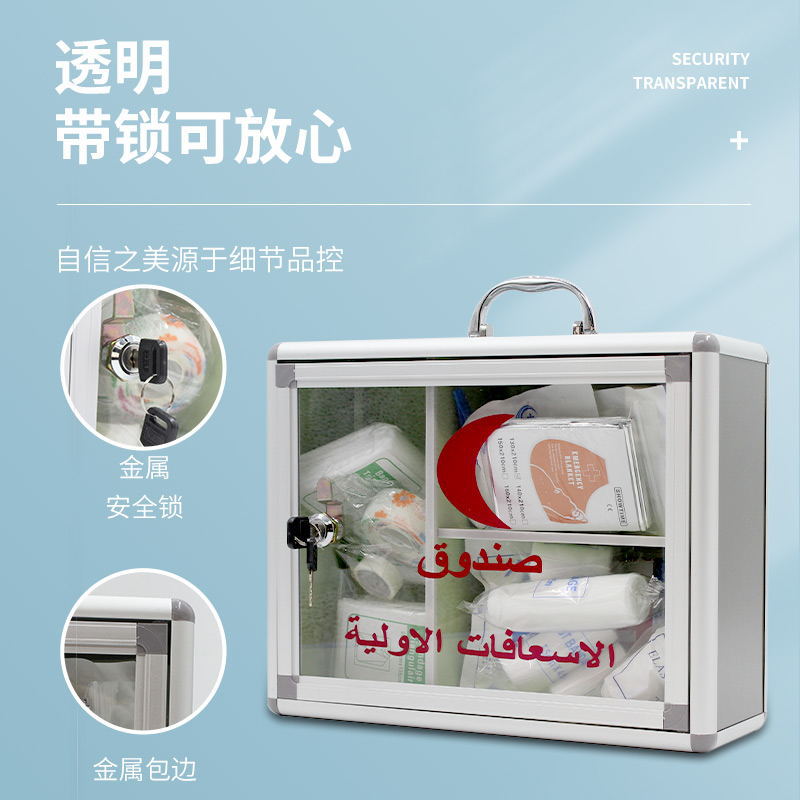 铝合金玻璃急救箱 工厂家庭医药箱 可挂墙壁医疗箱套装