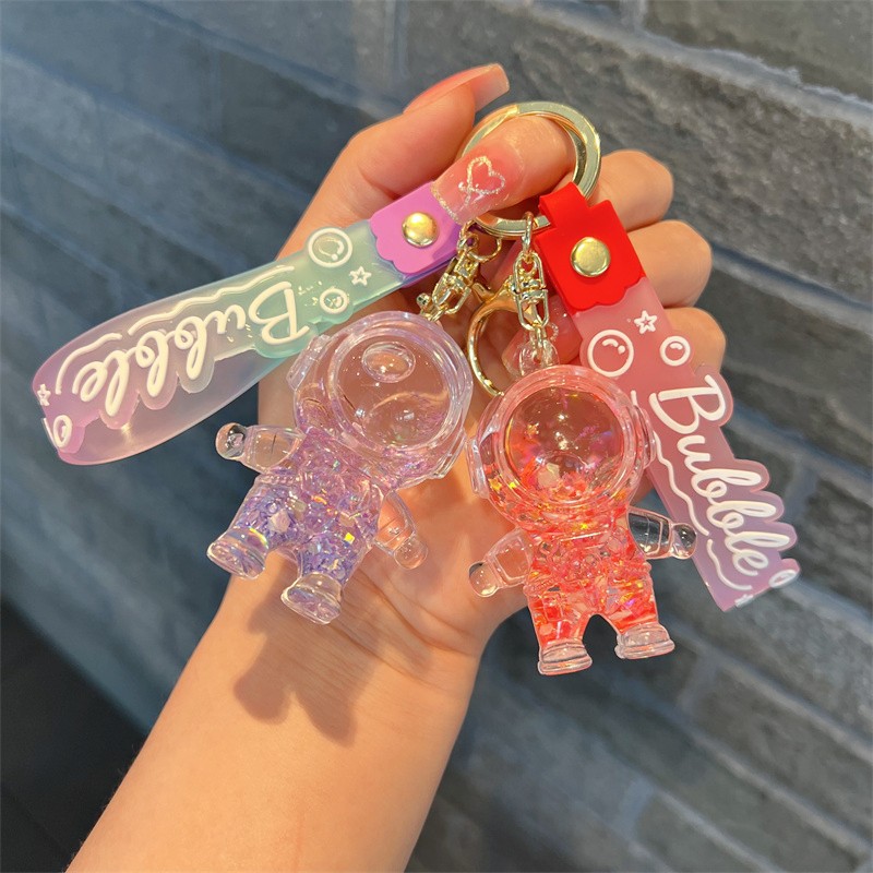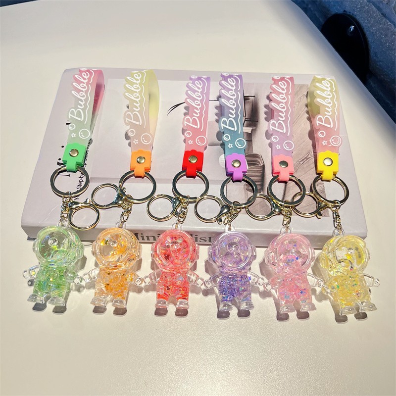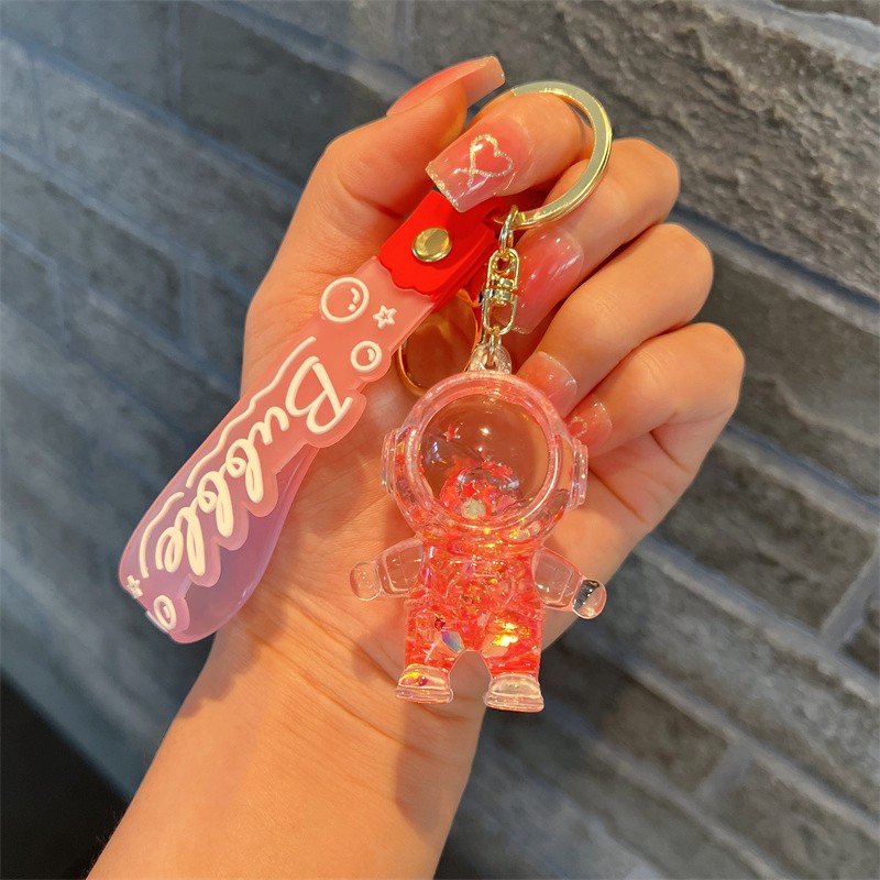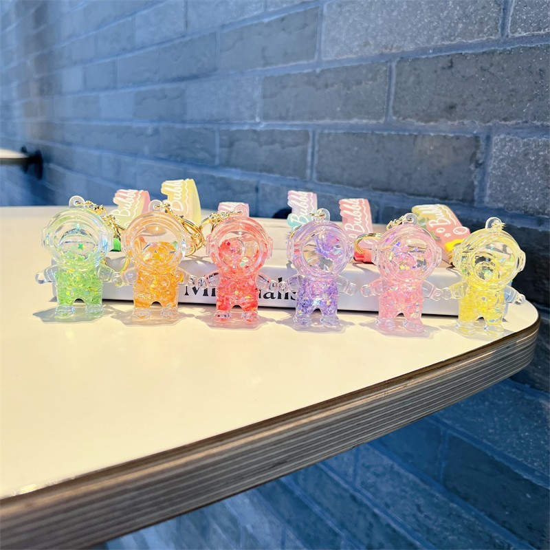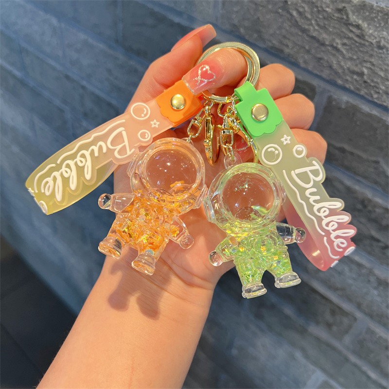 入油太空人流沙瓶钥匙扣可爱泡泡珠宇航员漂浮液体公仔漂流瓶挂件