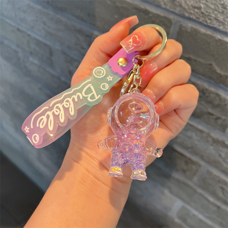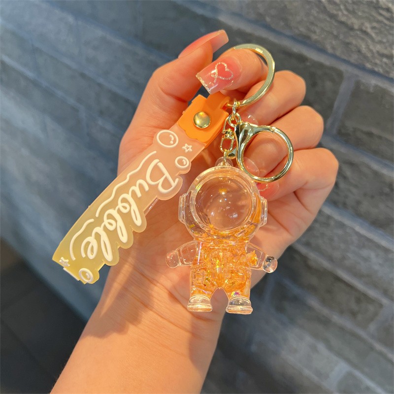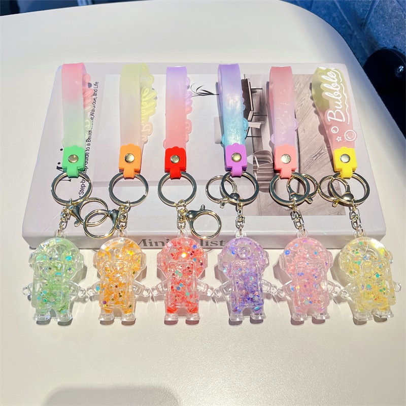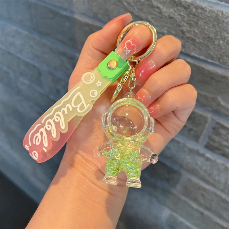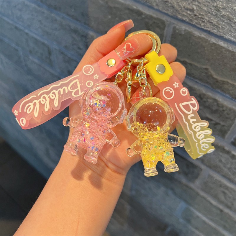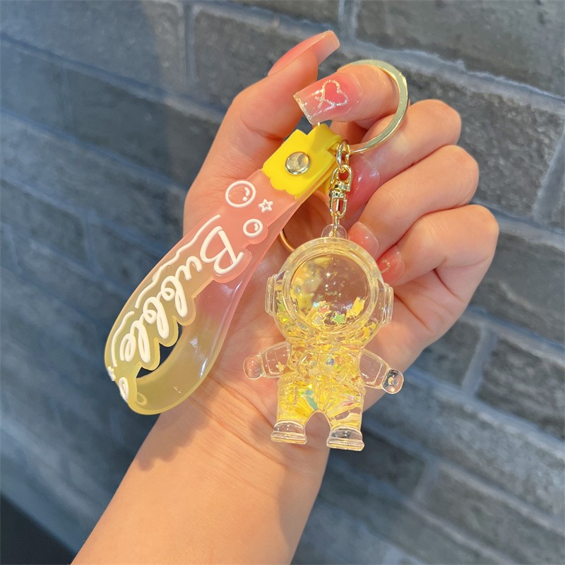 入油太空人流沙瓶钥匙扣可爱泡泡珠宇航员漂浮液体公仔漂流瓶挂件