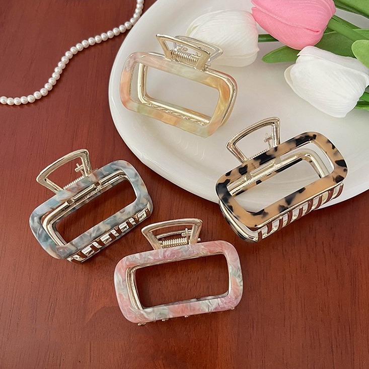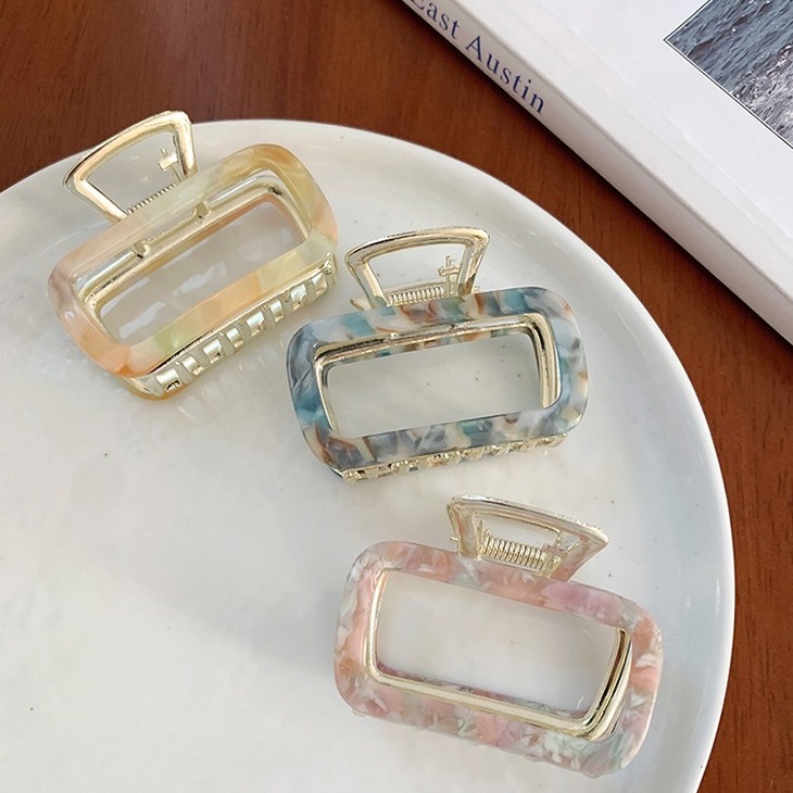 韩版新款方形镂空醋酸抓夹网红复古加厚盘发夹子半扎发鲨鱼夹发饰