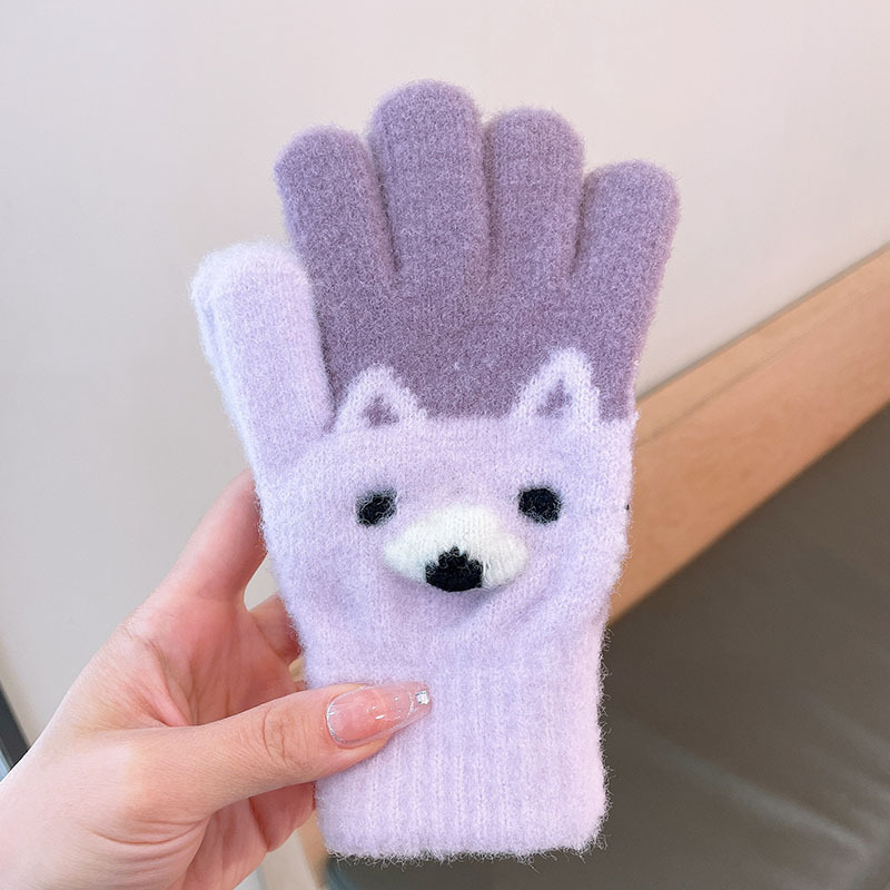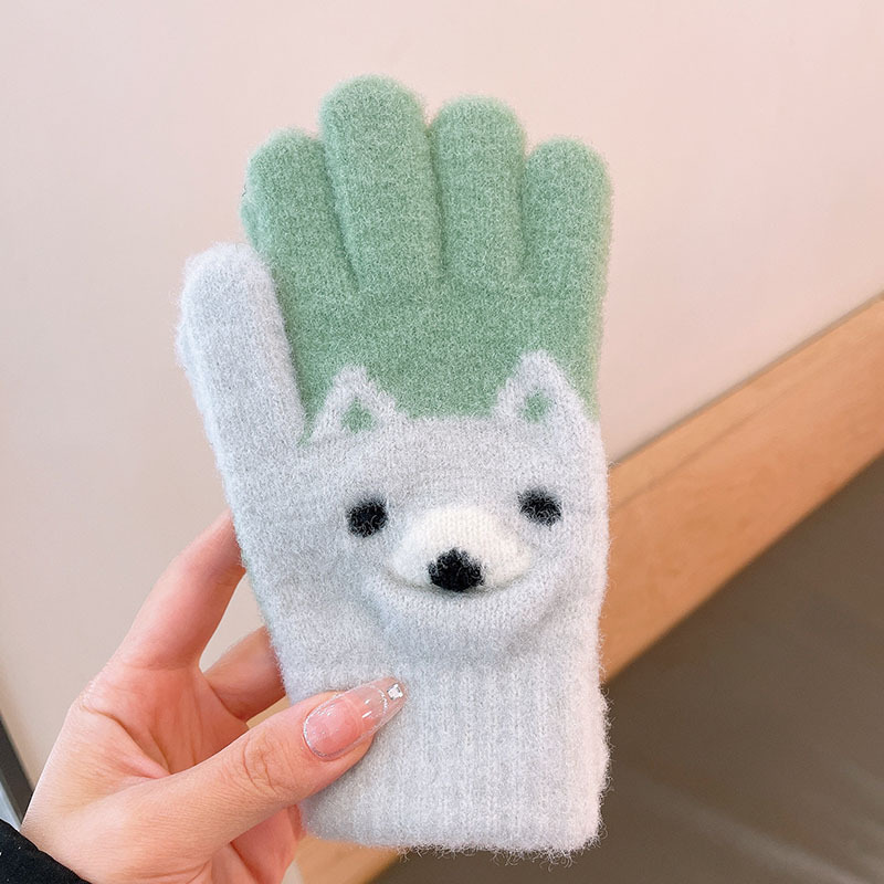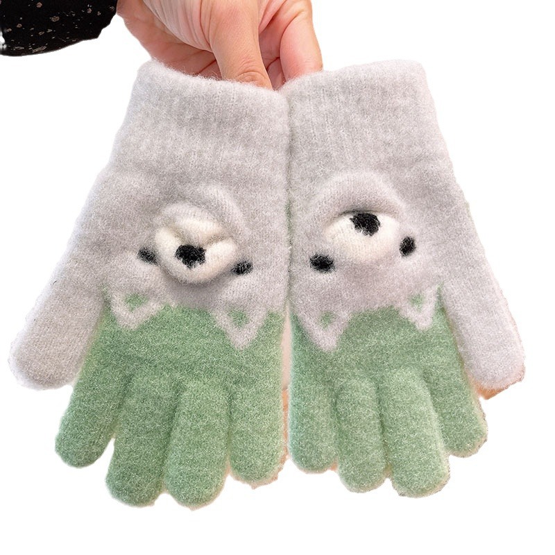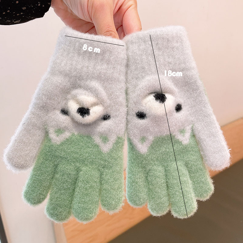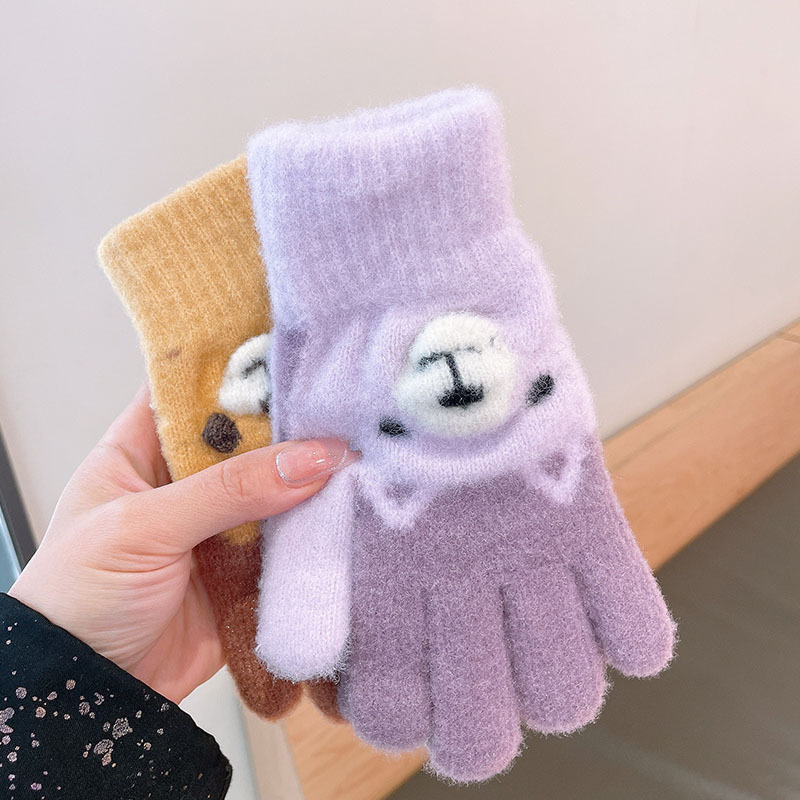 秋冬儿童卡通小熊针织手套男女学生外出保暖五指加绒加厚大童手套