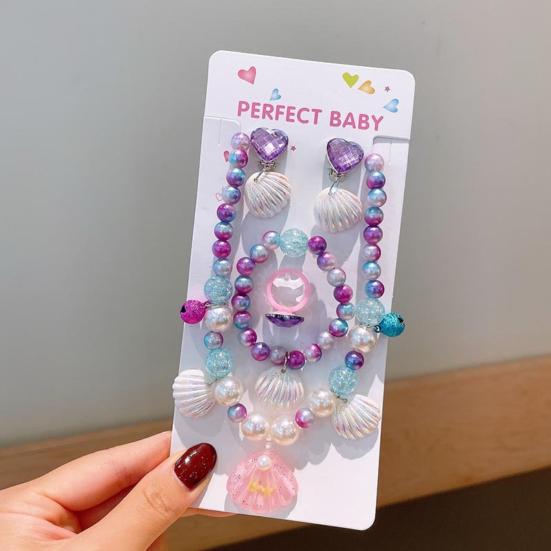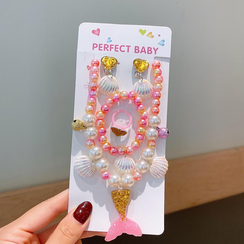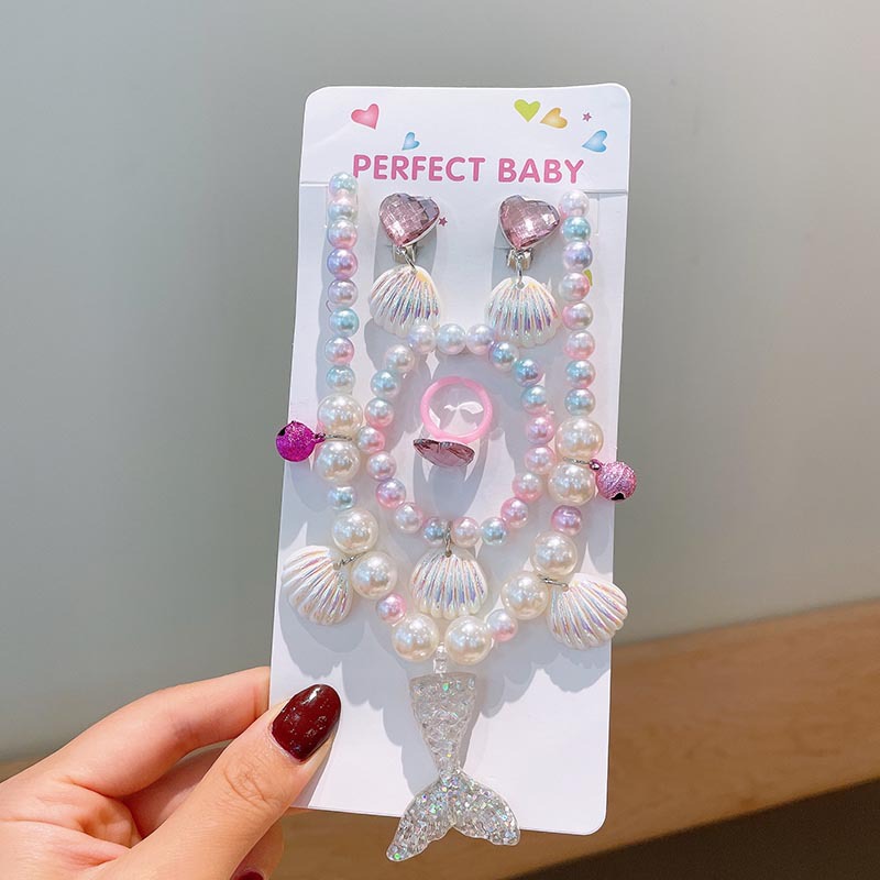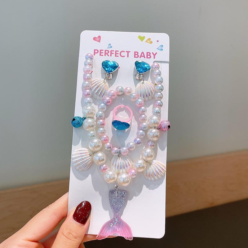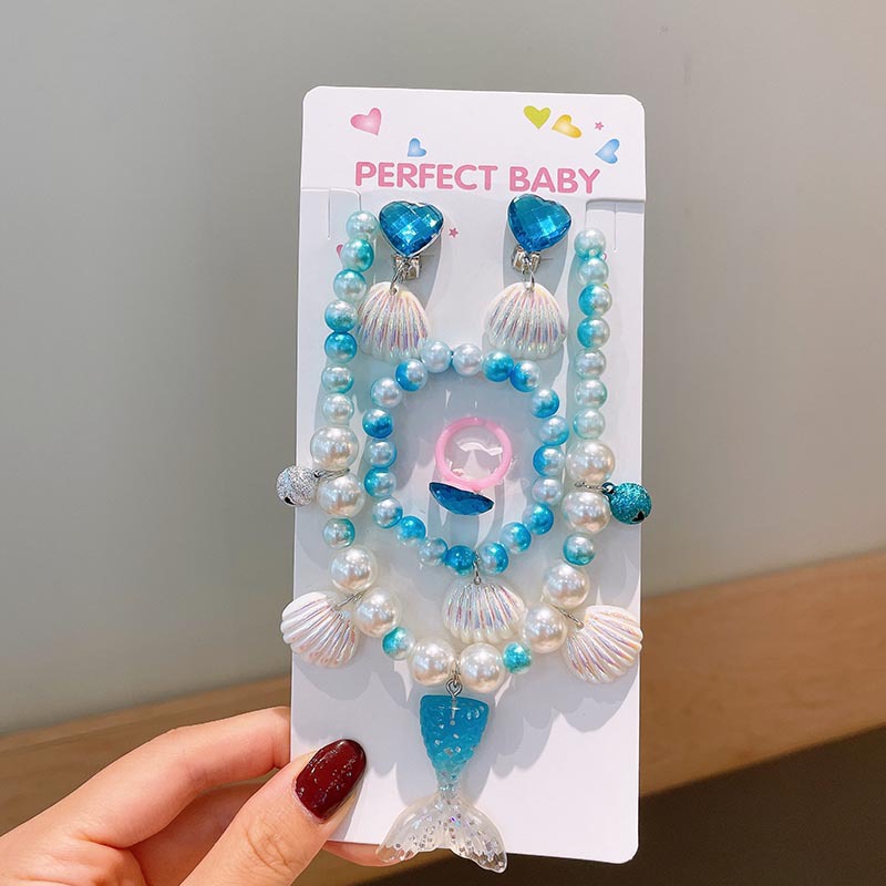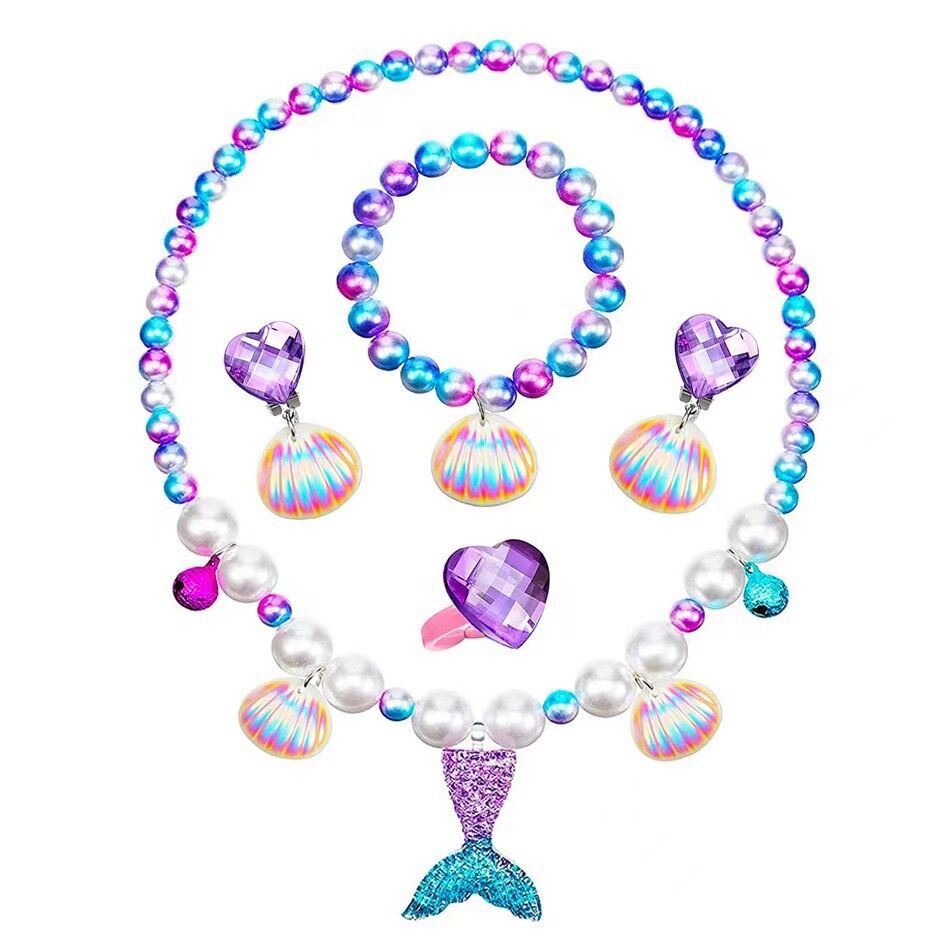 公主美人鱼尾巴儿童项链小女孩贝壳珍珠幻彩手工串珠手链首饰套装