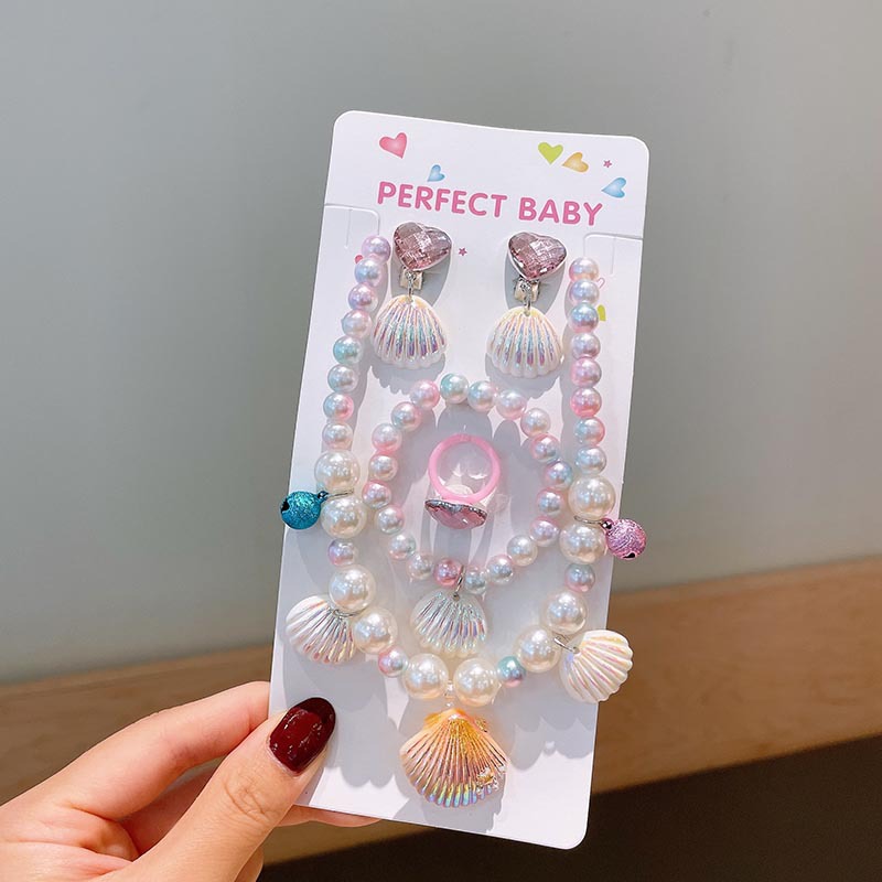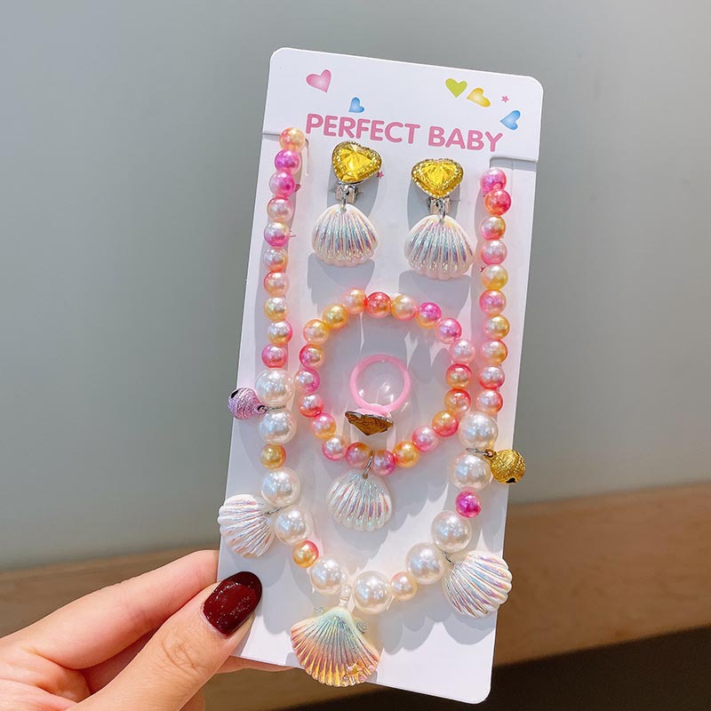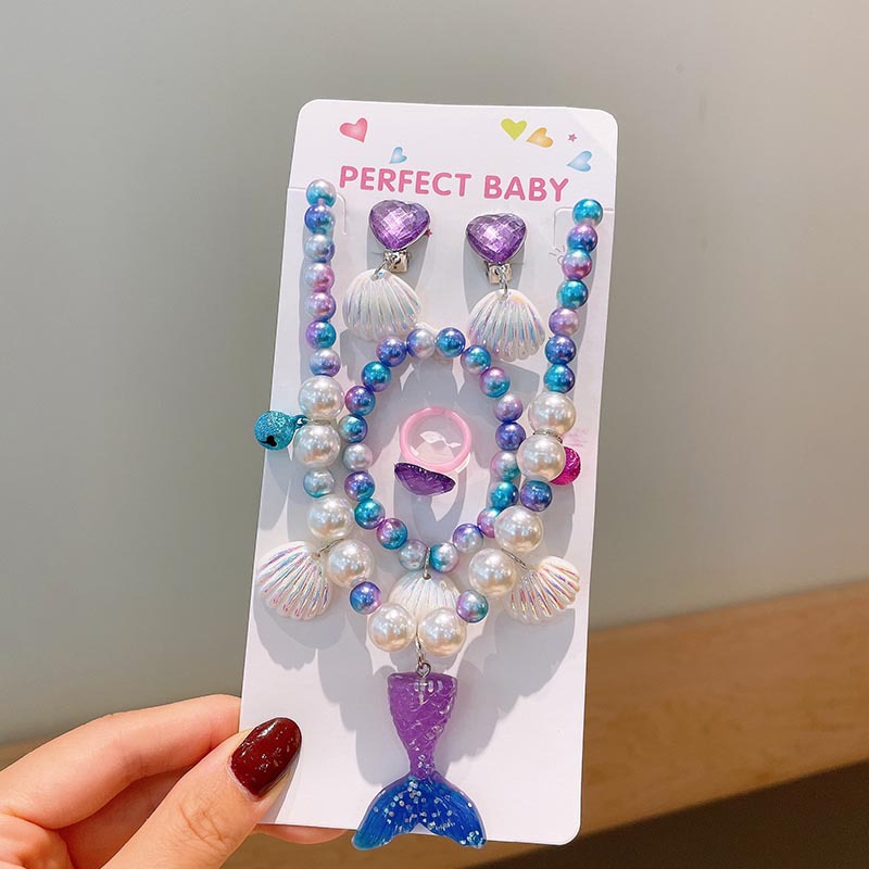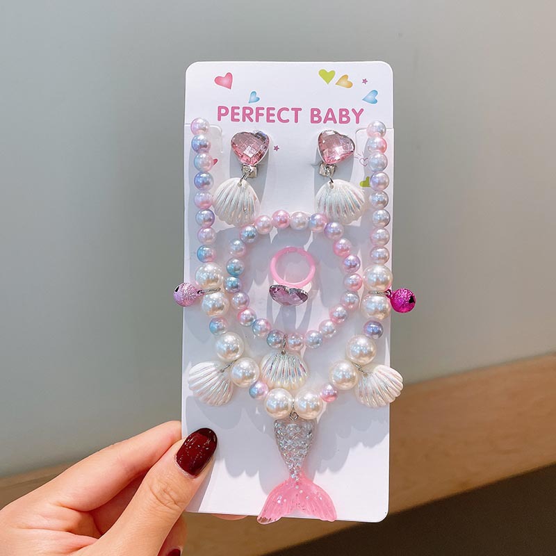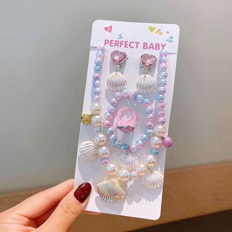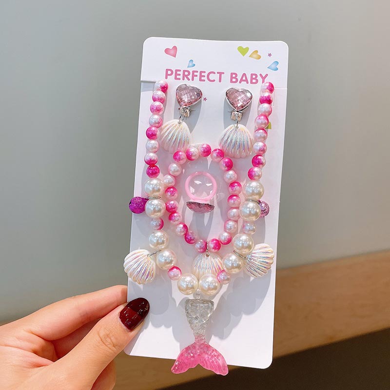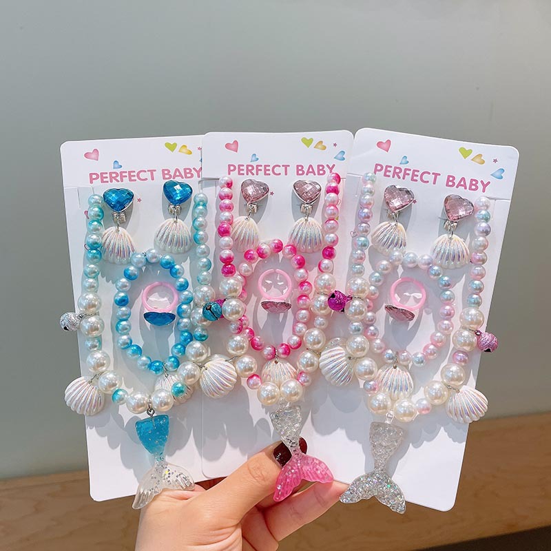 公主美人鱼尾巴儿童项链小女孩贝壳珍珠幻彩手工串珠手链首饰套装