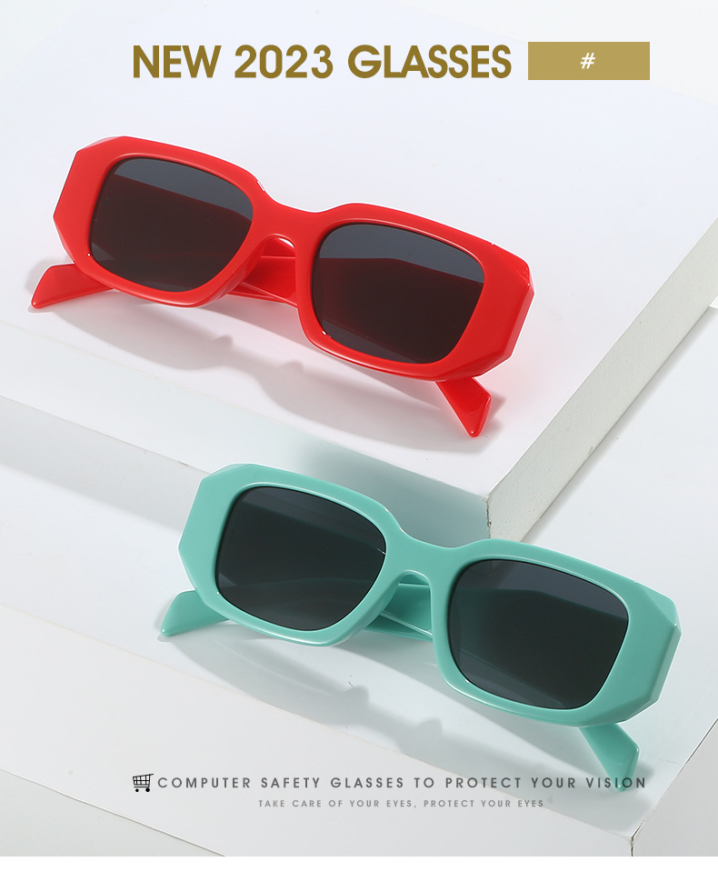 铰链牙时尚方形小框个性棱角切面墨镜女跨境网红嘻哈蹦迪眼镜9128