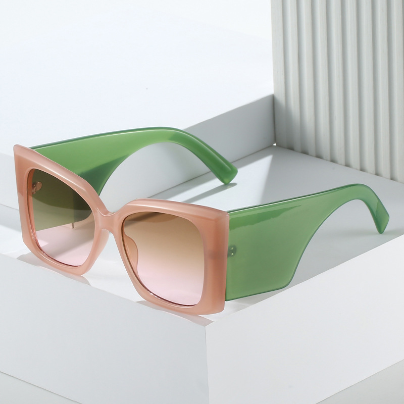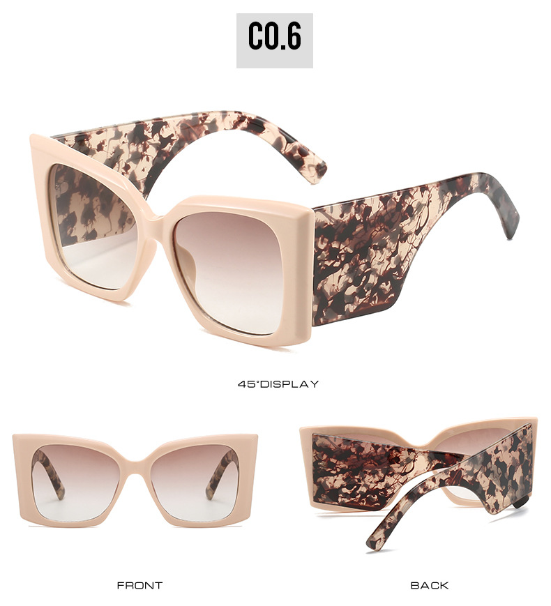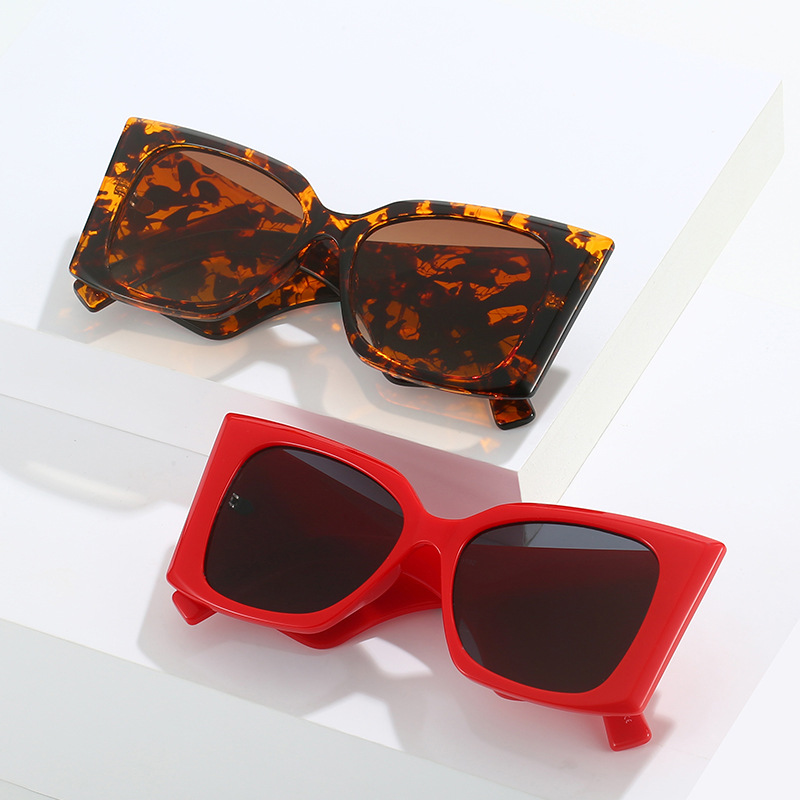 2023跨境新款猫眼太阳镜 欧美时尚YXL同款眼镜个性宽腿大框墨镜女
