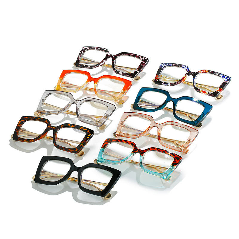 95811 外贸光学镜PC全框架女士镜框个性方形镜框双色镜架防蓝光