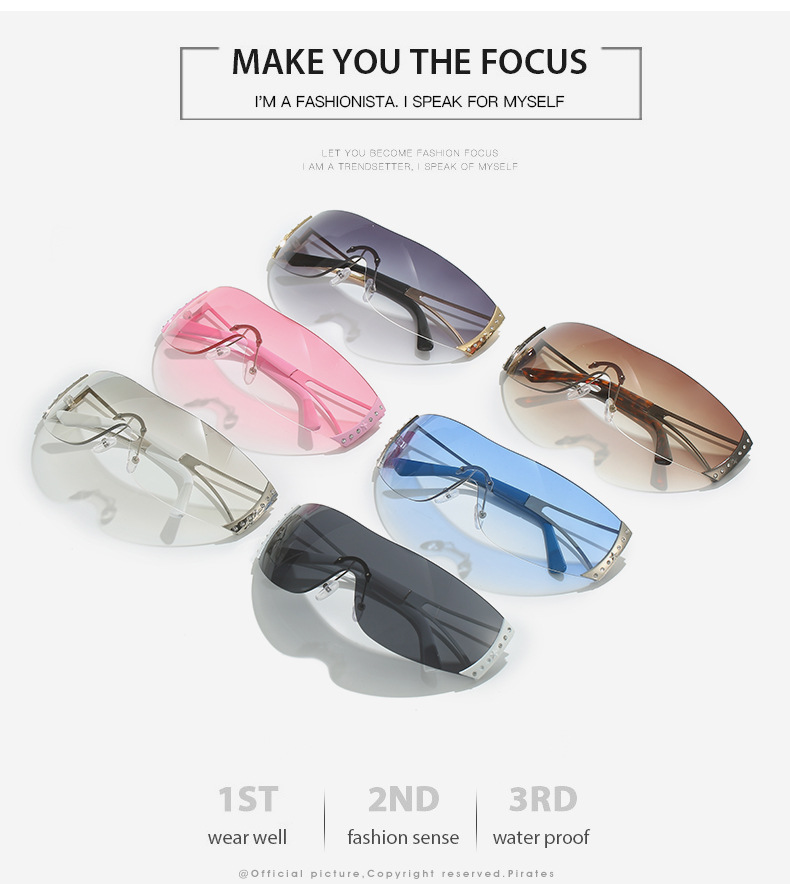 2022欧美无框男女Y2K太阳眼镜跨境热销水钻连体墨镜潮流运动镜