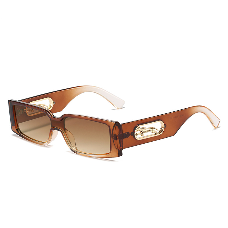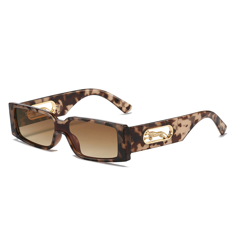 跨境新款欧美时尚小方框糖果色太阳镜华丽摩登猎豹装饰男女士墨镜