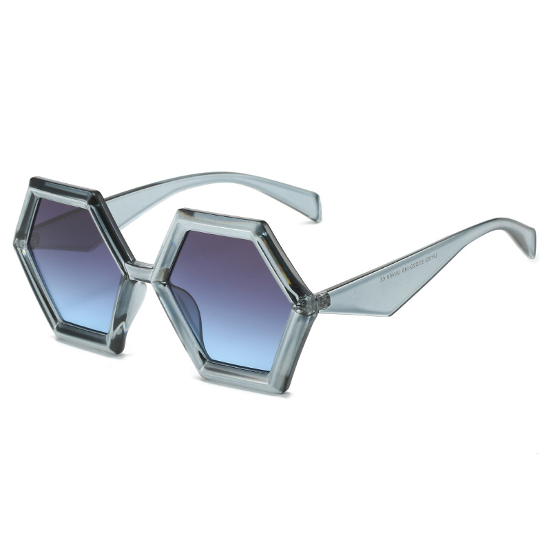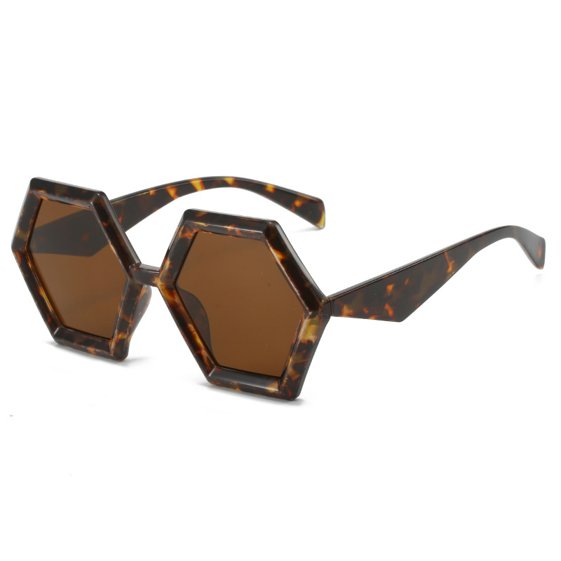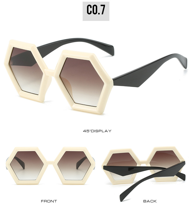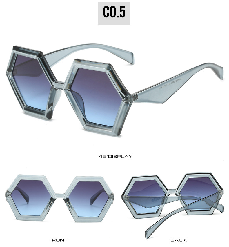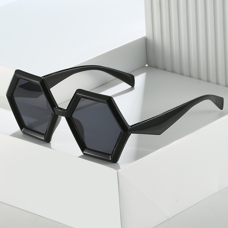 2023跨境新品多边形太阳镜 欧美个性菱角六边形大框时尚墨镜ins女