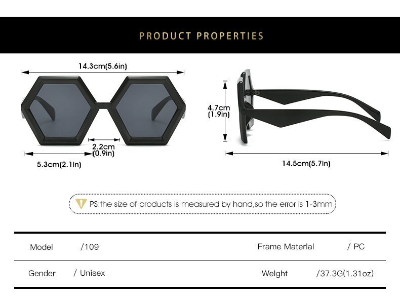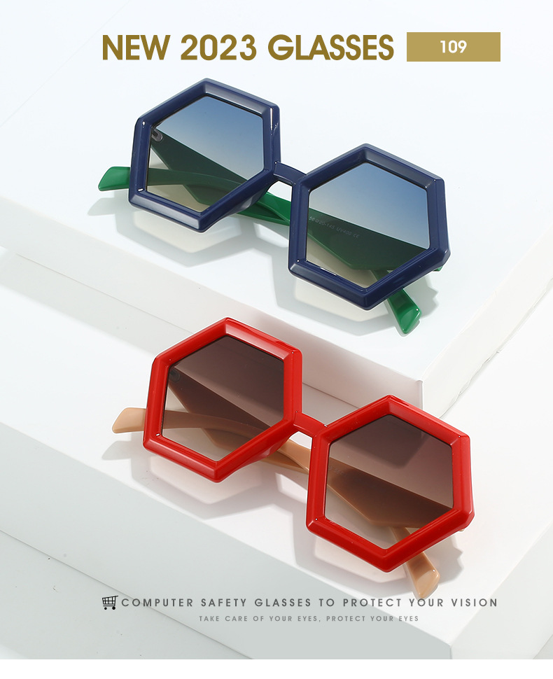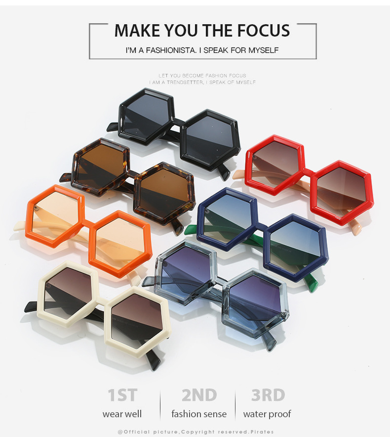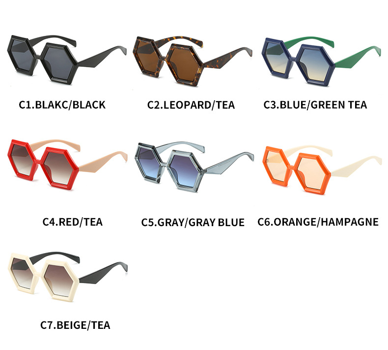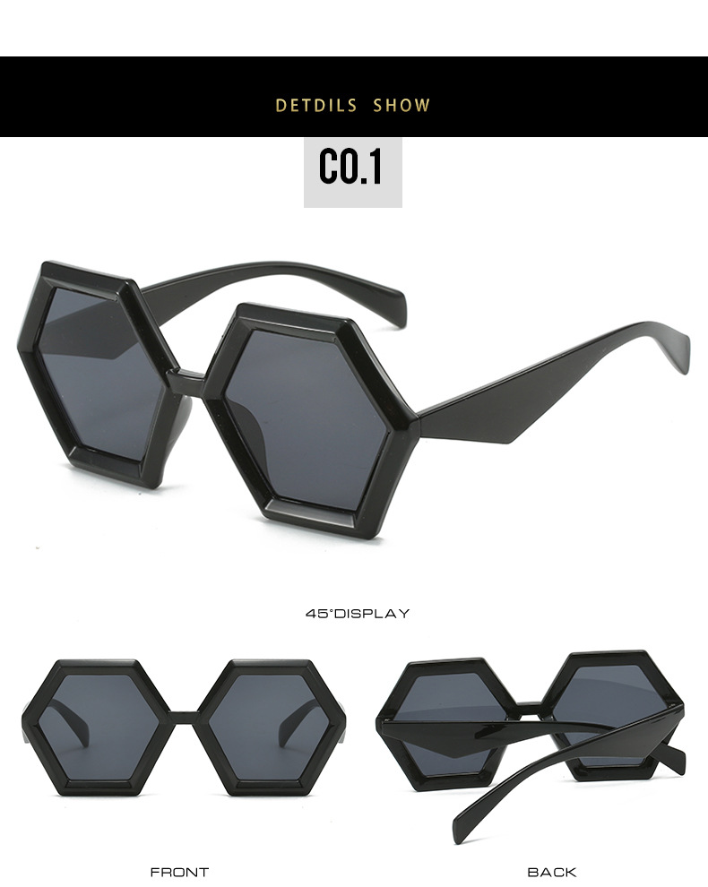 2023跨境新品多边形太阳镜 欧美个性菱角六边形大框时尚墨镜ins女