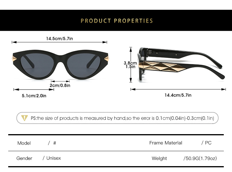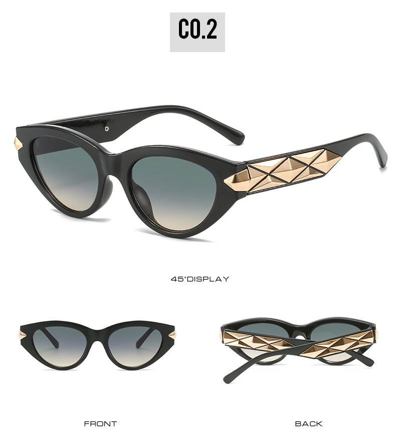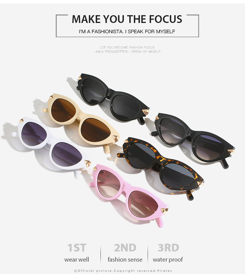 2023外贸跨境爆款朋克太阳镜女 欧美街拍摩登复古猫眼形墨镜