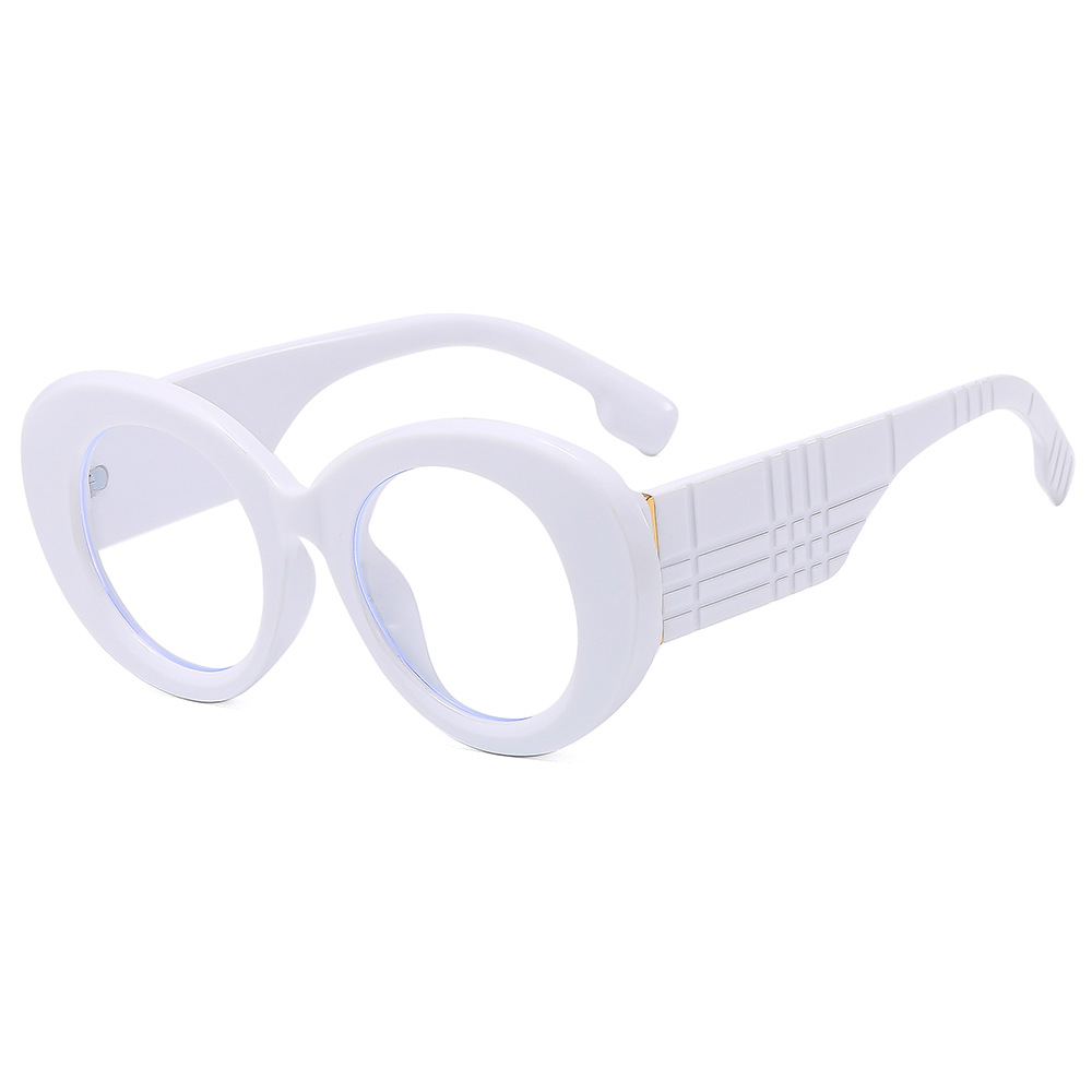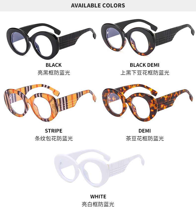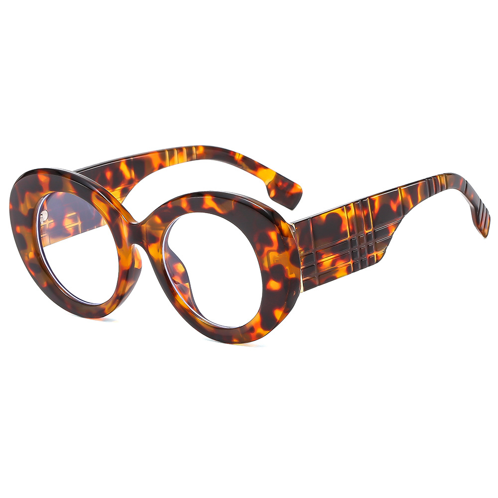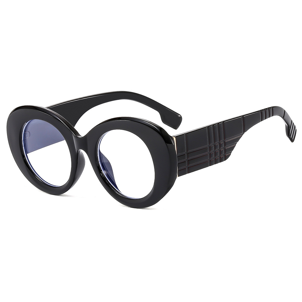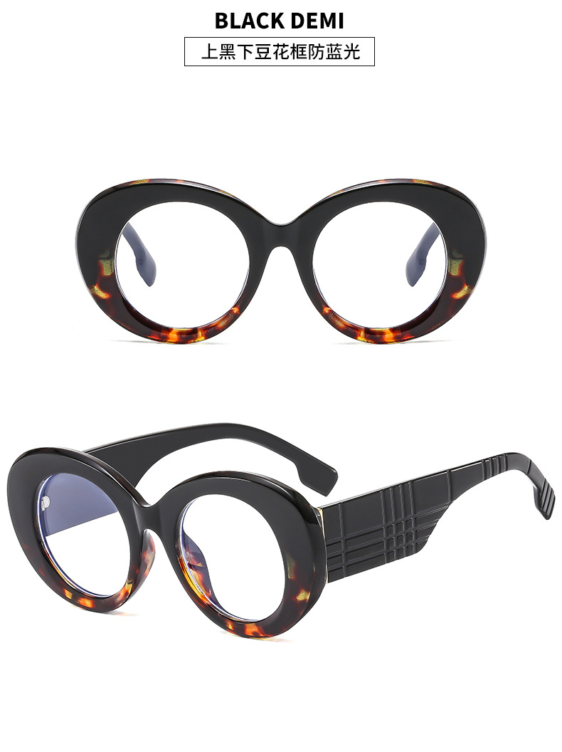 2023跨境新款圆形眼镜框复古大框圆形粗腿方块纹路简约时尚平光镜